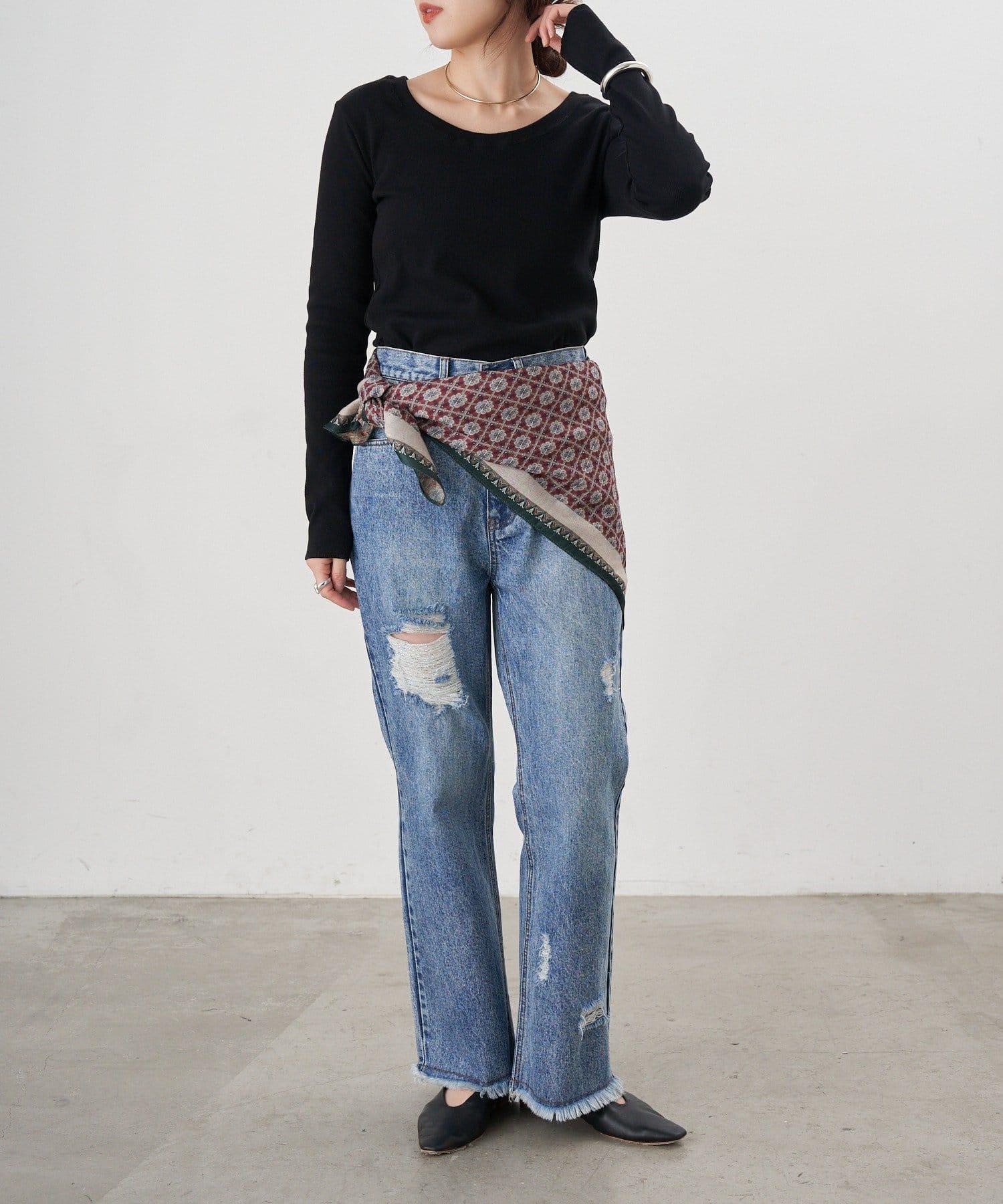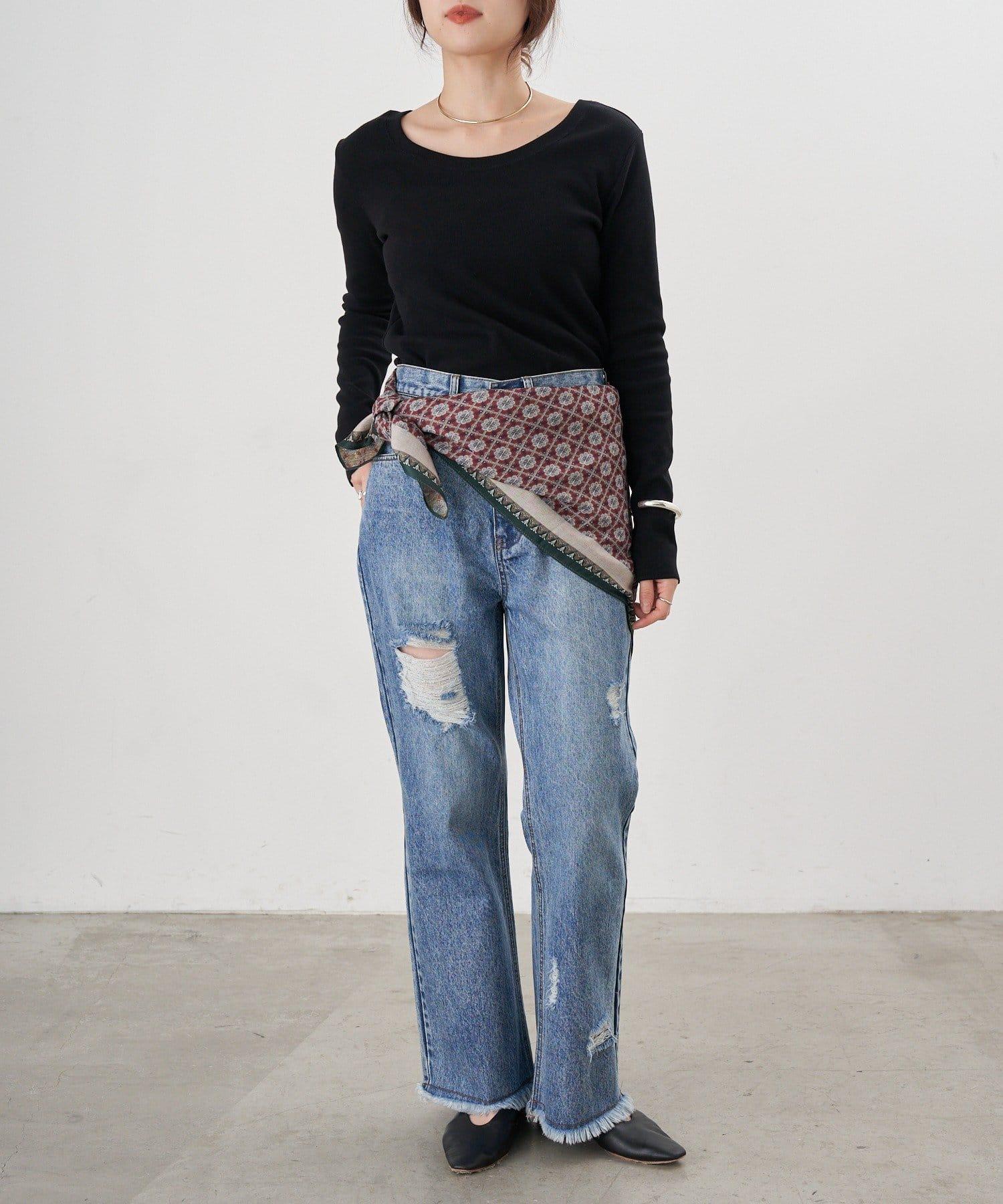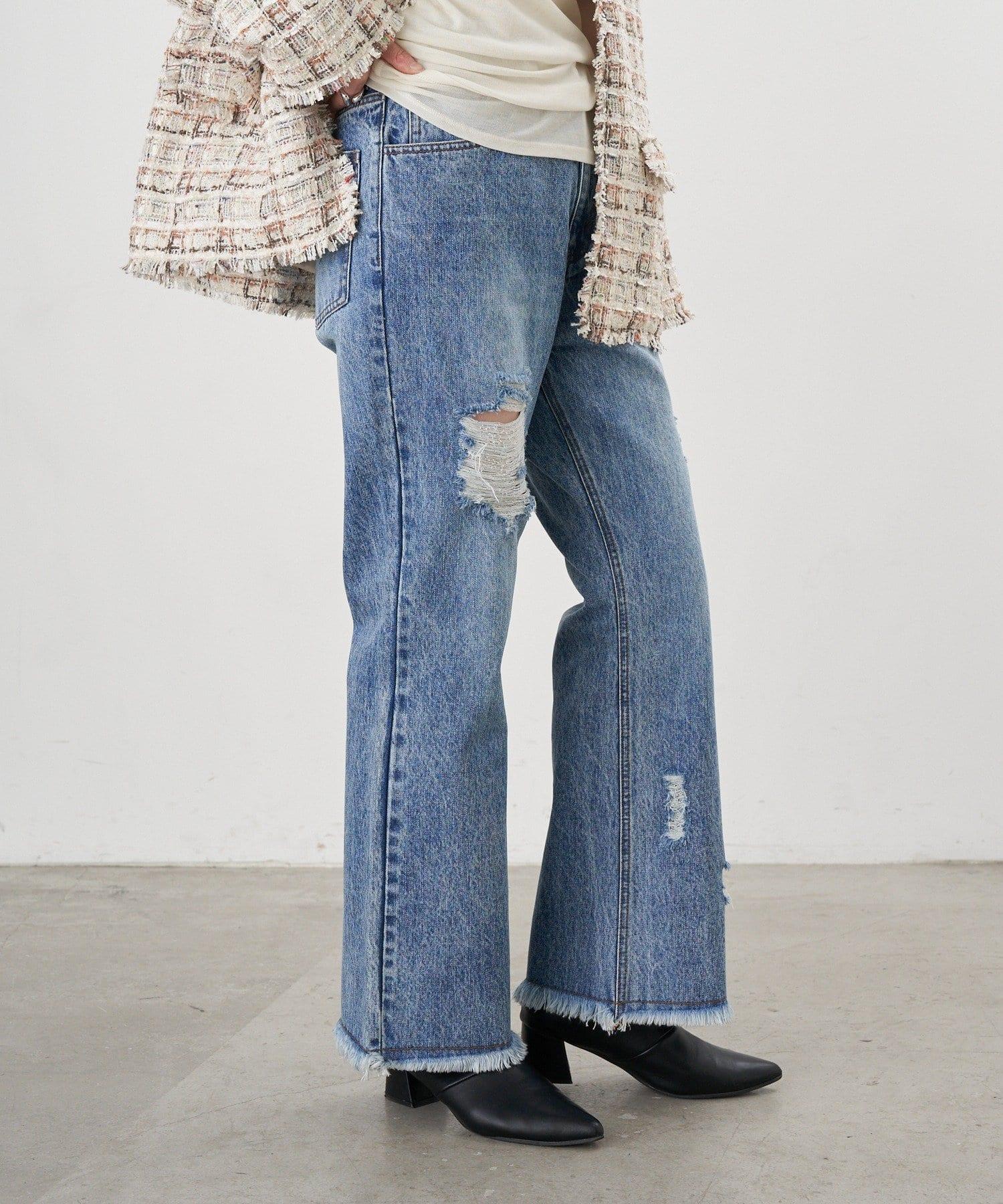 破損程度恰到好處的時尚牛仔長褲。