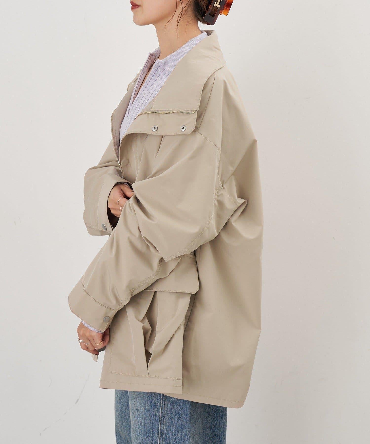 這款外衣的面料和寬鬆的尺碼使其具有軍裝的外觀和質感。