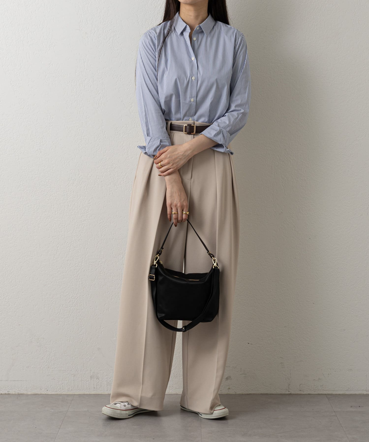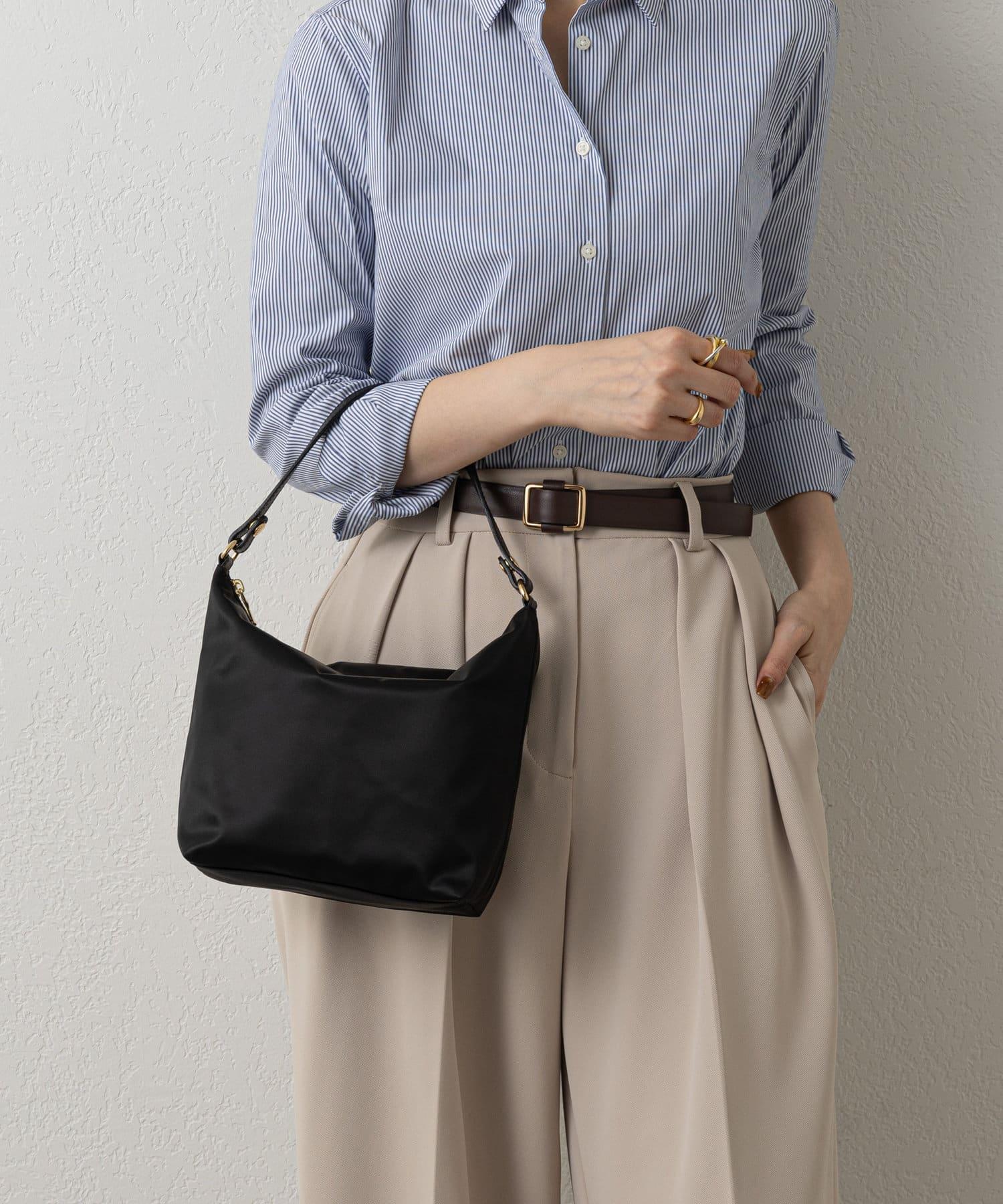 短皮質腰帶也可掛在肩上,打造出與肩揹包相得益彰的簡潔輪廓。