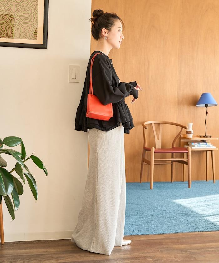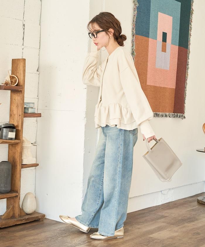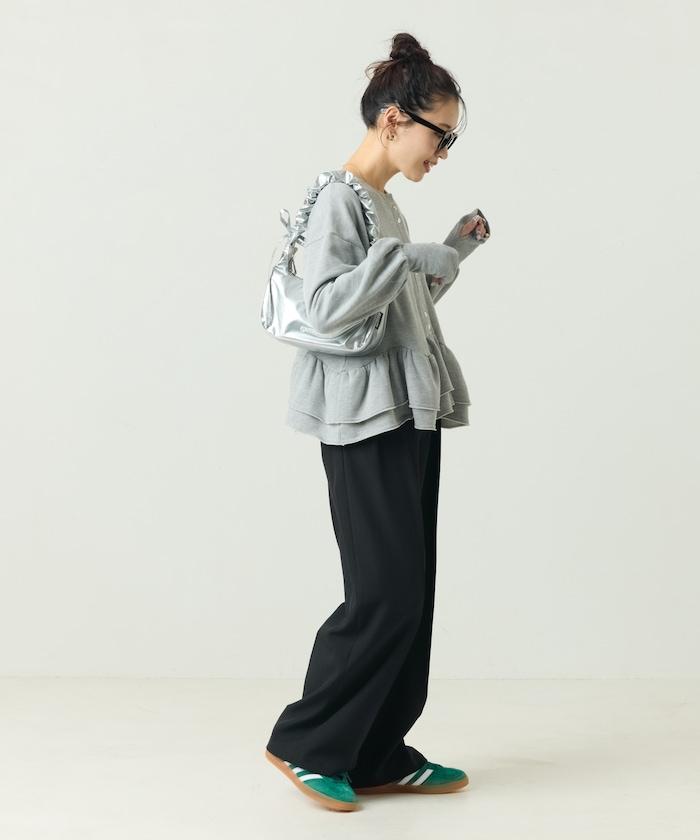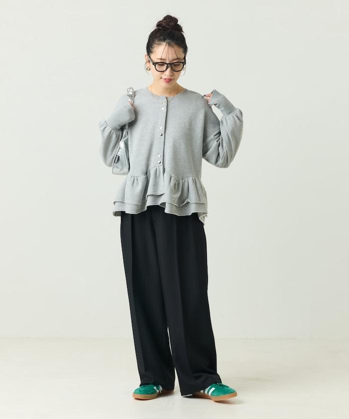 下垂的肩部和蓬鬆的袖子營造出輕鬆的感覺。