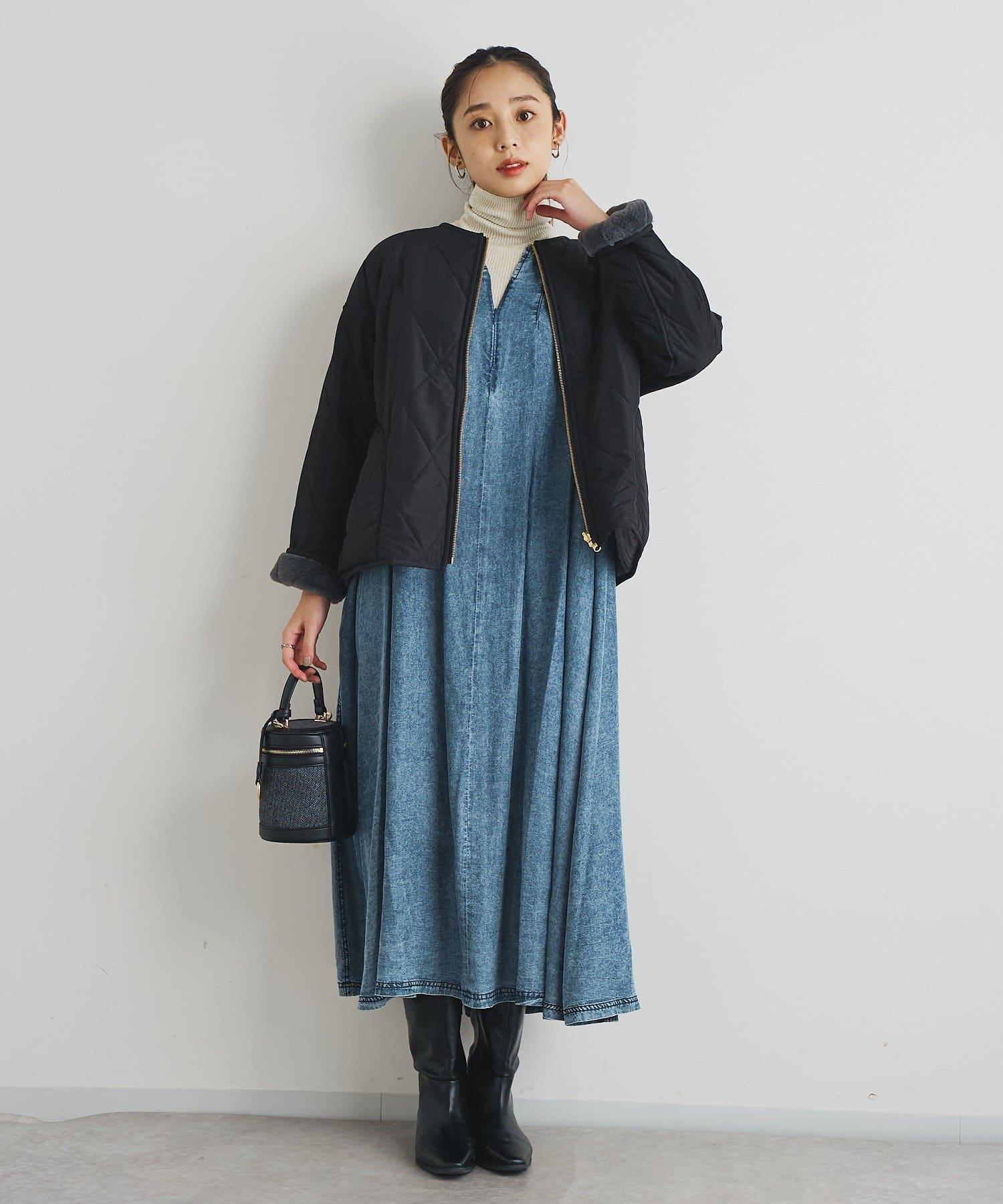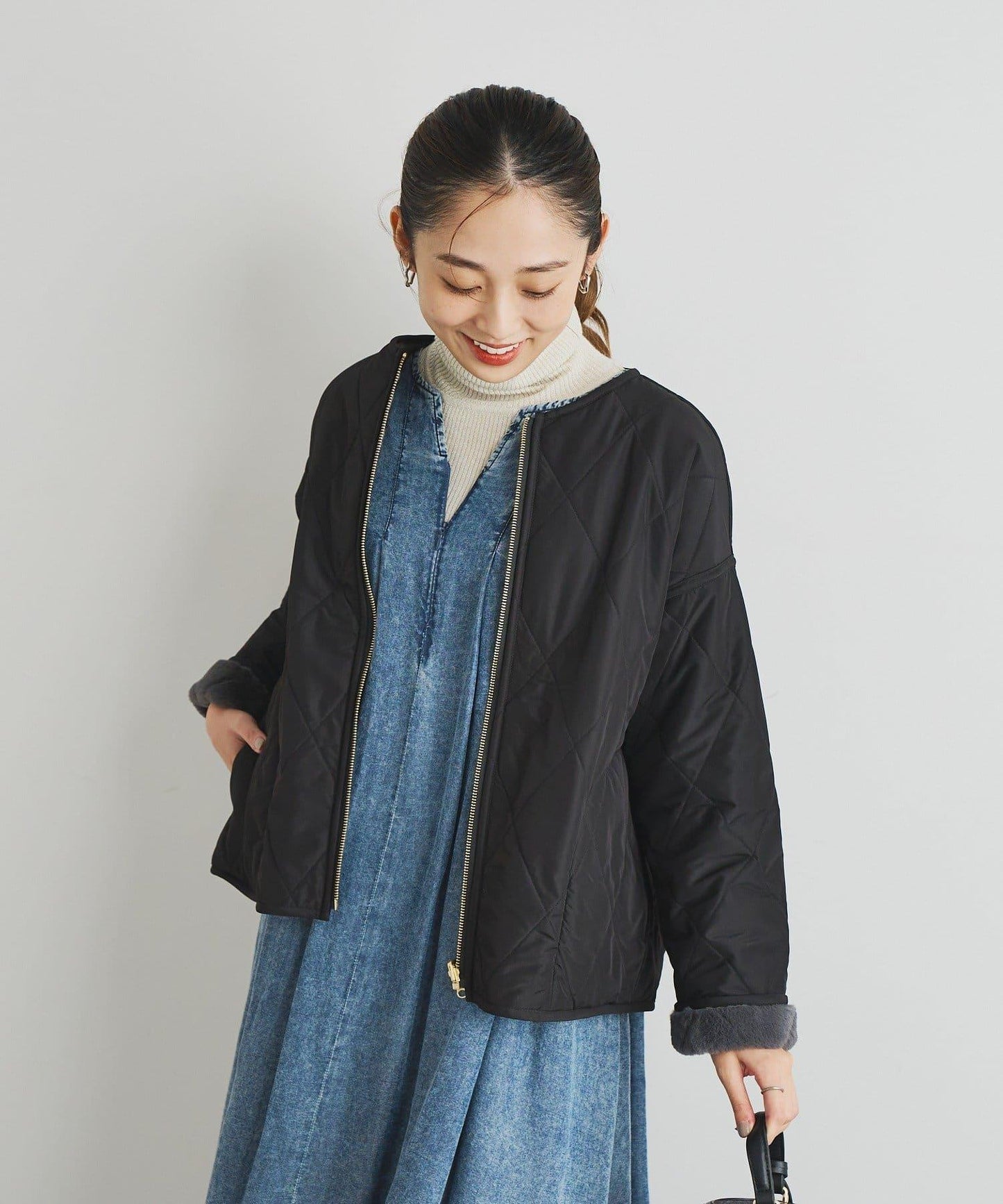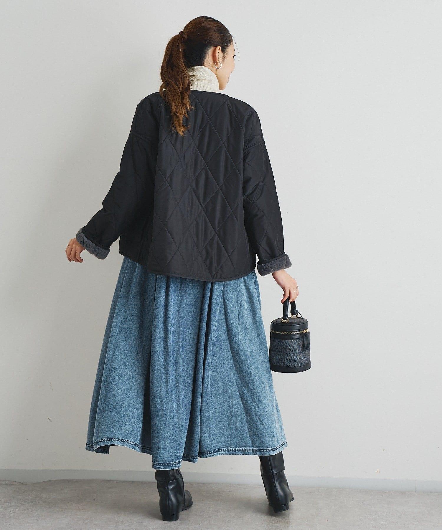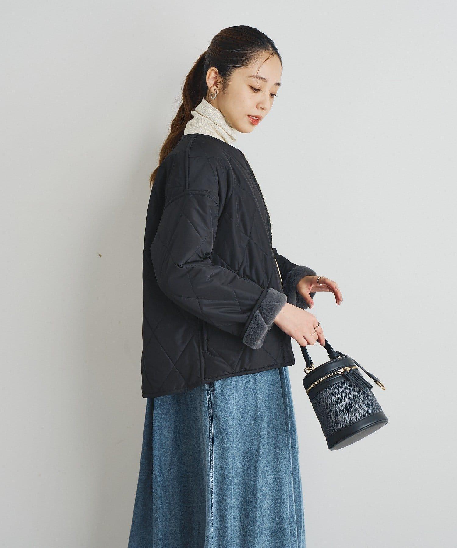 無領設計可整齊地露出頸部,與高領毛衣和圍巾搭配也非常出色。