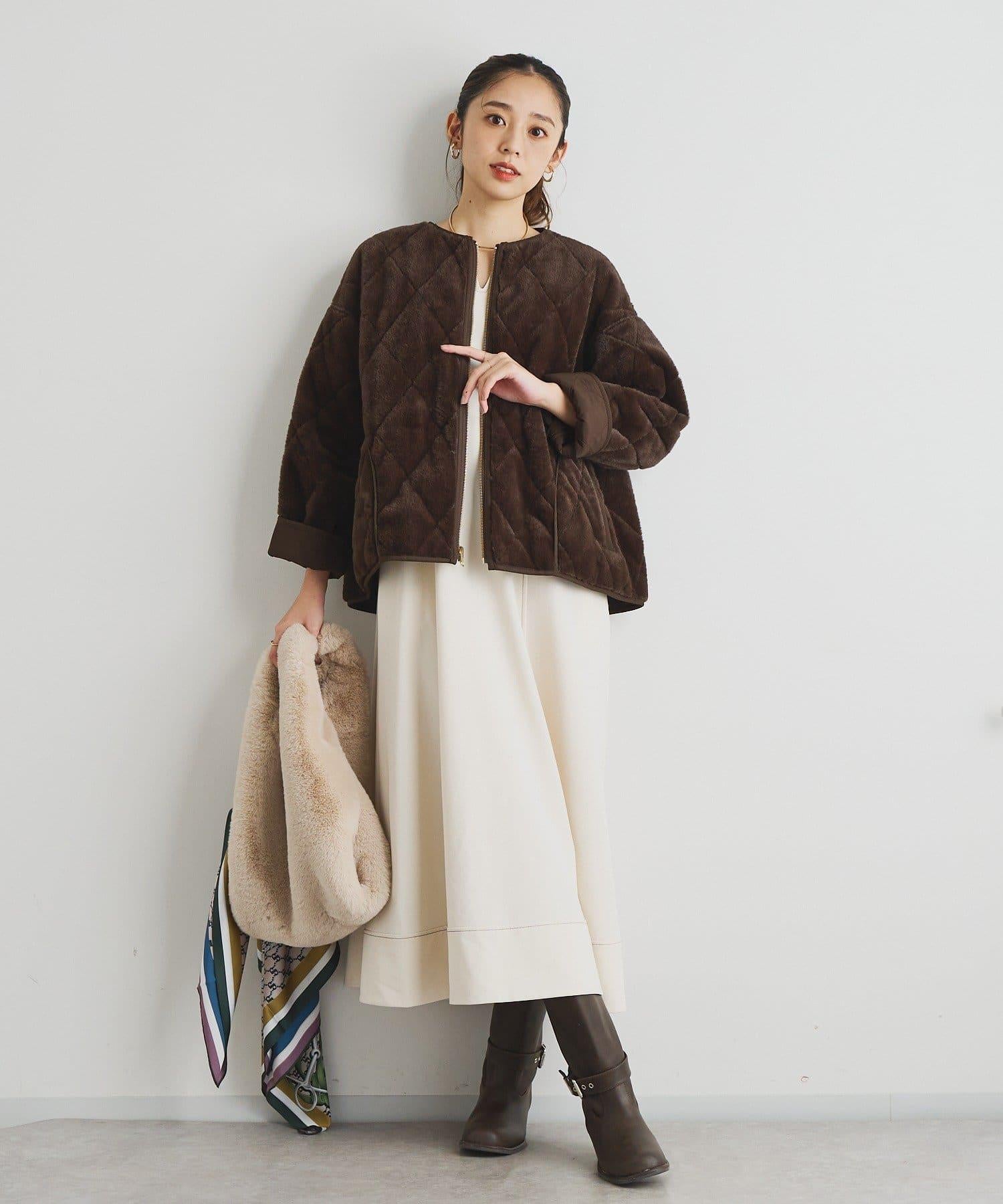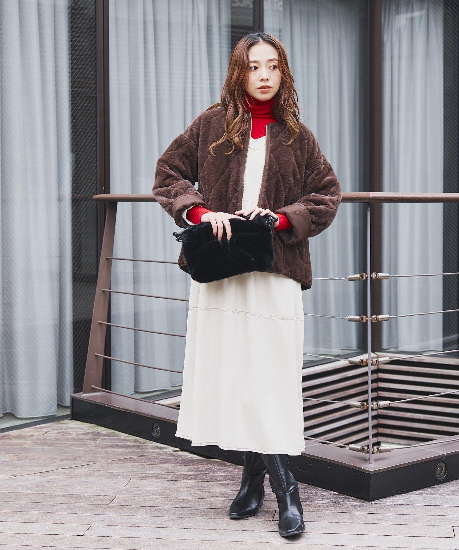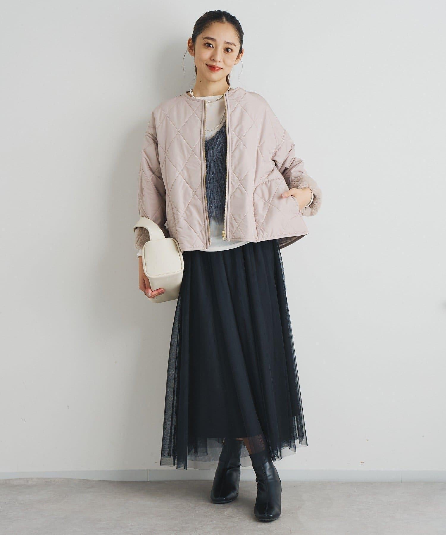 無領設計可整齊地露出頸部,與高領毛衣和圍巾搭配也非常出色。