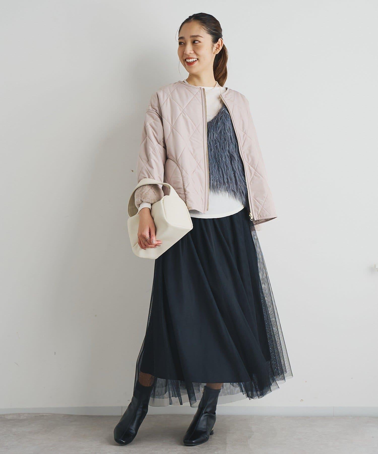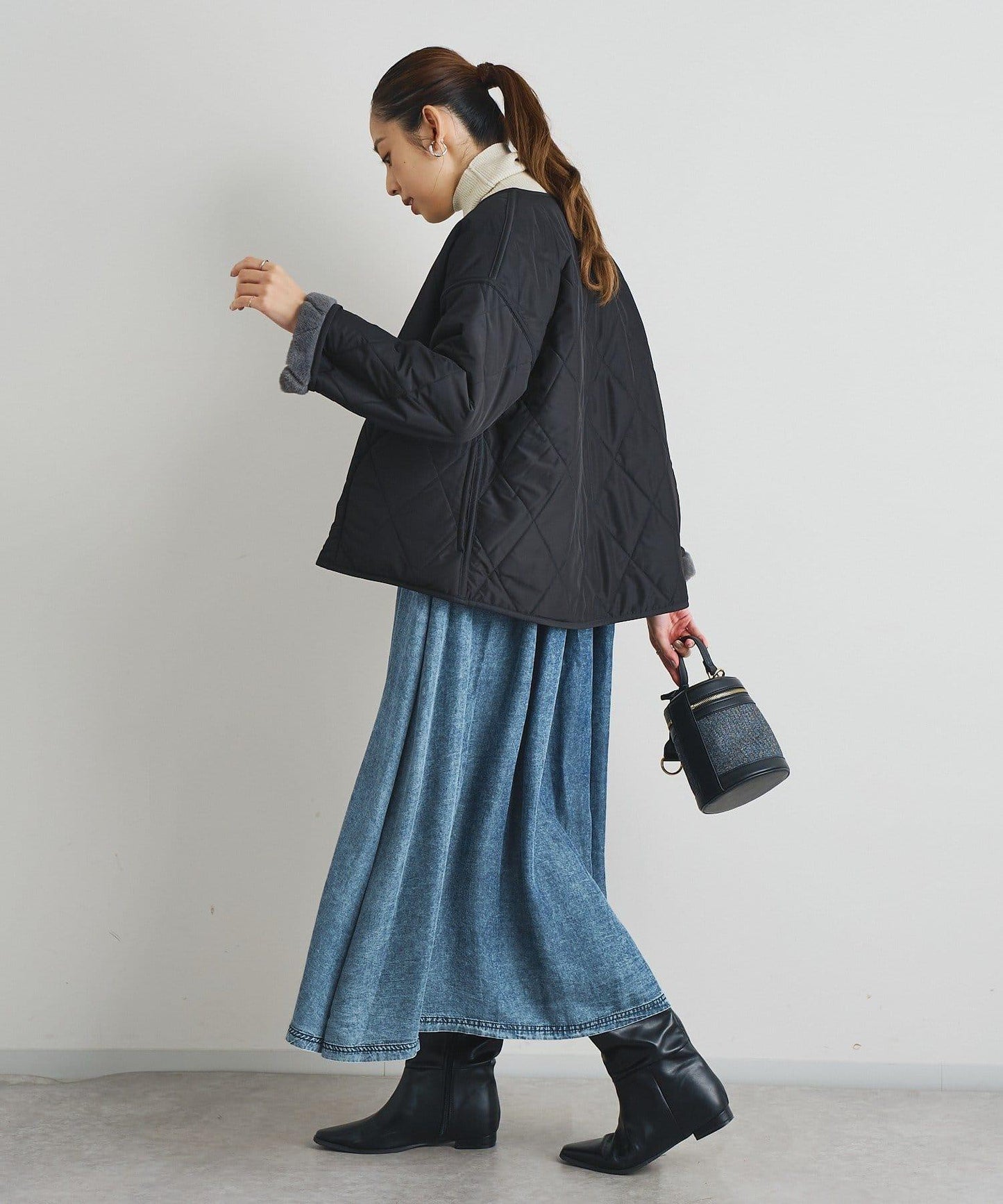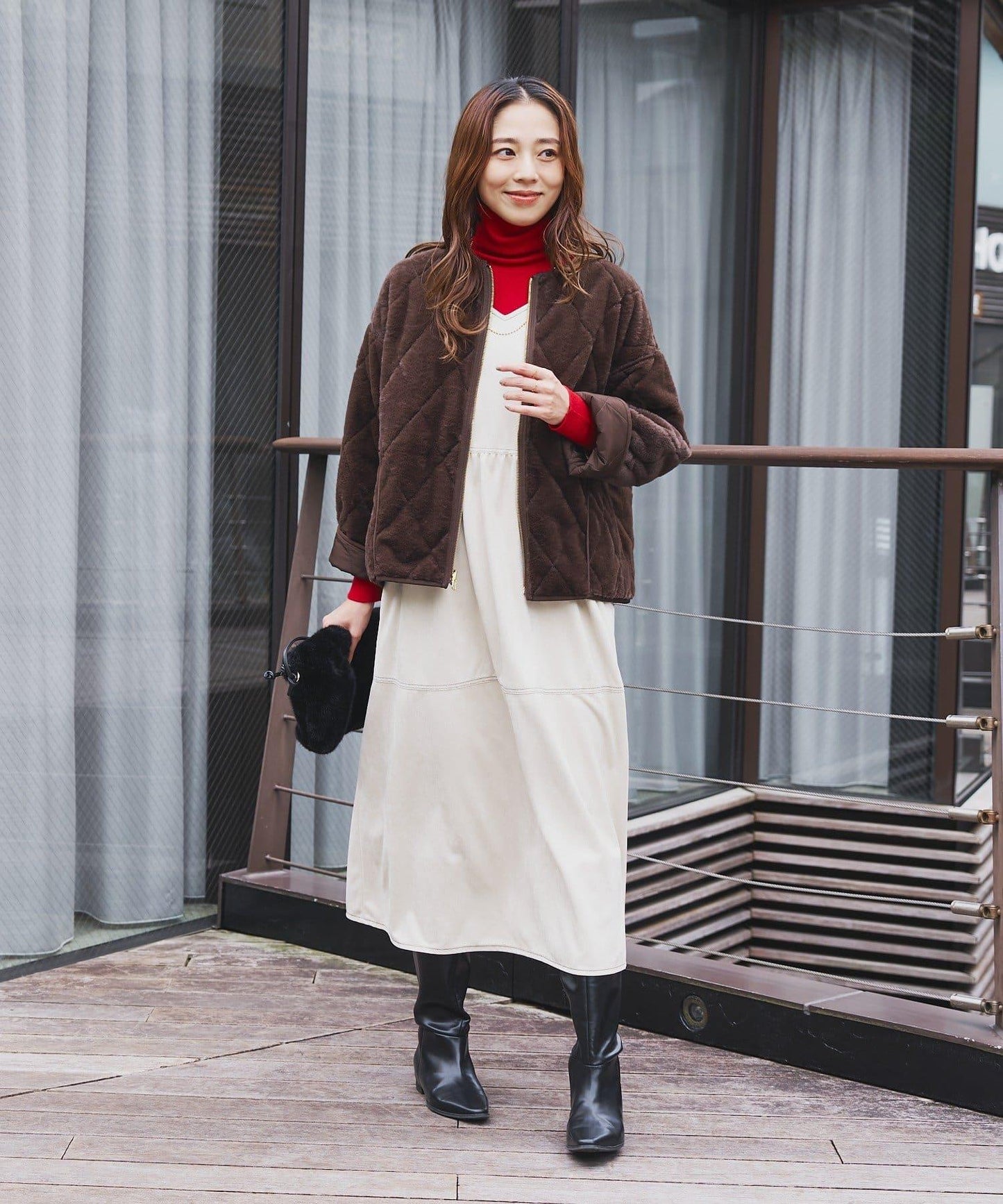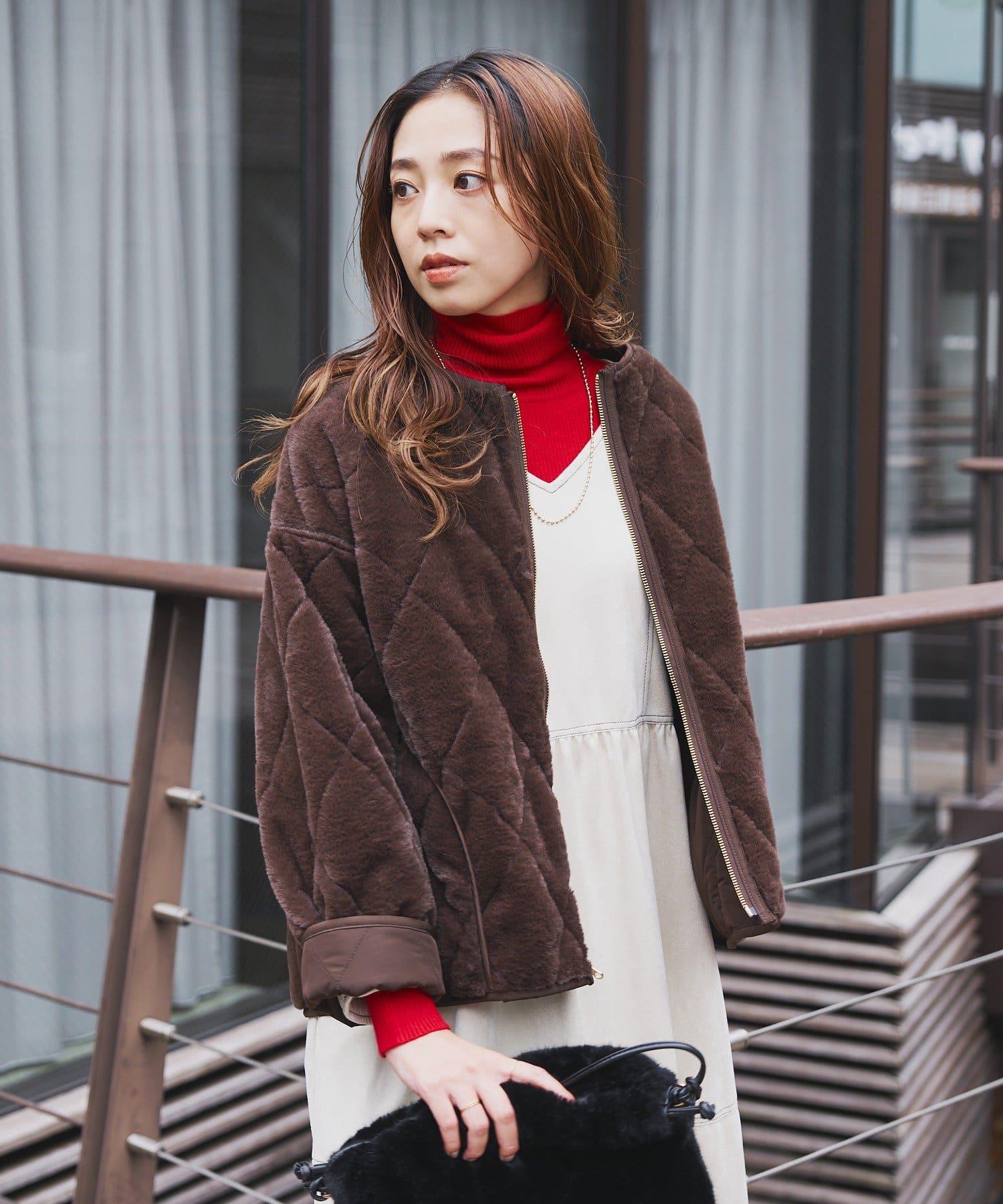無領設計可整齊地露出頸部,與高領毛衣和圍巾搭配也非常出色。