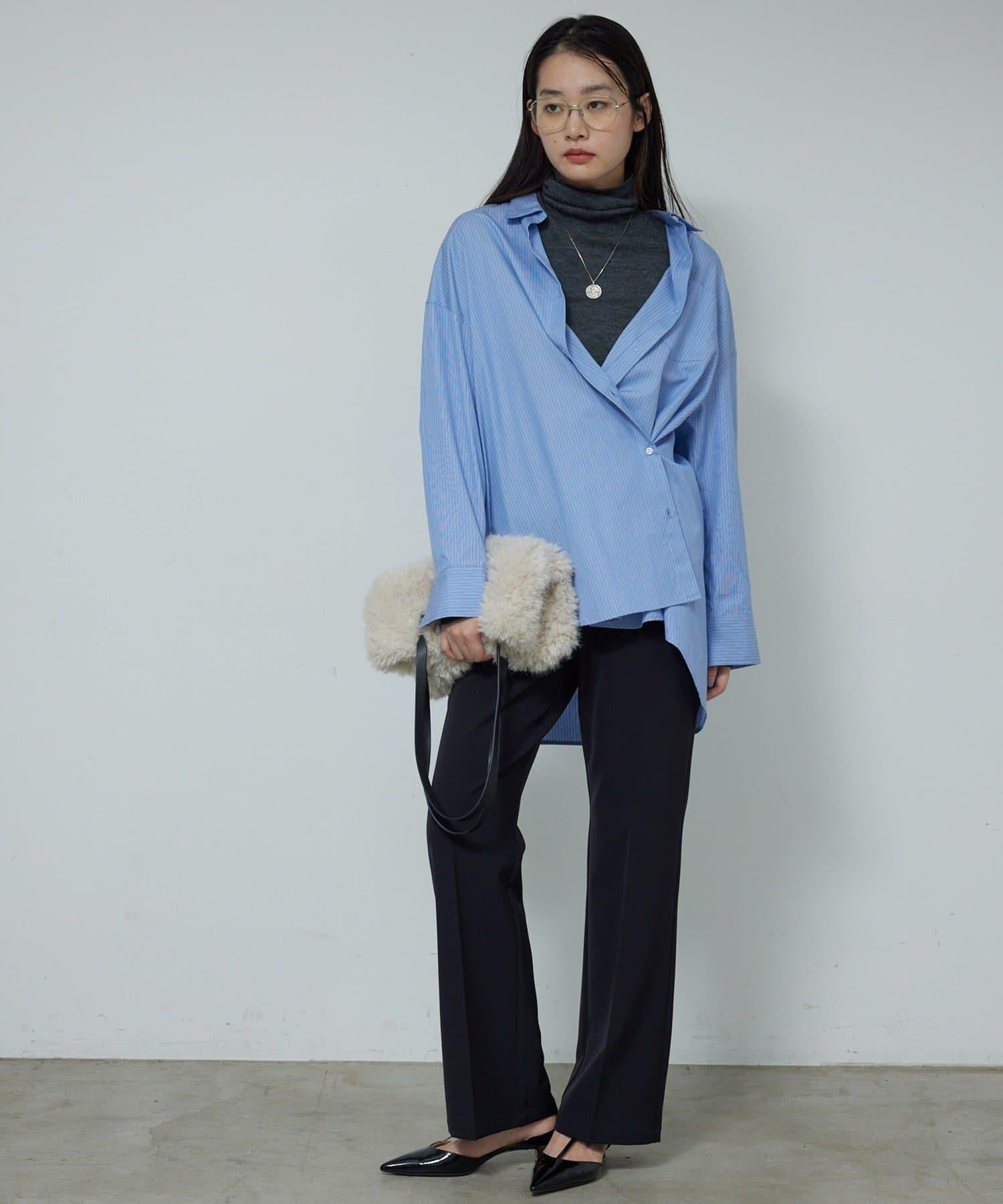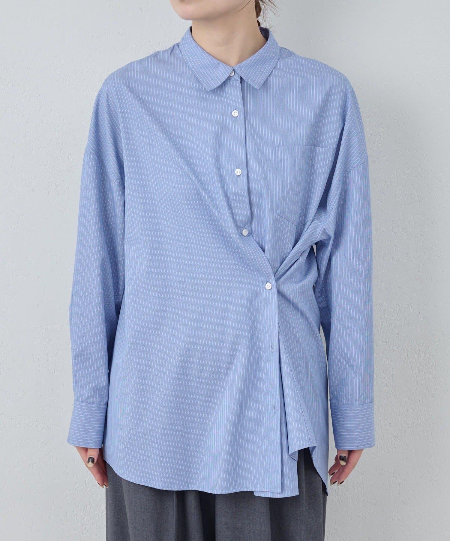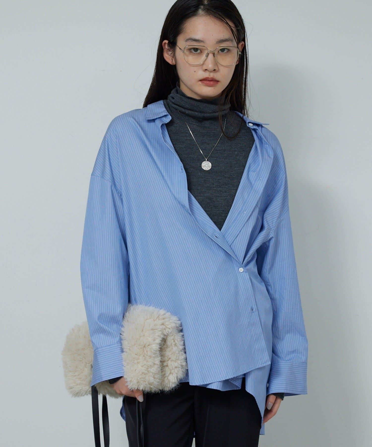 這是一款多功能襯衫,可通過側面的紐扣進行擺放。