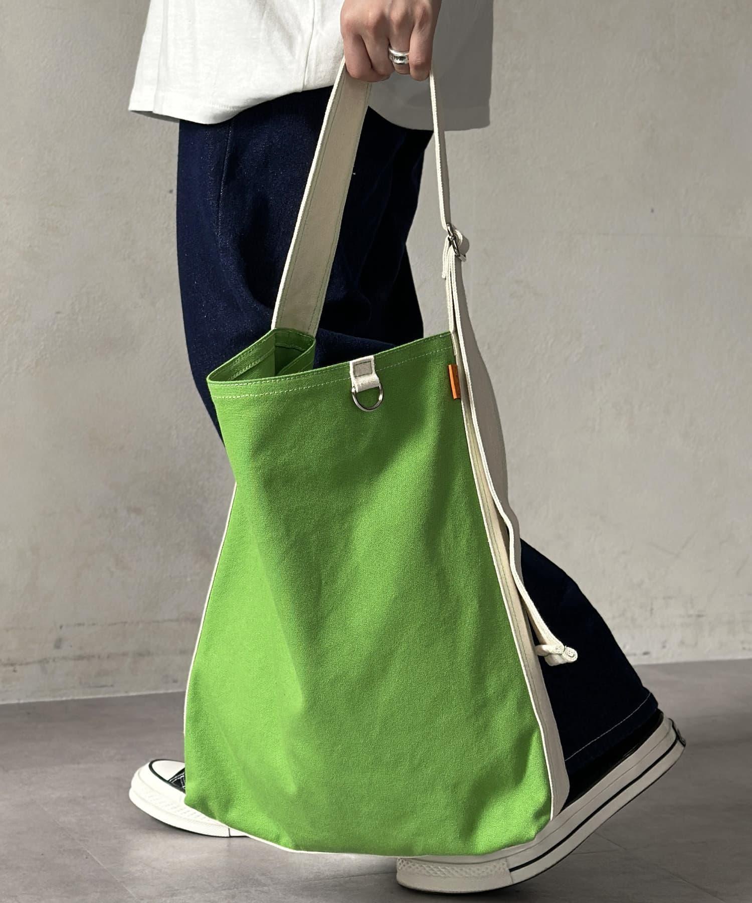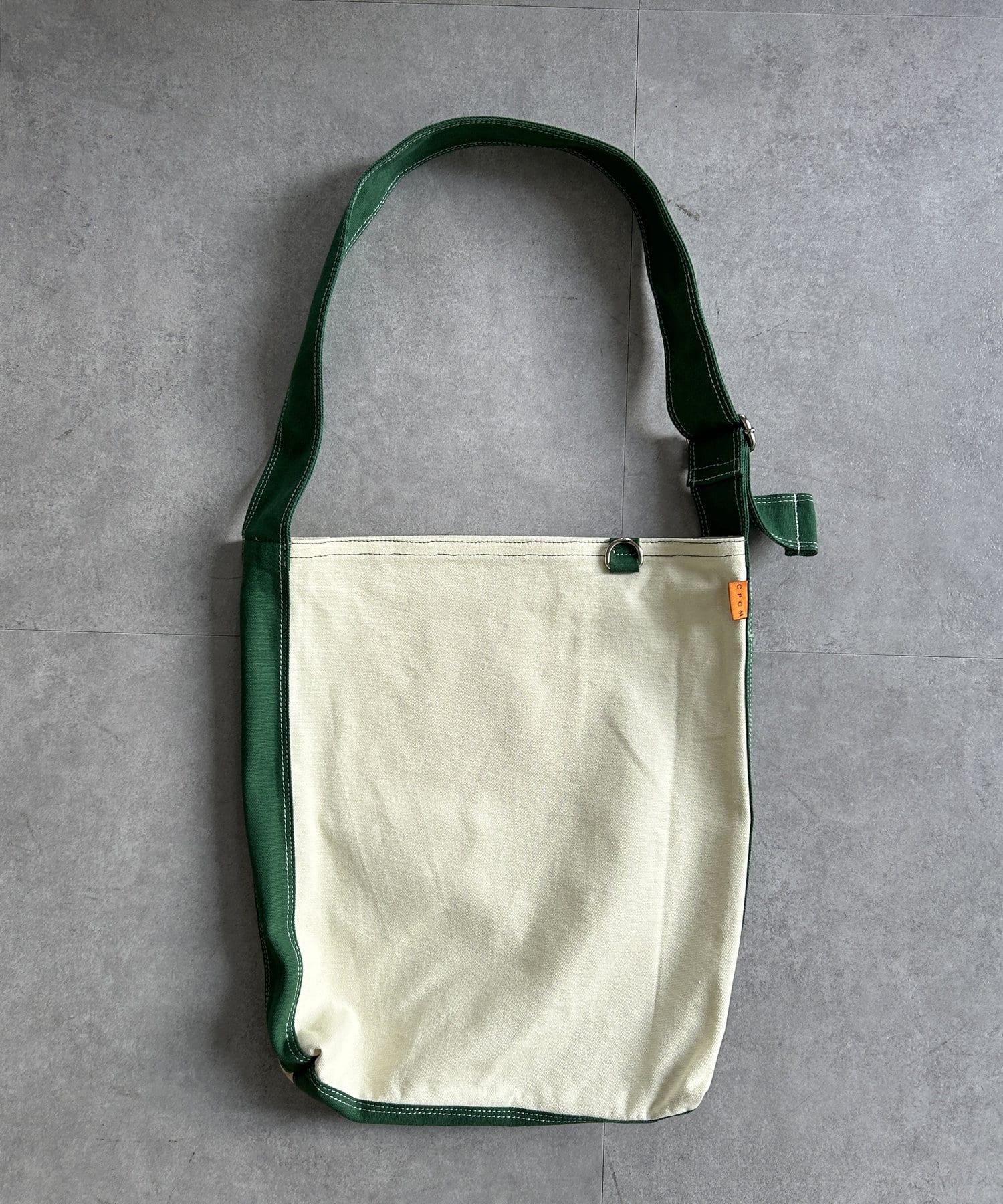 這款帆布水桶形手提包可輕鬆背在肩上!