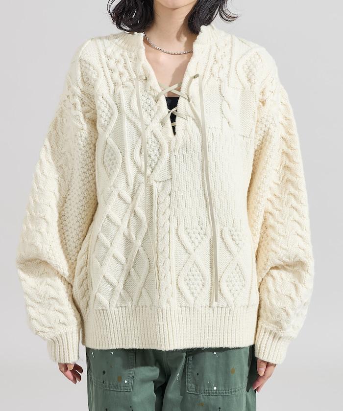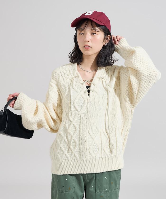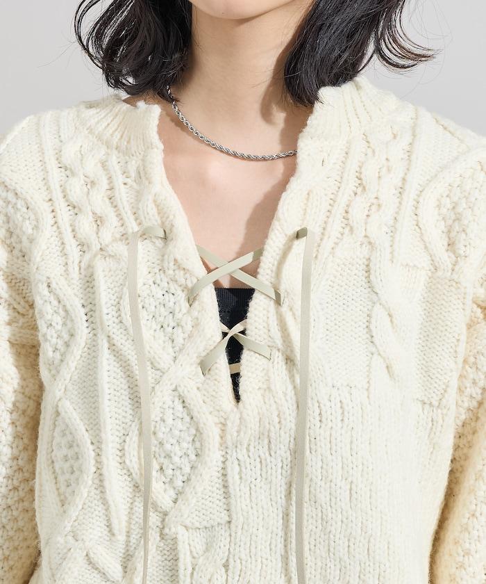 這款引人注目的單品採用了將針織線繩改造成繫帶的設計。