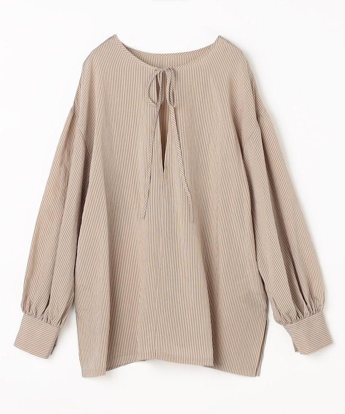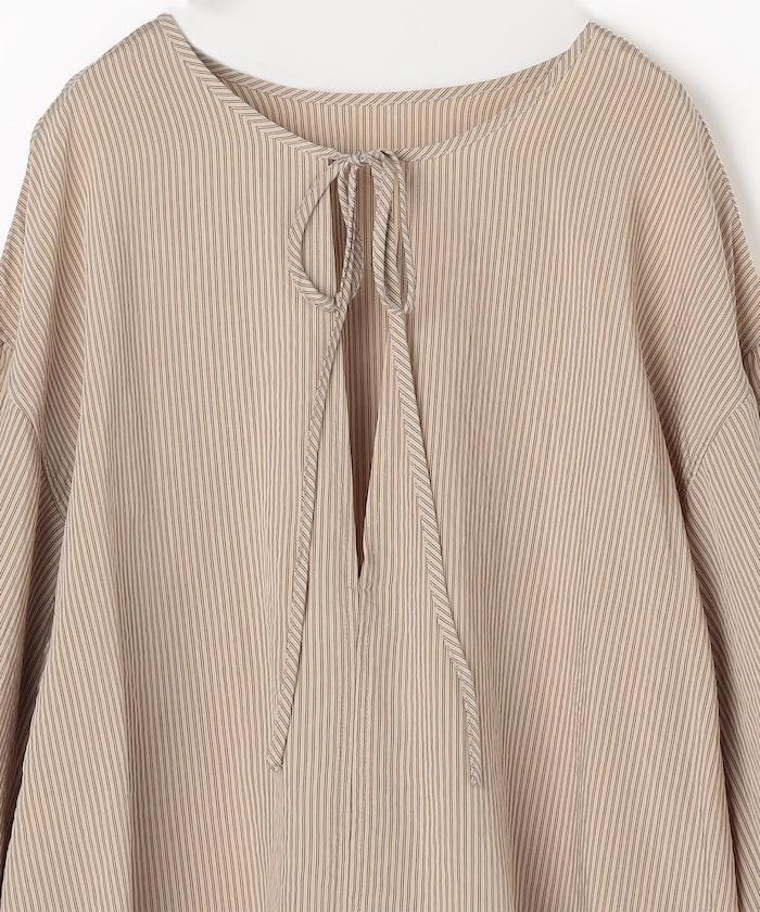 這是一款優雅的上衣,條紋圖案細膩而不張揚,面料光滑。