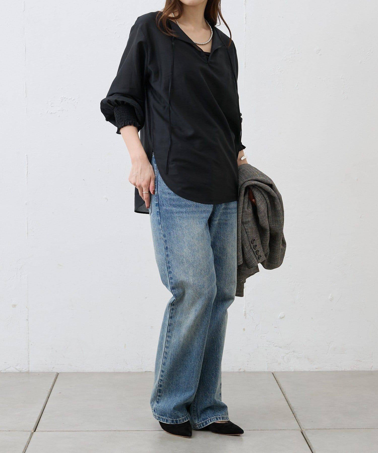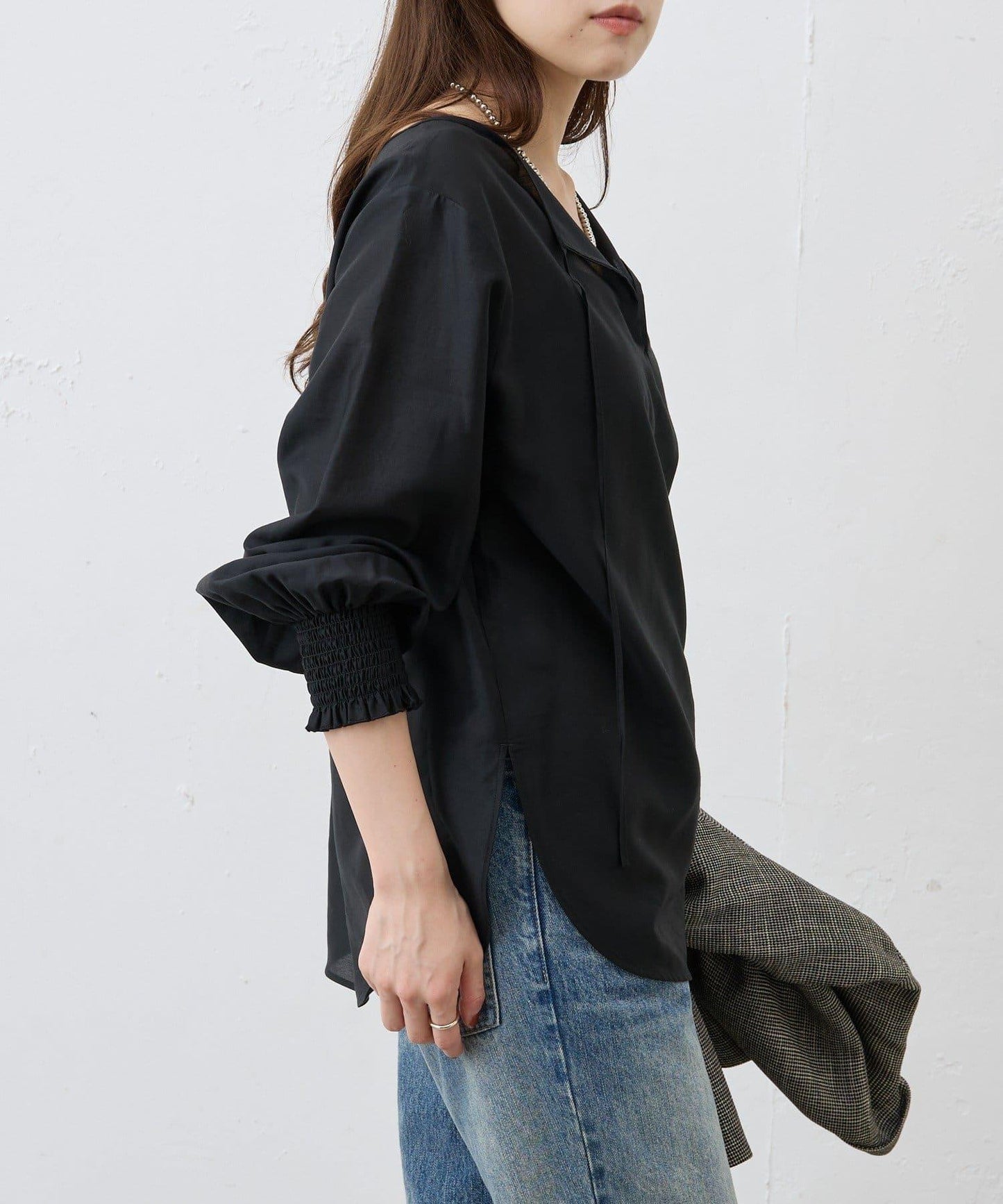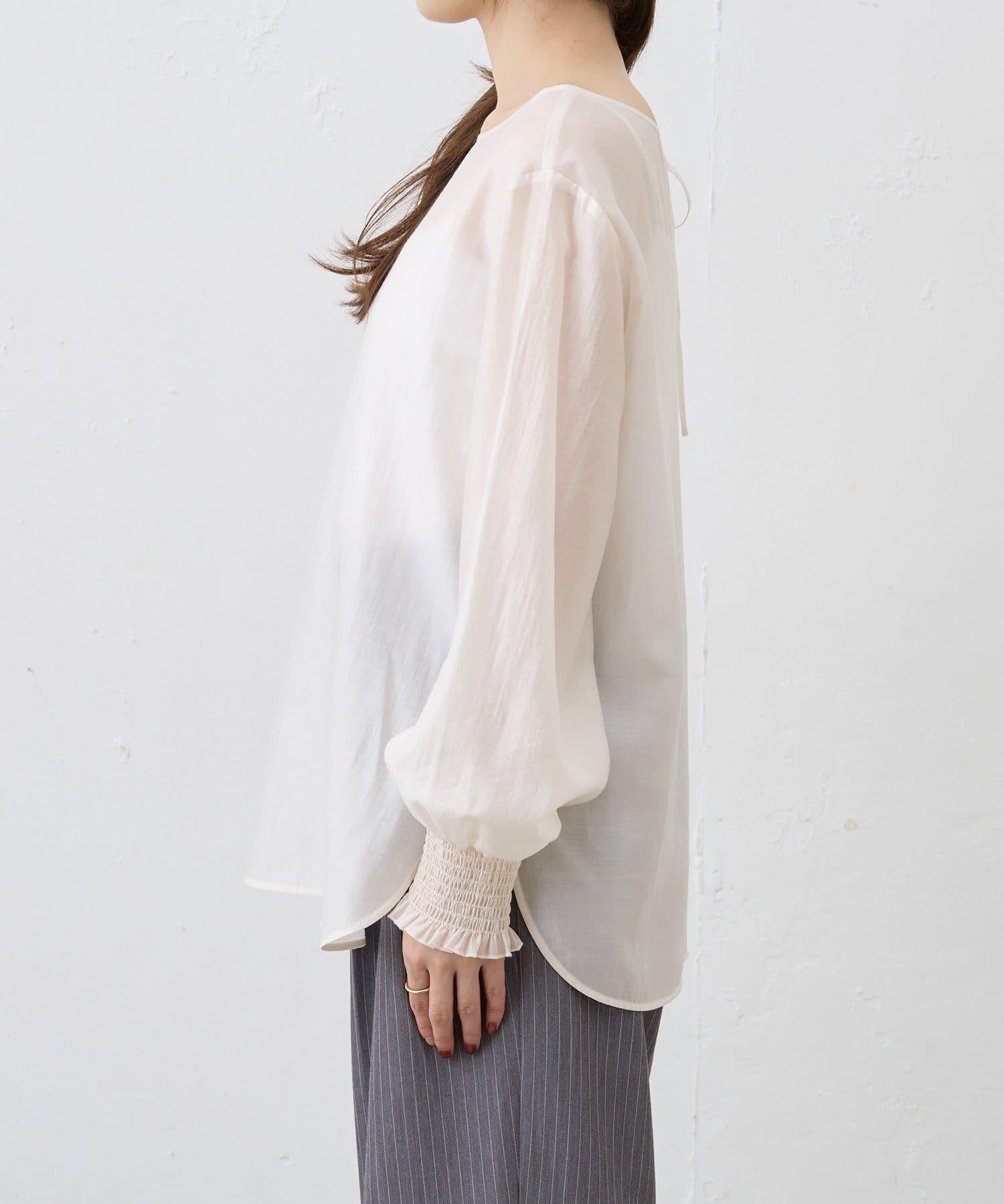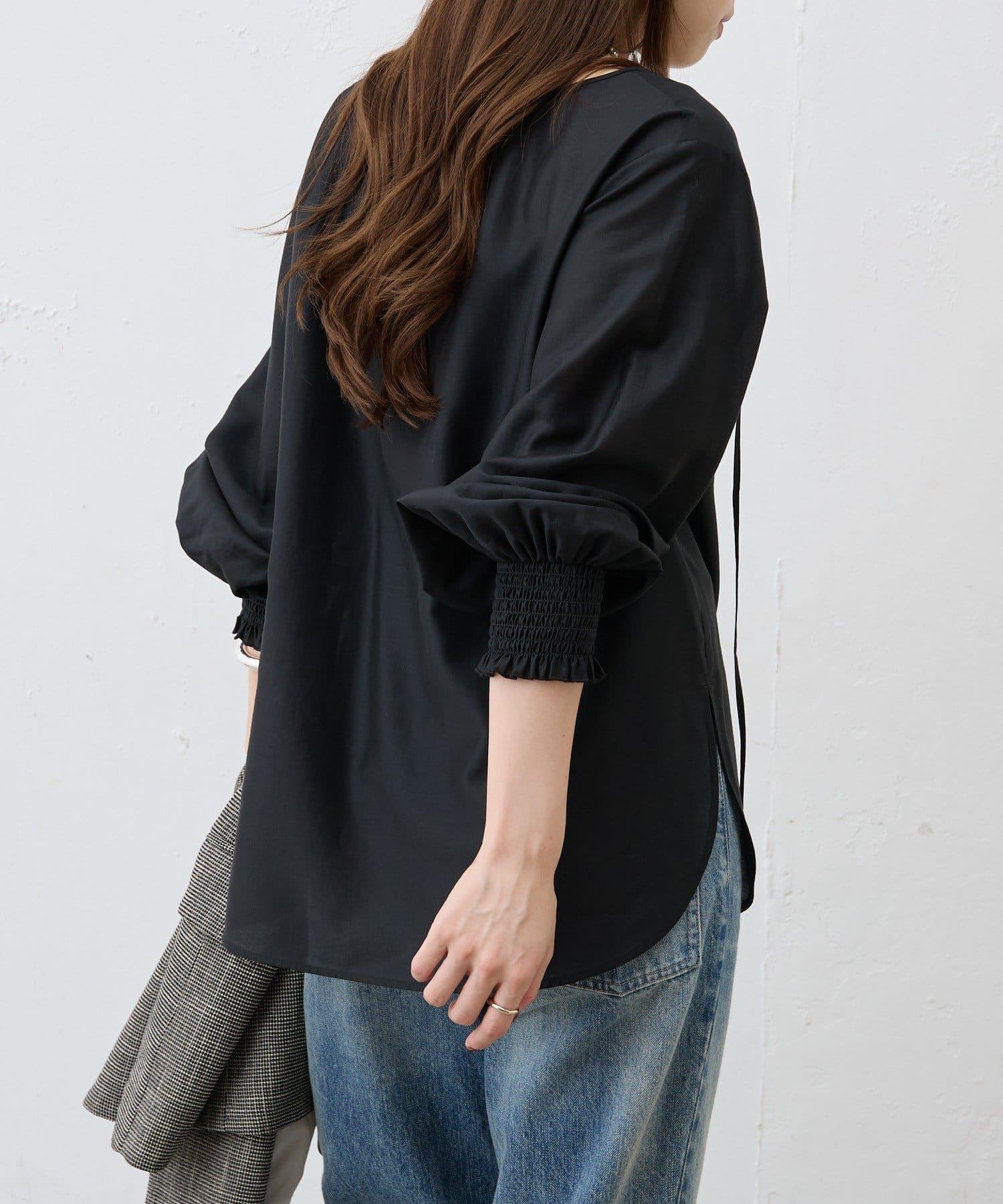 V 領的頂部有緞帶裝飾,看起來更寬鬆。