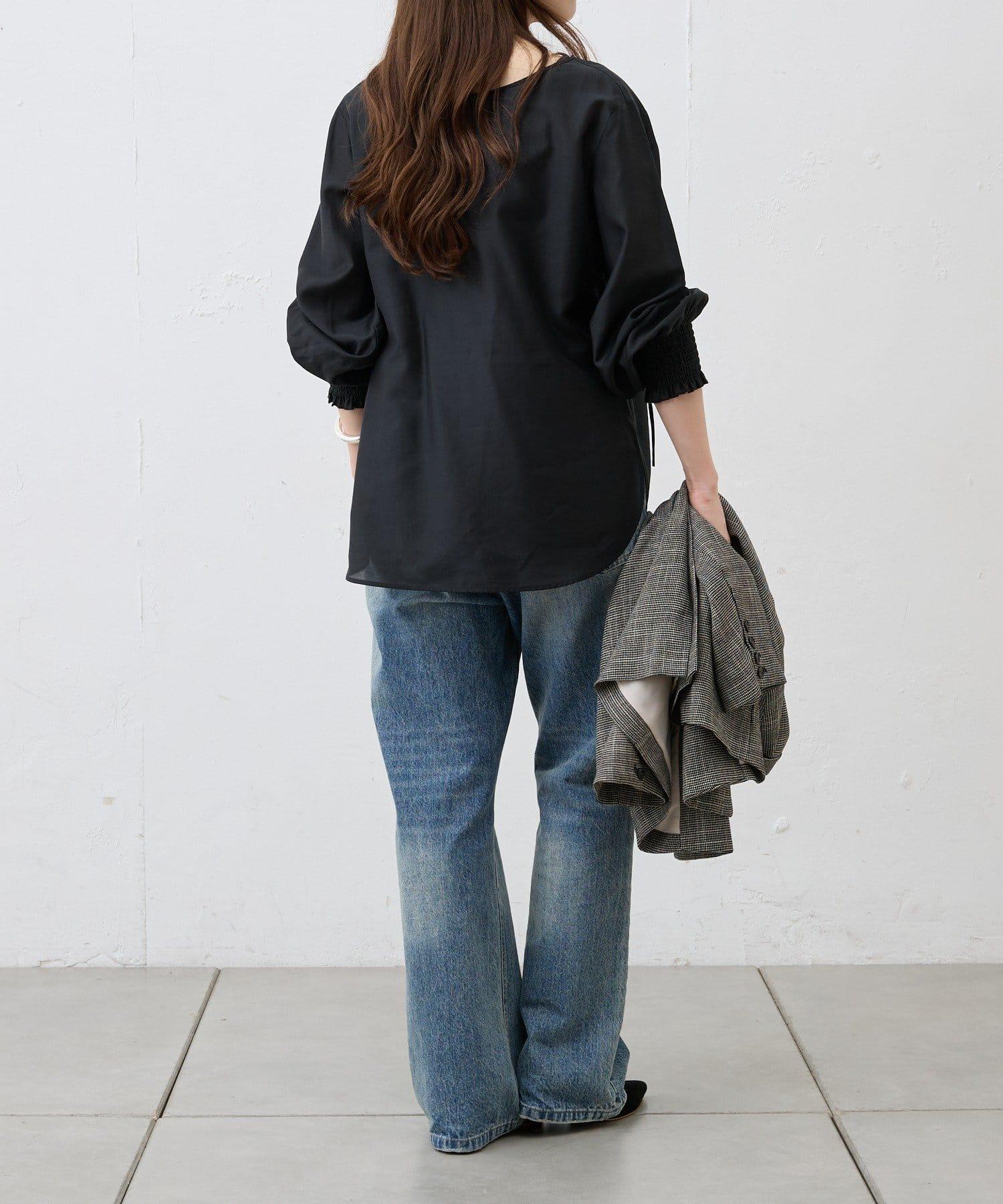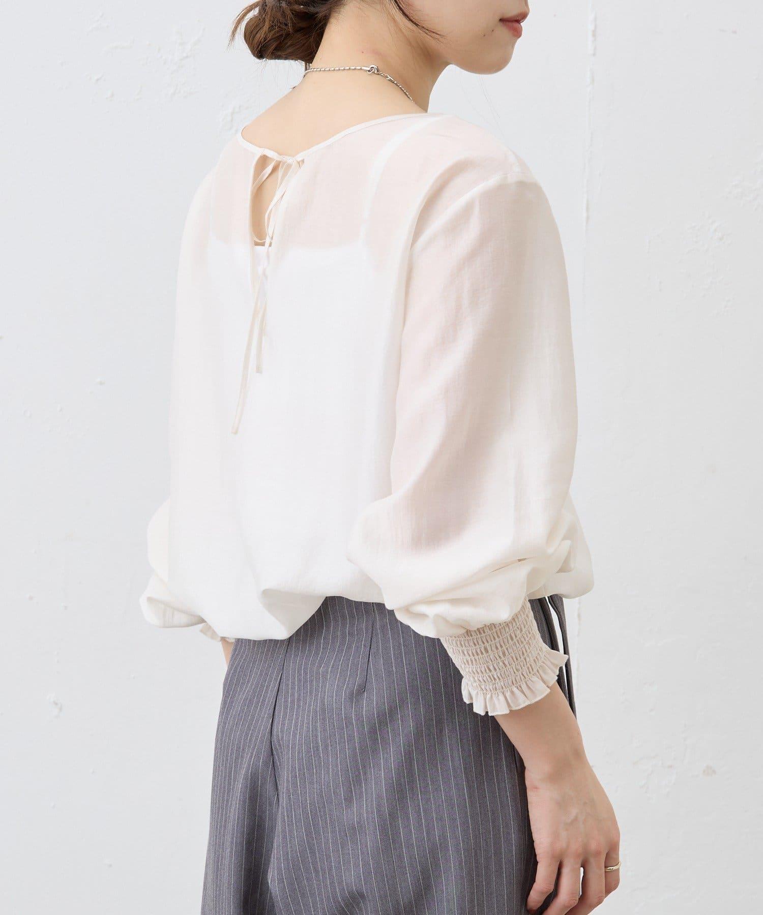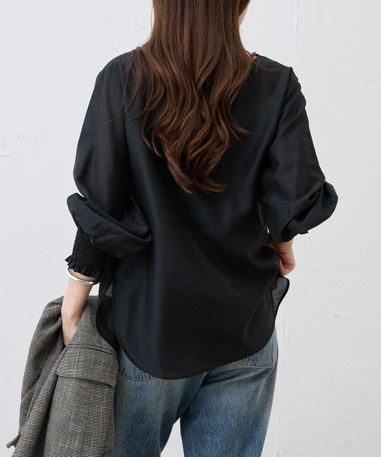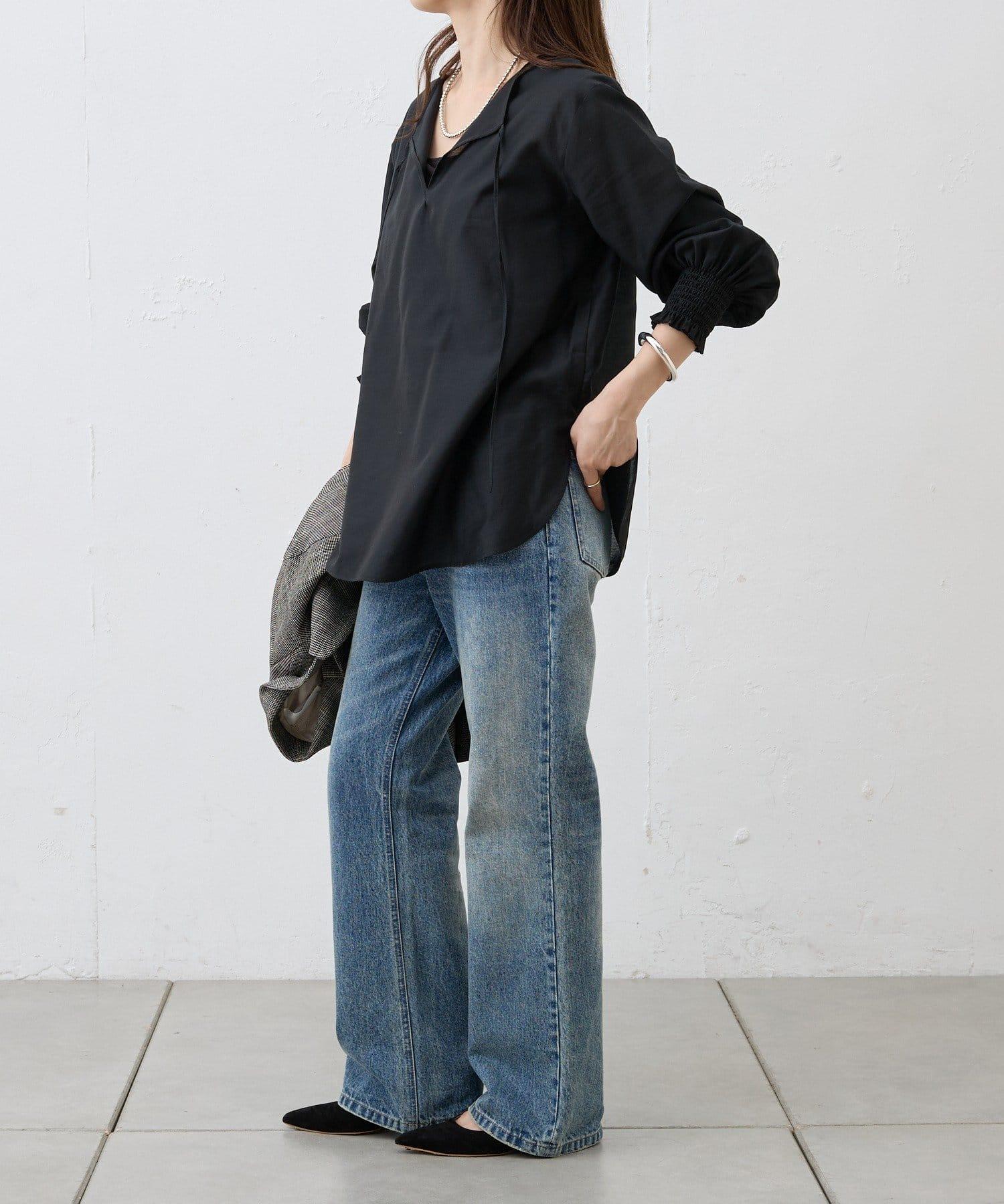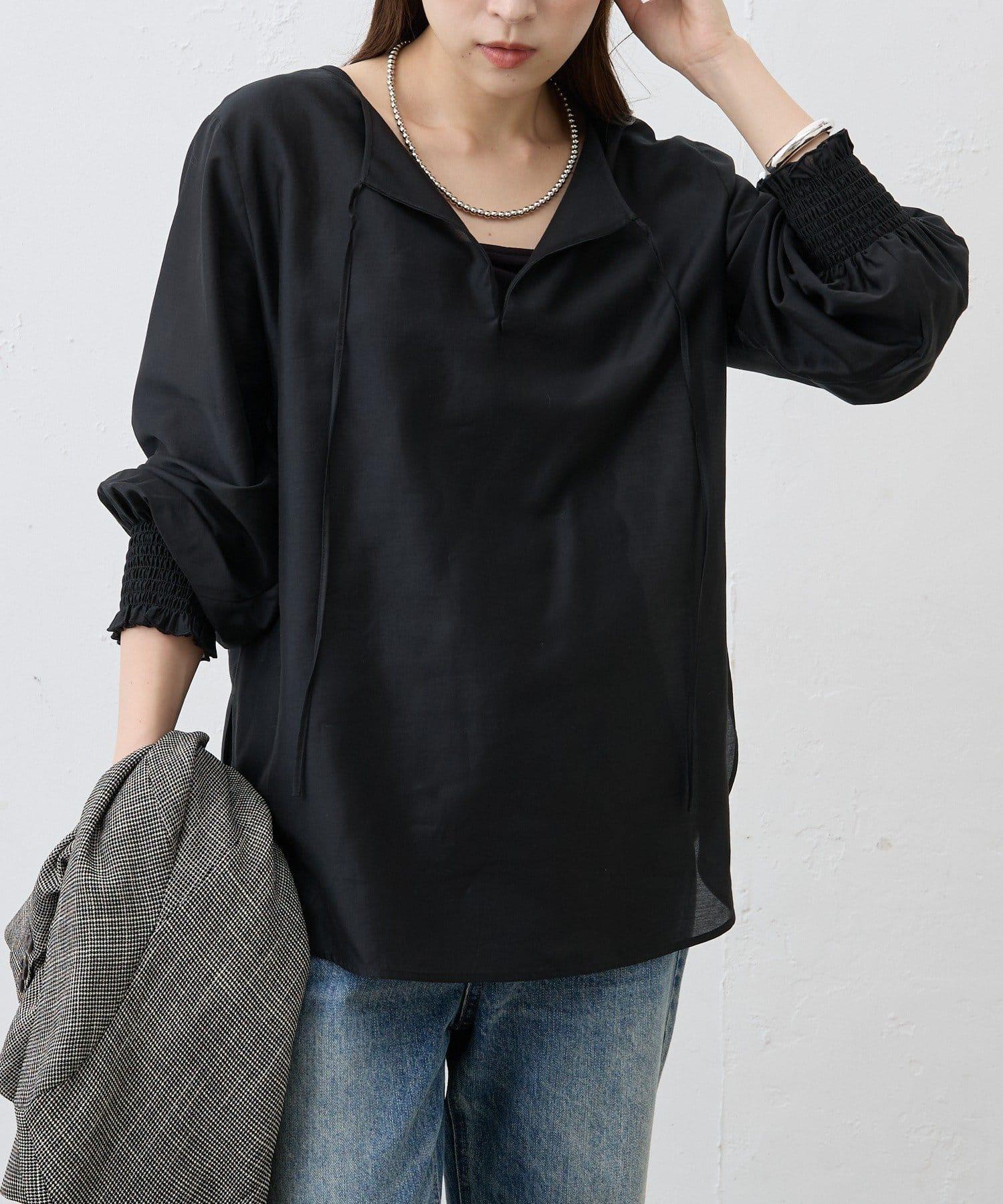 V 領的頂部有緞帶裝飾,看起來更寬鬆。