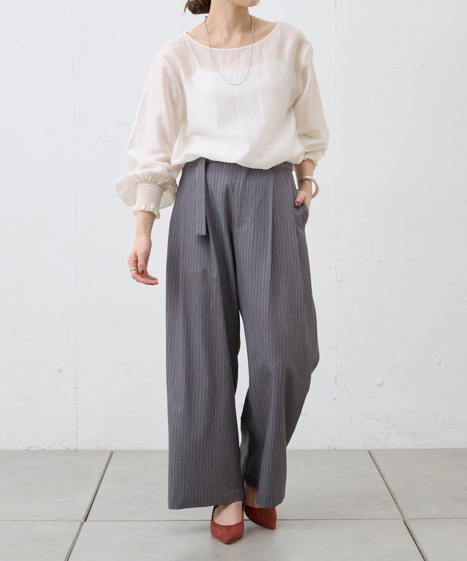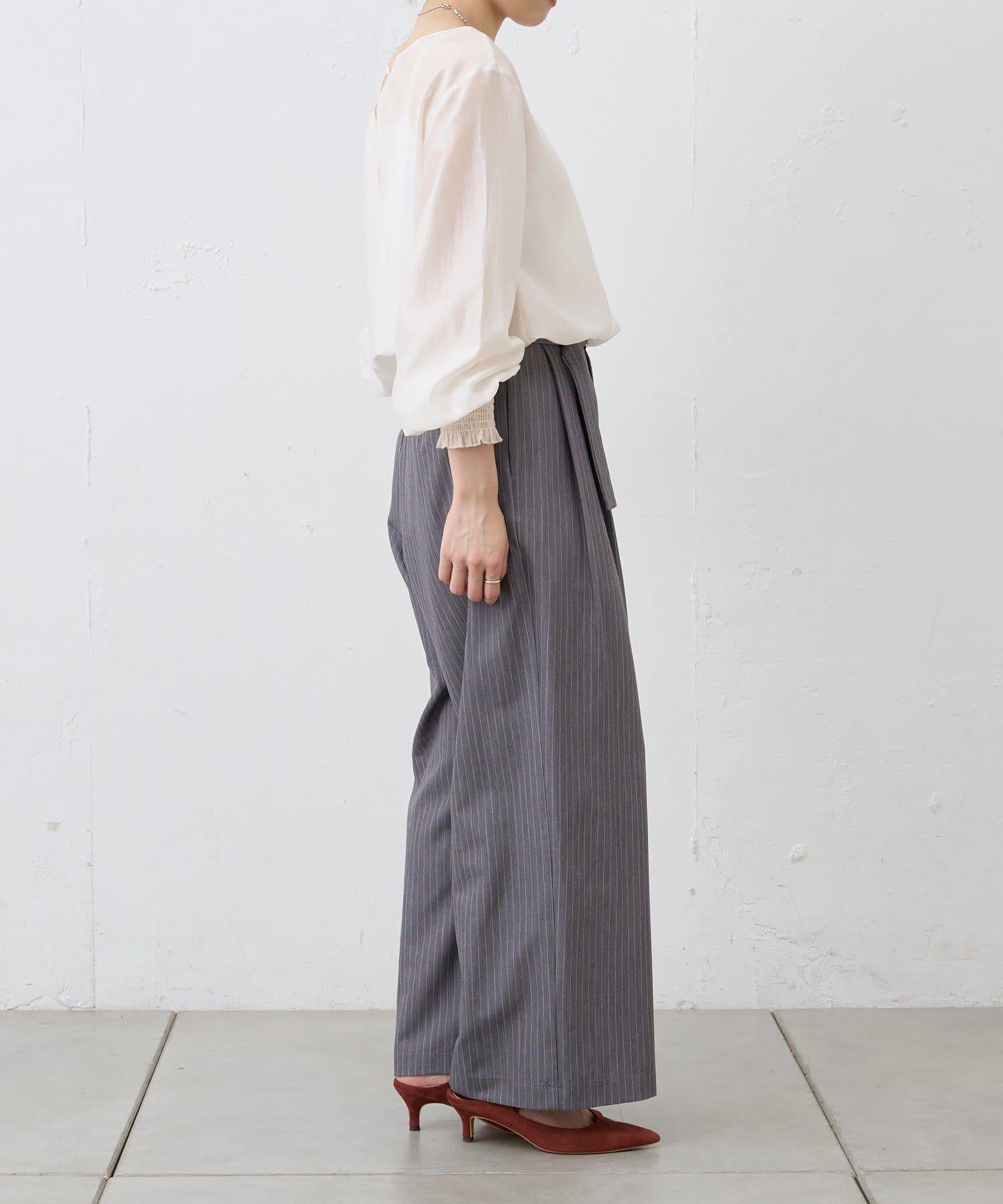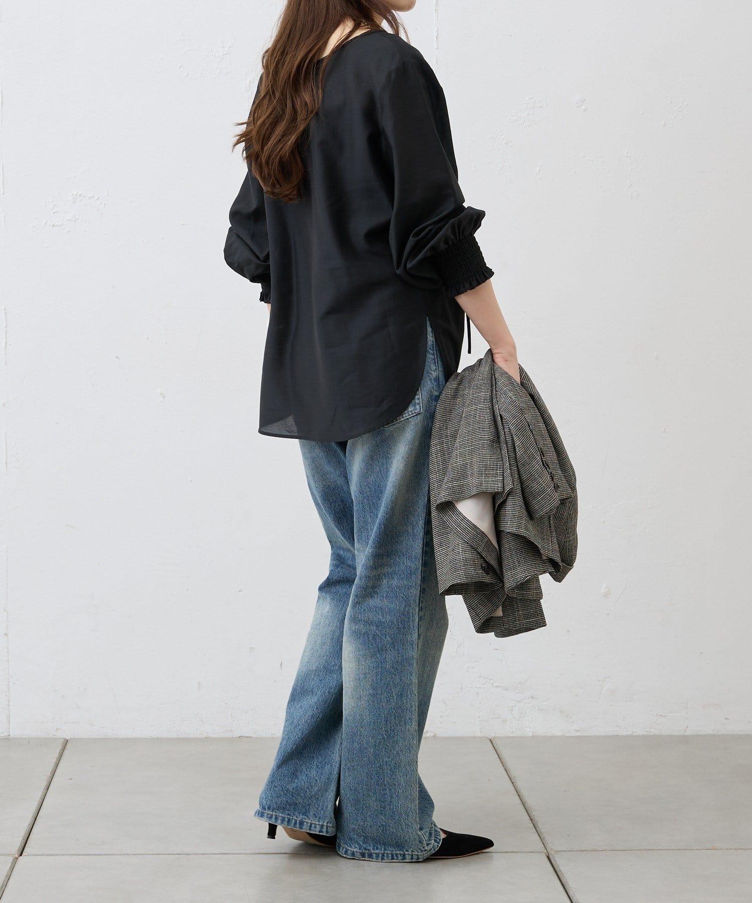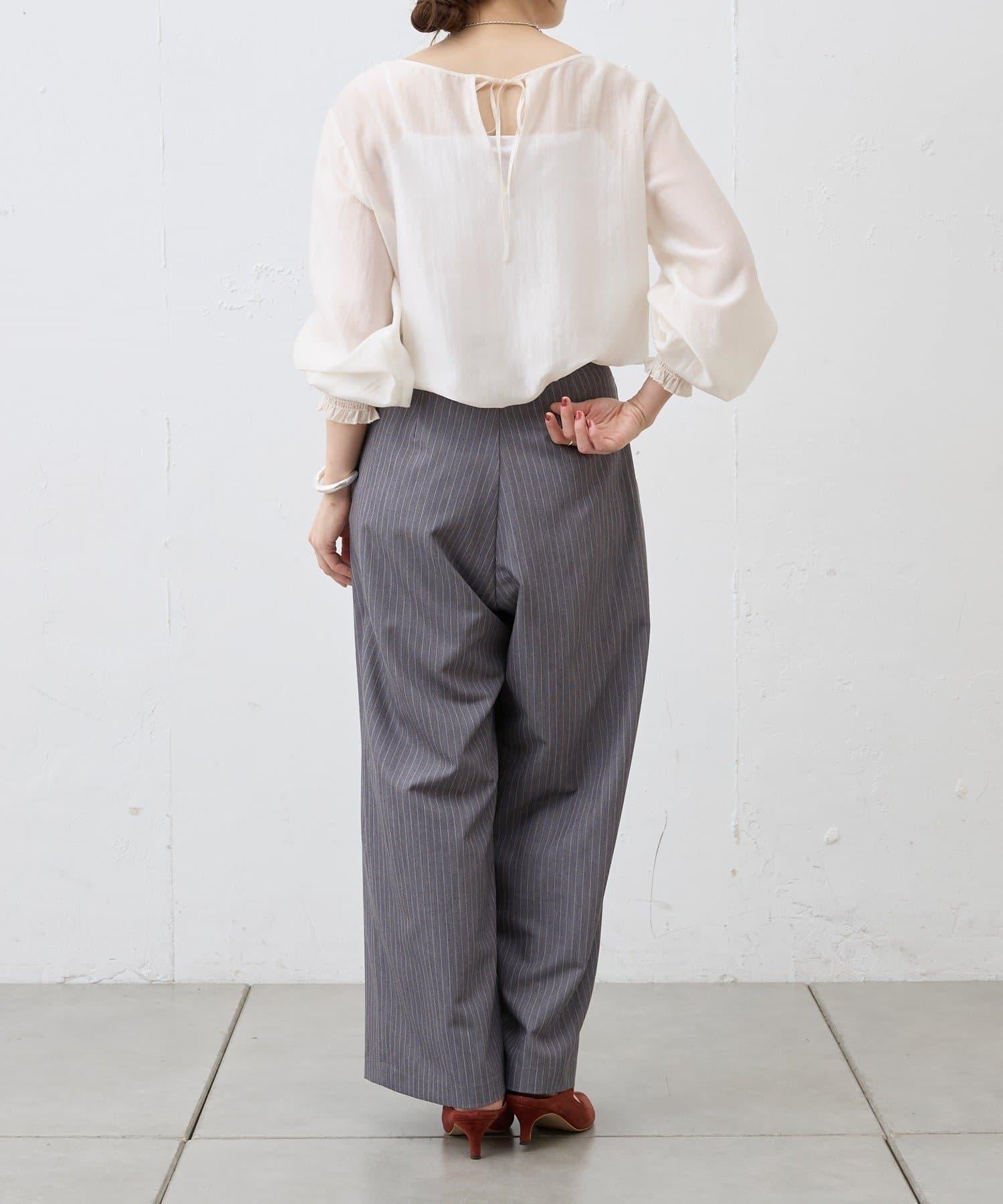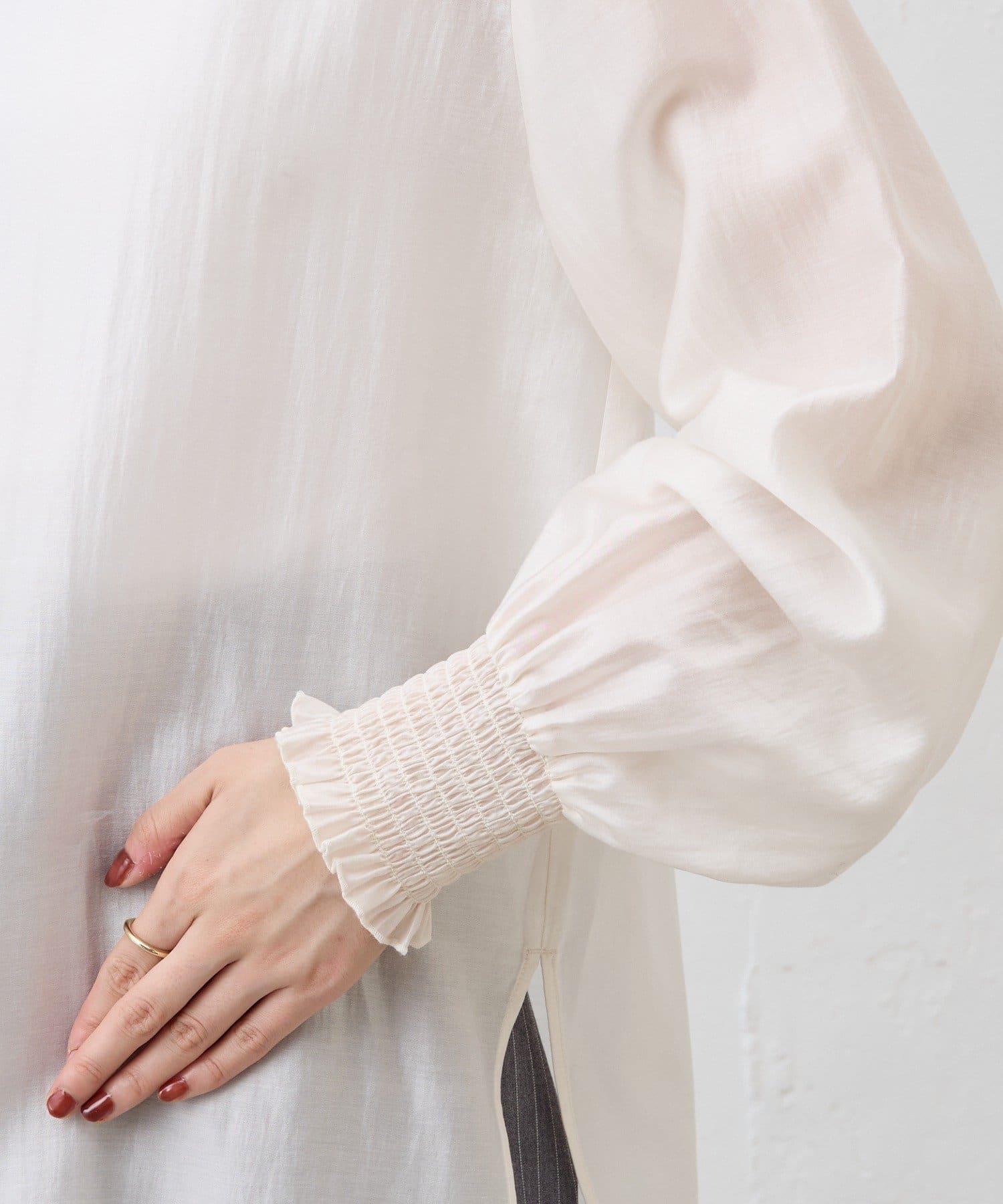 V 領的頂部有緞帶裝飾,看起來更寬鬆。