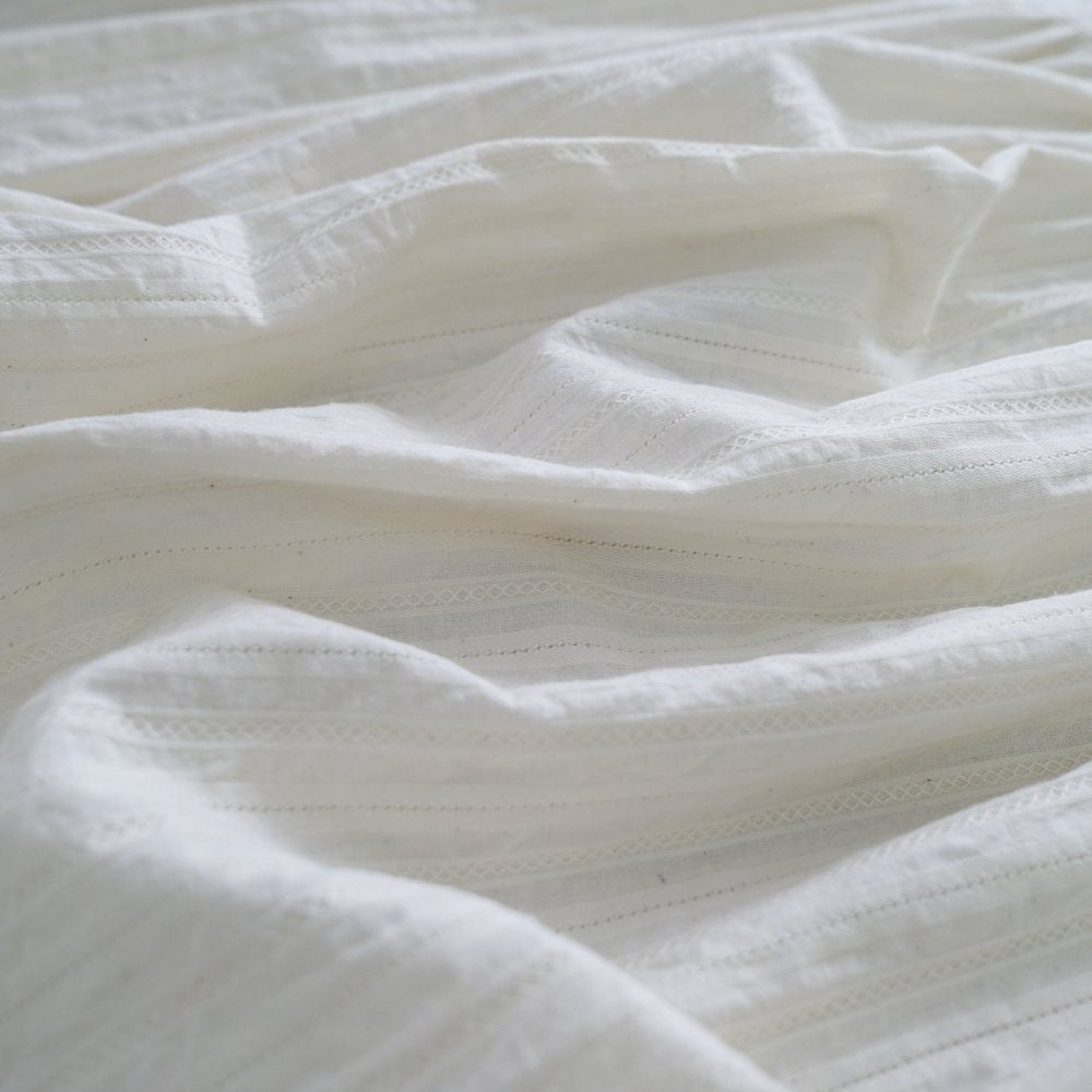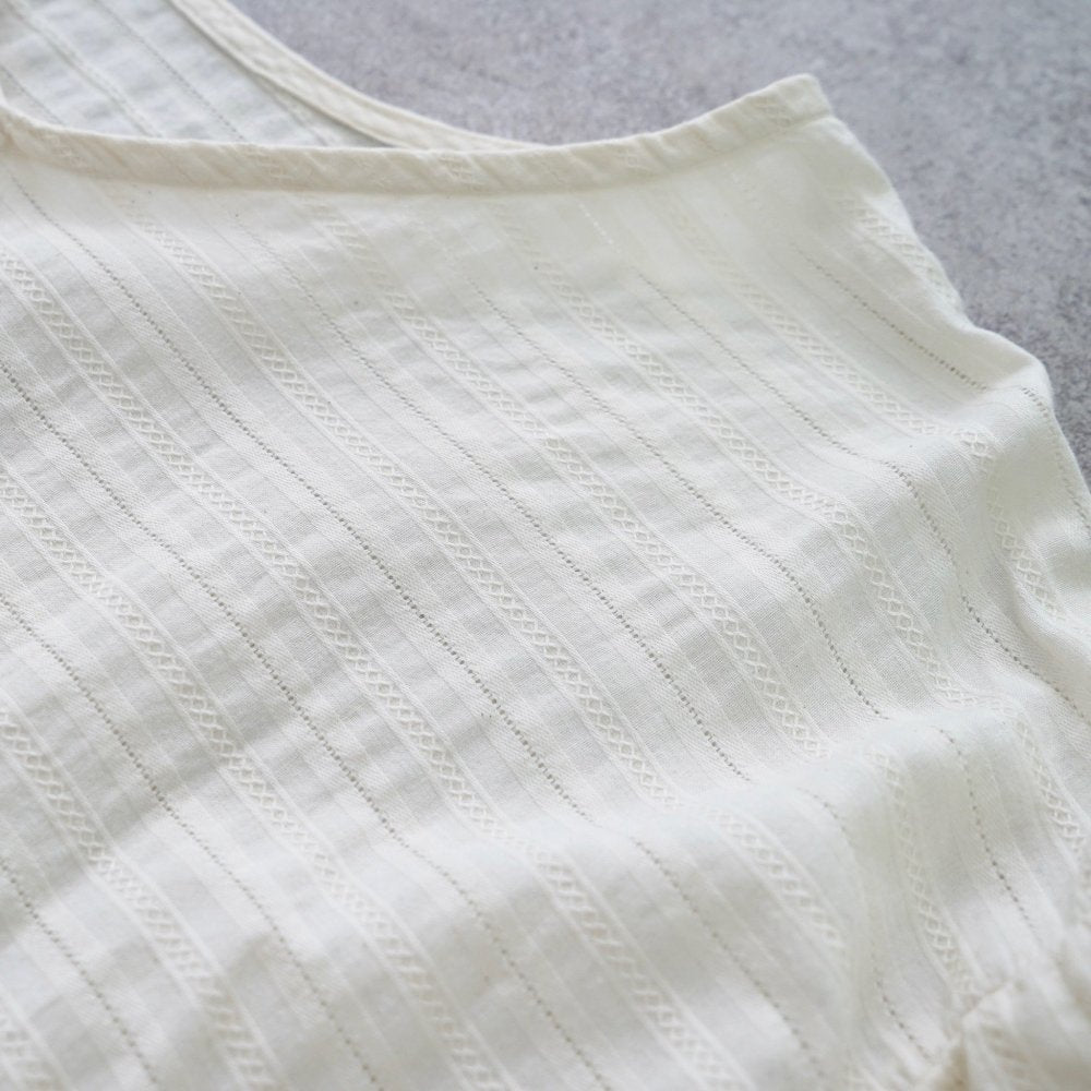 複雜的條紋圖案之間的細小縫隙表現出織物優雅的透明度,同時具有高度透氣性、輕盈性和緊繃性,是夏季的理想面料。微妙的條紋圖案賦予其獨特的外觀。