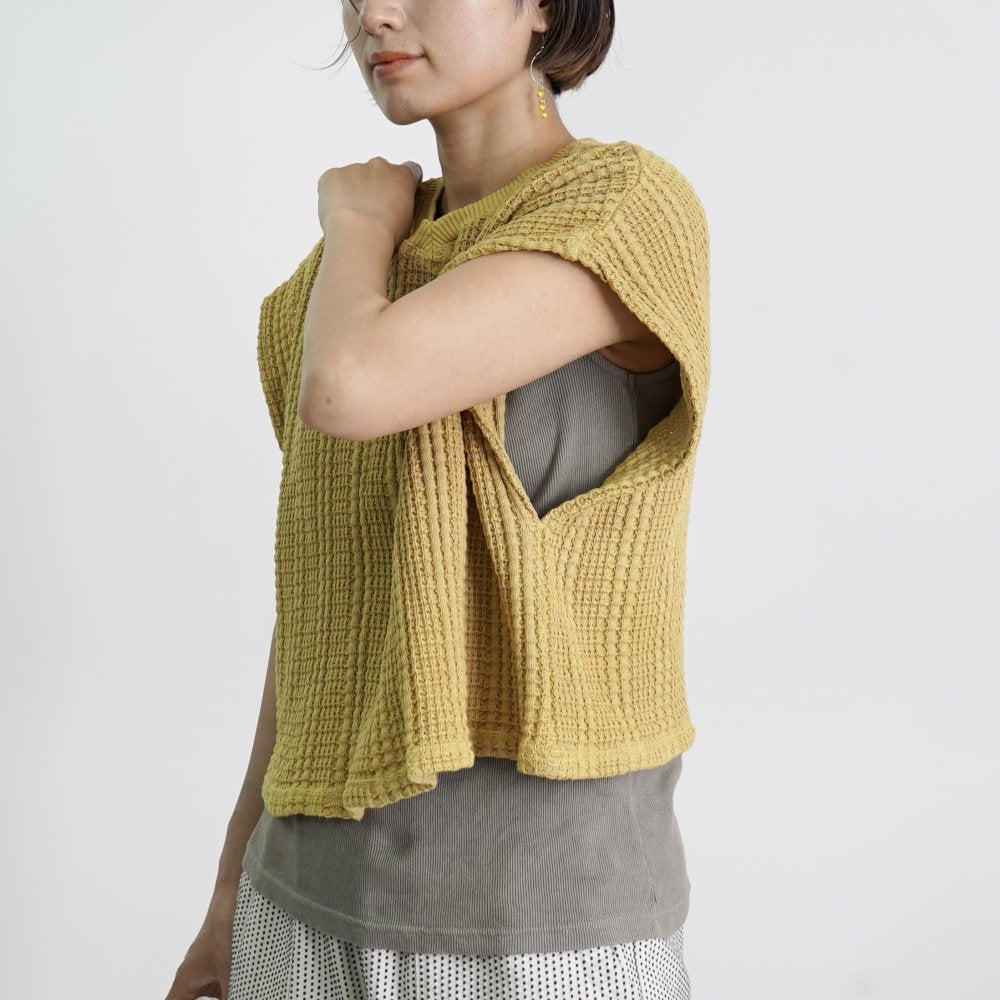 2way短款針織馬甲/黃色/愛知縣三河針織