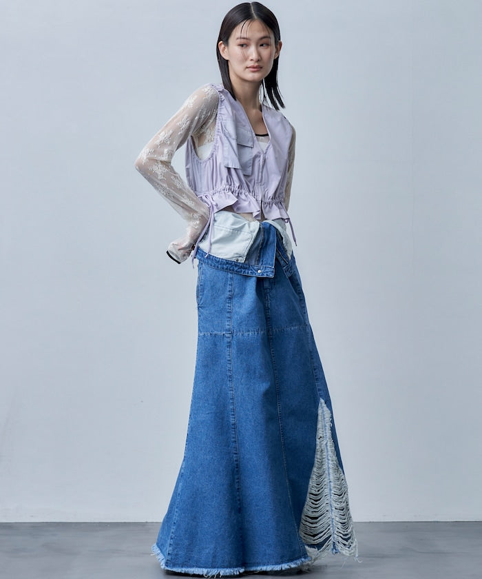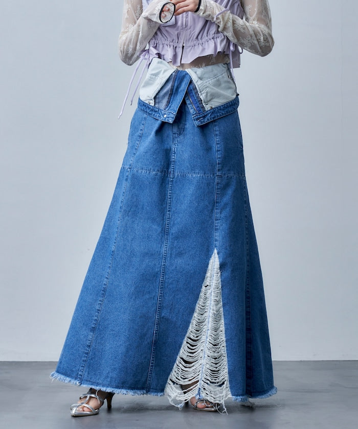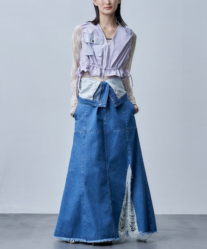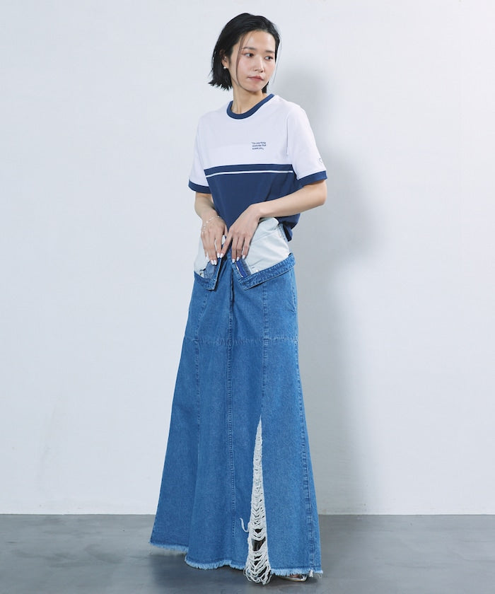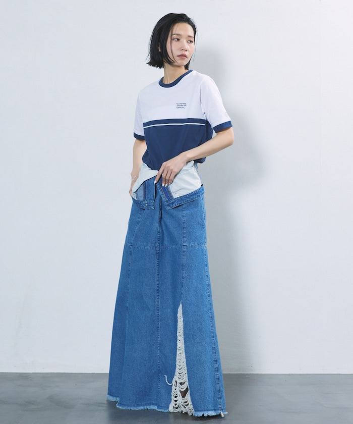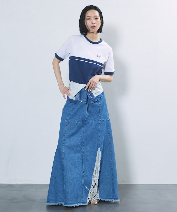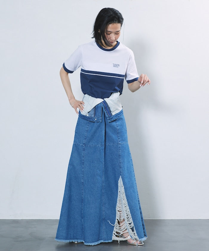 藍色的下襬採用了碎花設計,可以穿出復古的感覺。