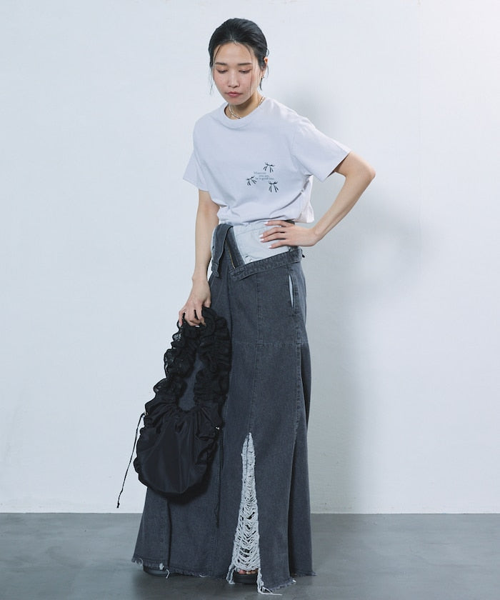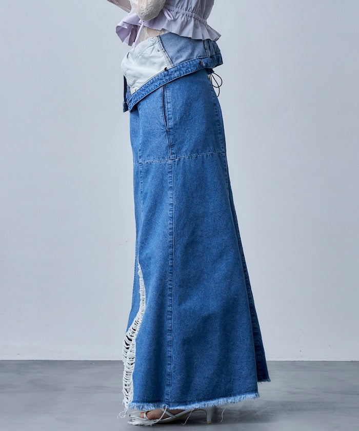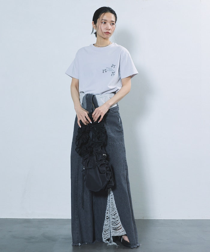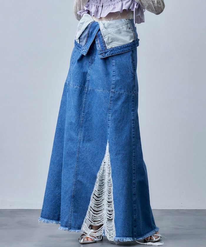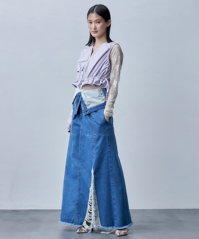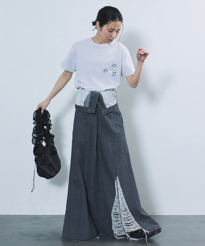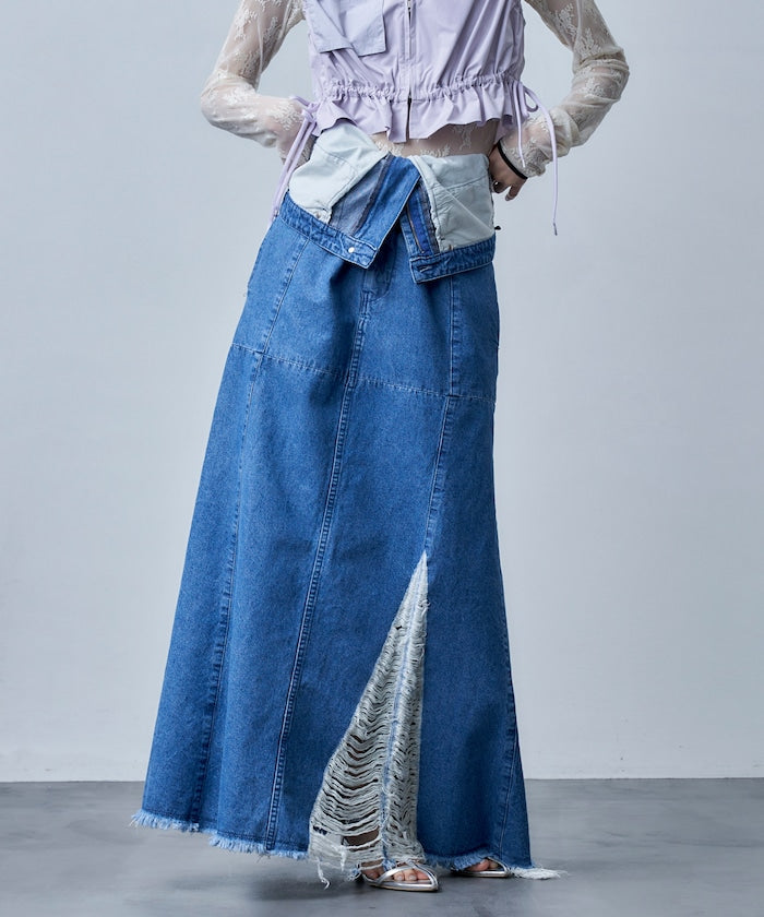 藍色的下襬採用了碎花設計,可以穿出復古的感覺。