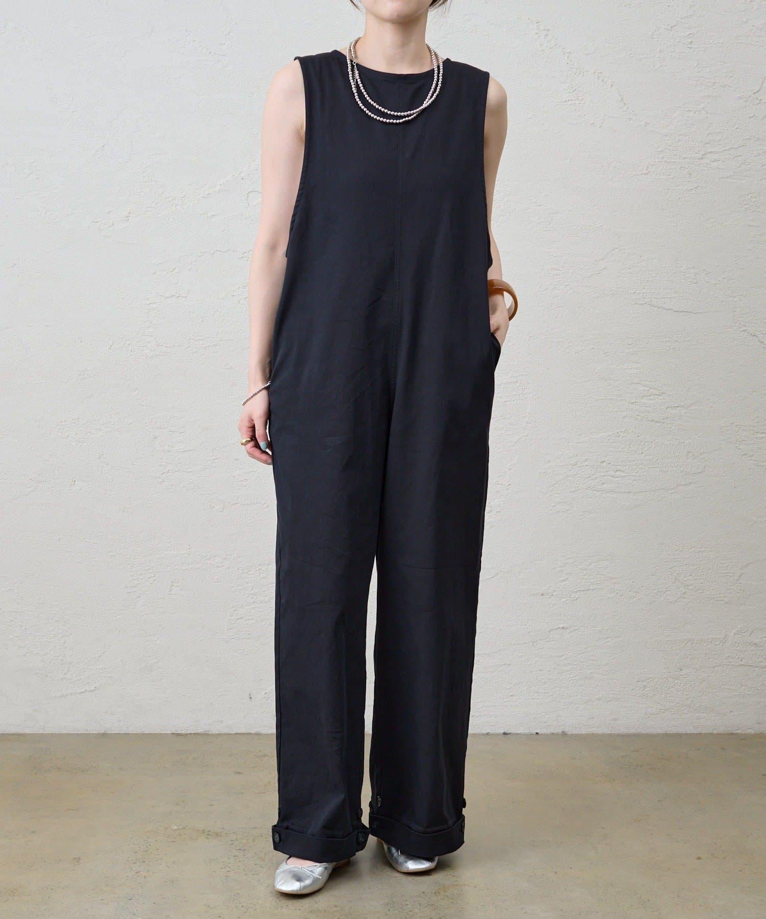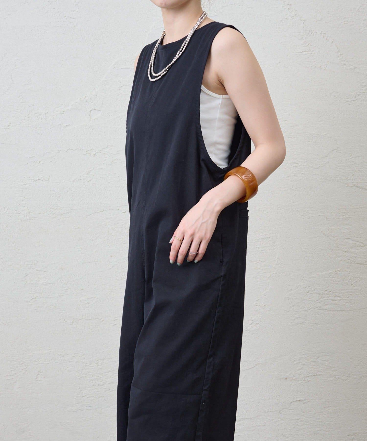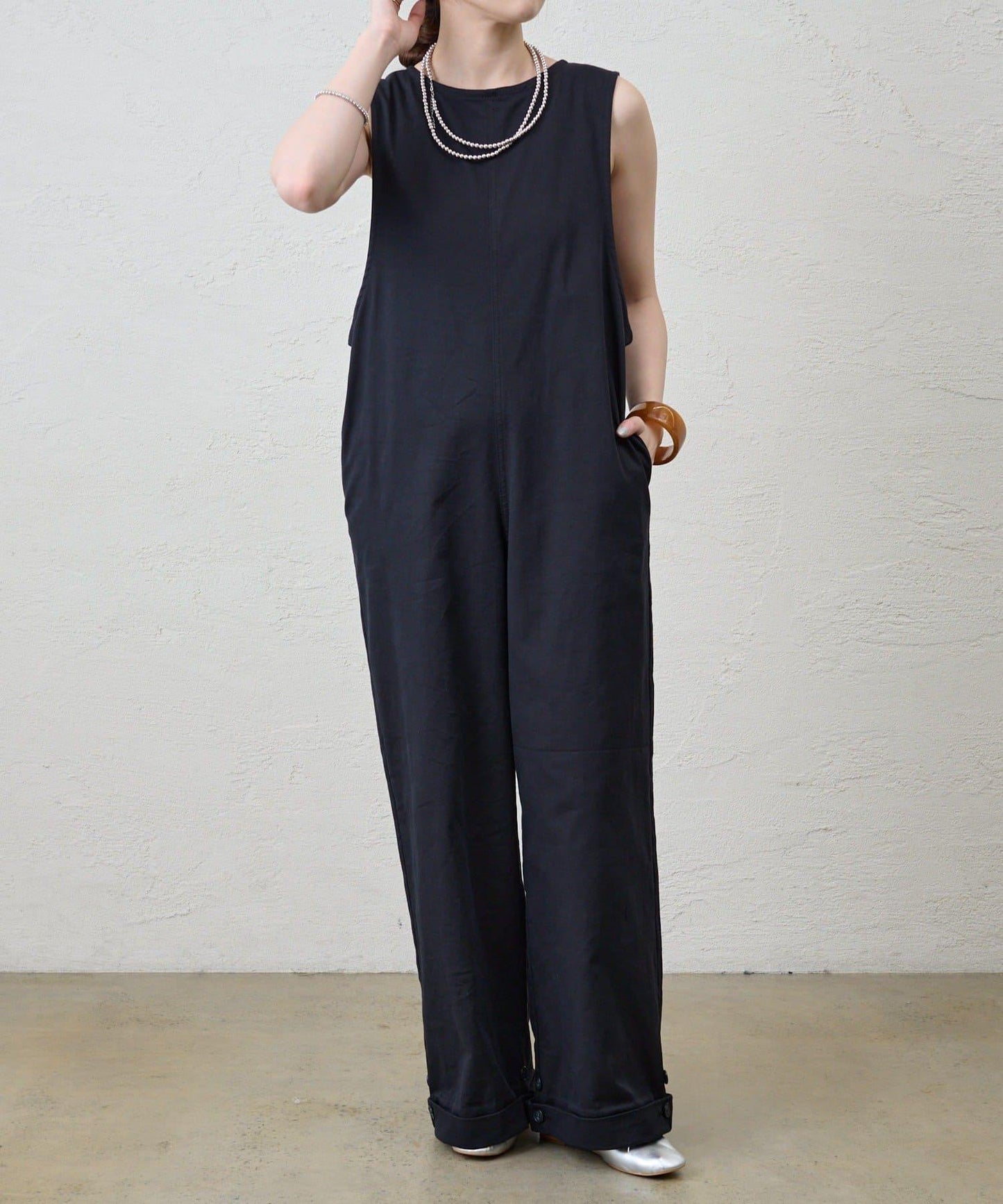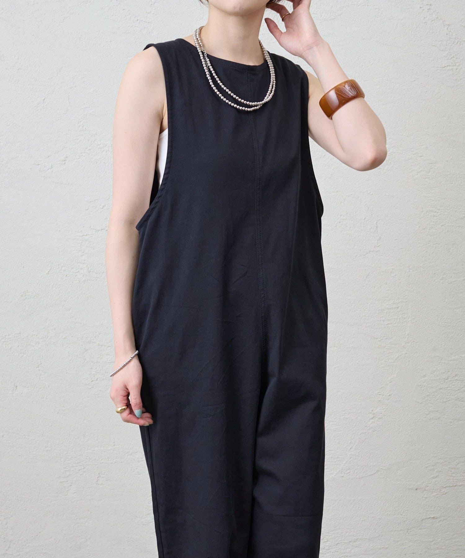 一體式連衣裙擁有一體式連衣裙才有的寬鬆感,但通過將領口微微做成船領,領口也微微做成船領,使臉部周圍看起來乾淨利落。