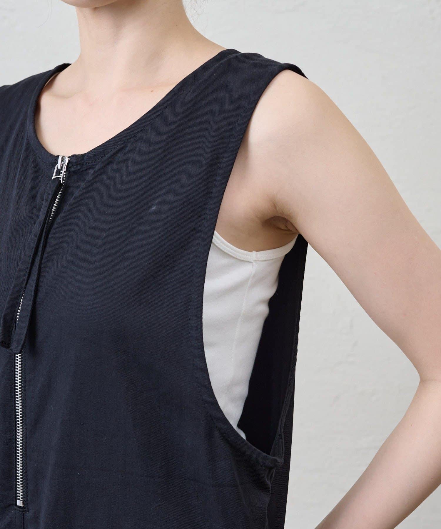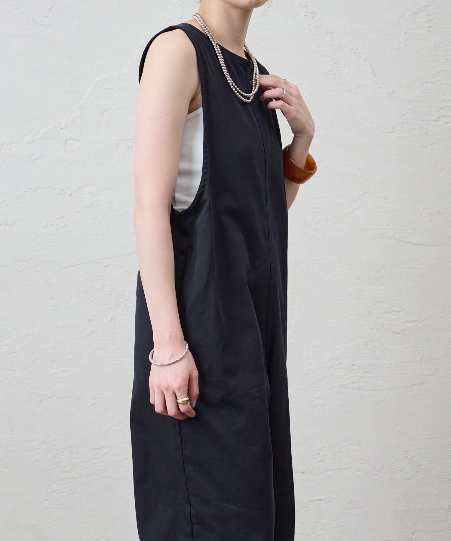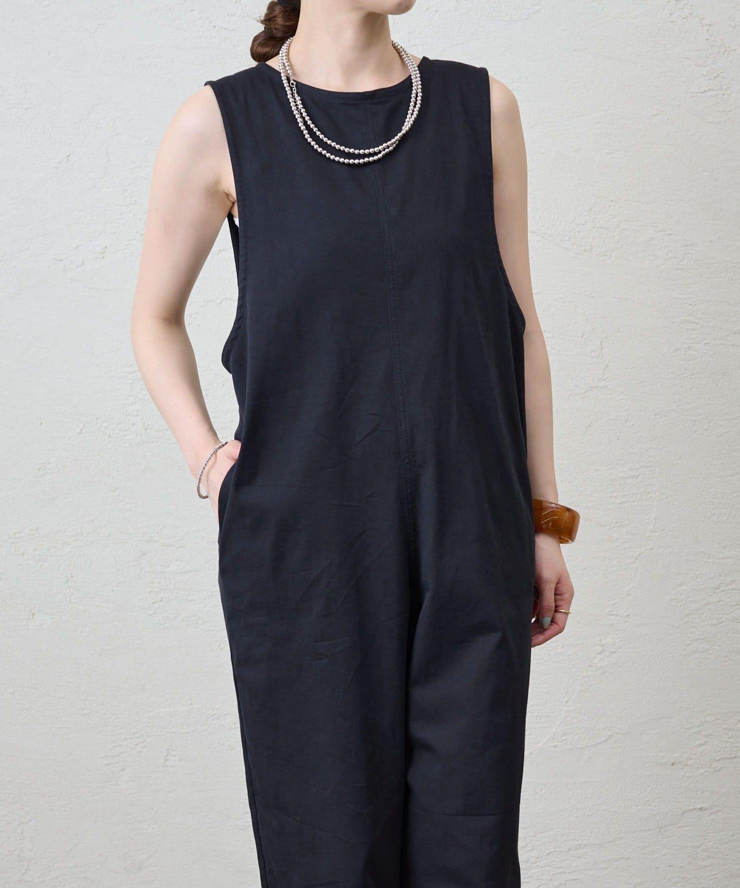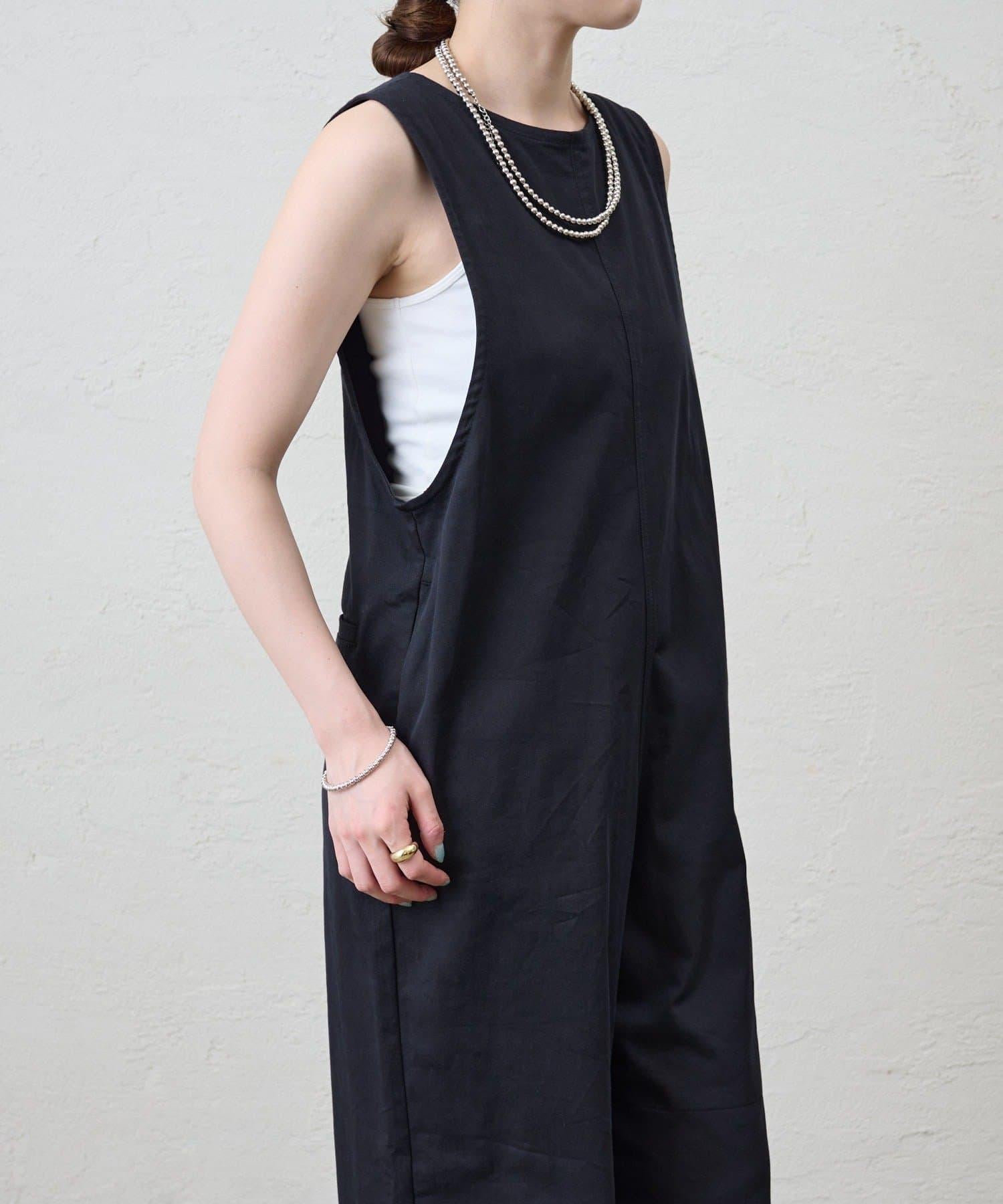 一體式連衣裙擁有一體式連衣裙才有的寬鬆感,但通過將領口微微做成船領,領口也微微做成船領,使臉部周圍看起來乾淨利落。