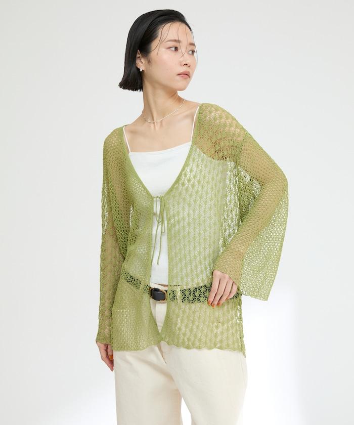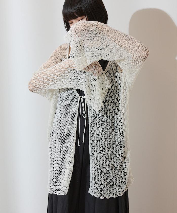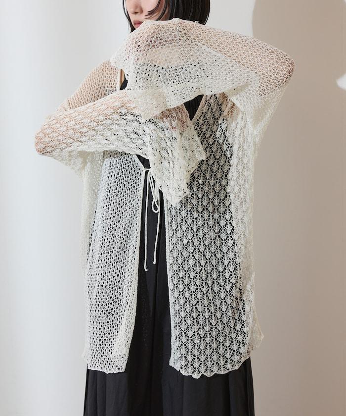 鏤空開衫,採用腈綸尼龍紗線,手感清爽涼快。