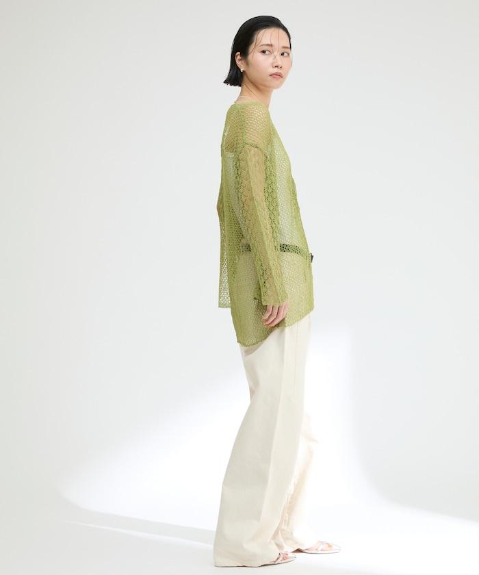 獨特的鏤空針織衫,左右兩側對接的兩種不同針織面料帶來不同的外觀和觸感。