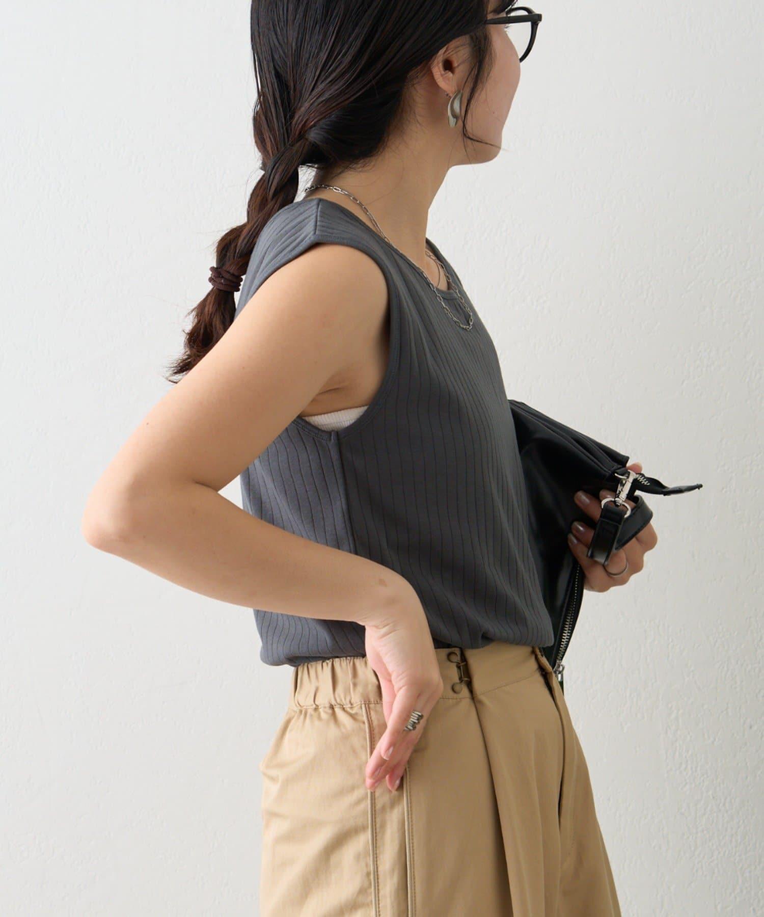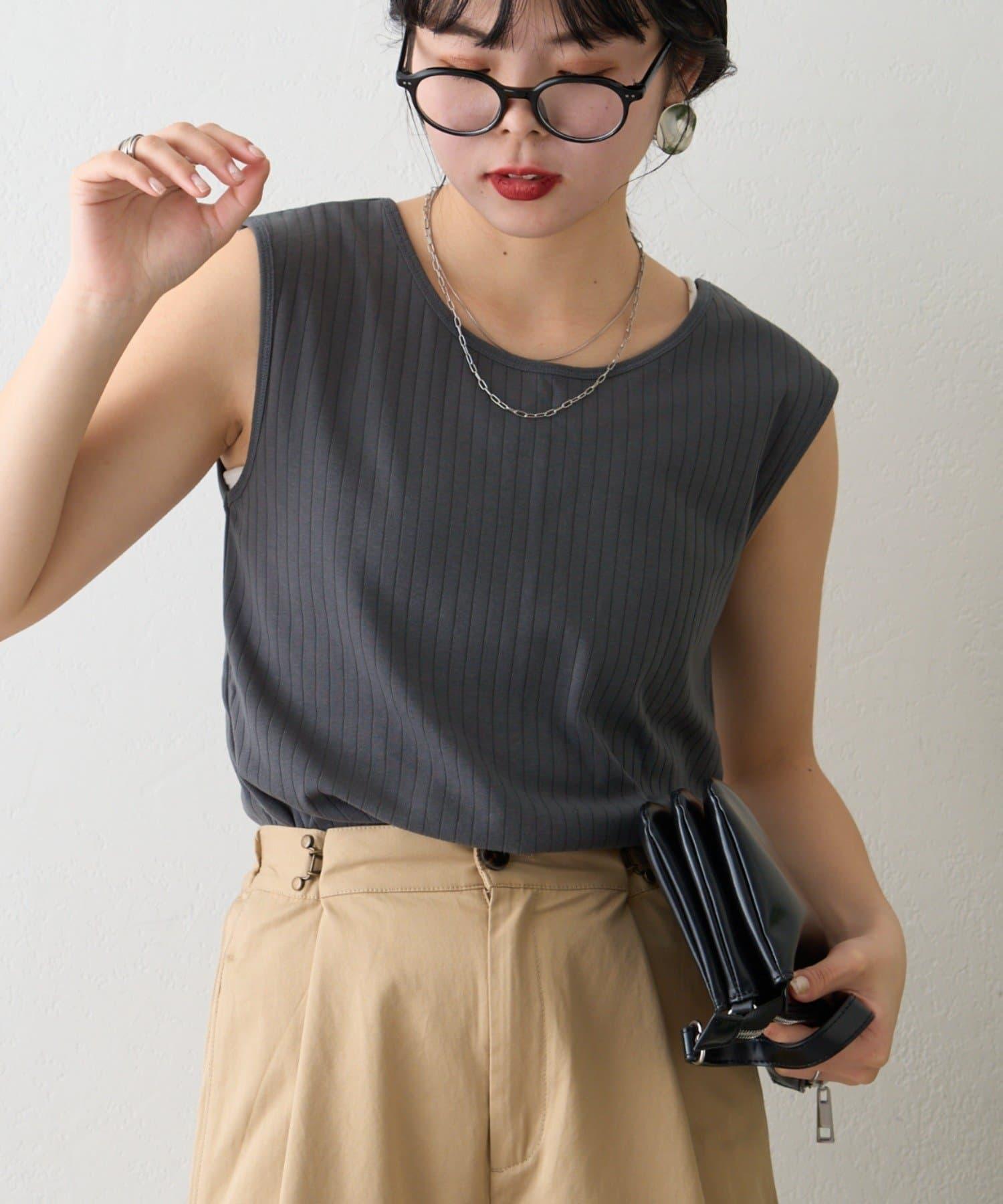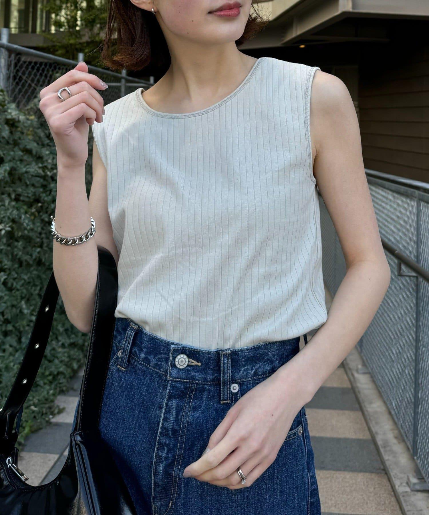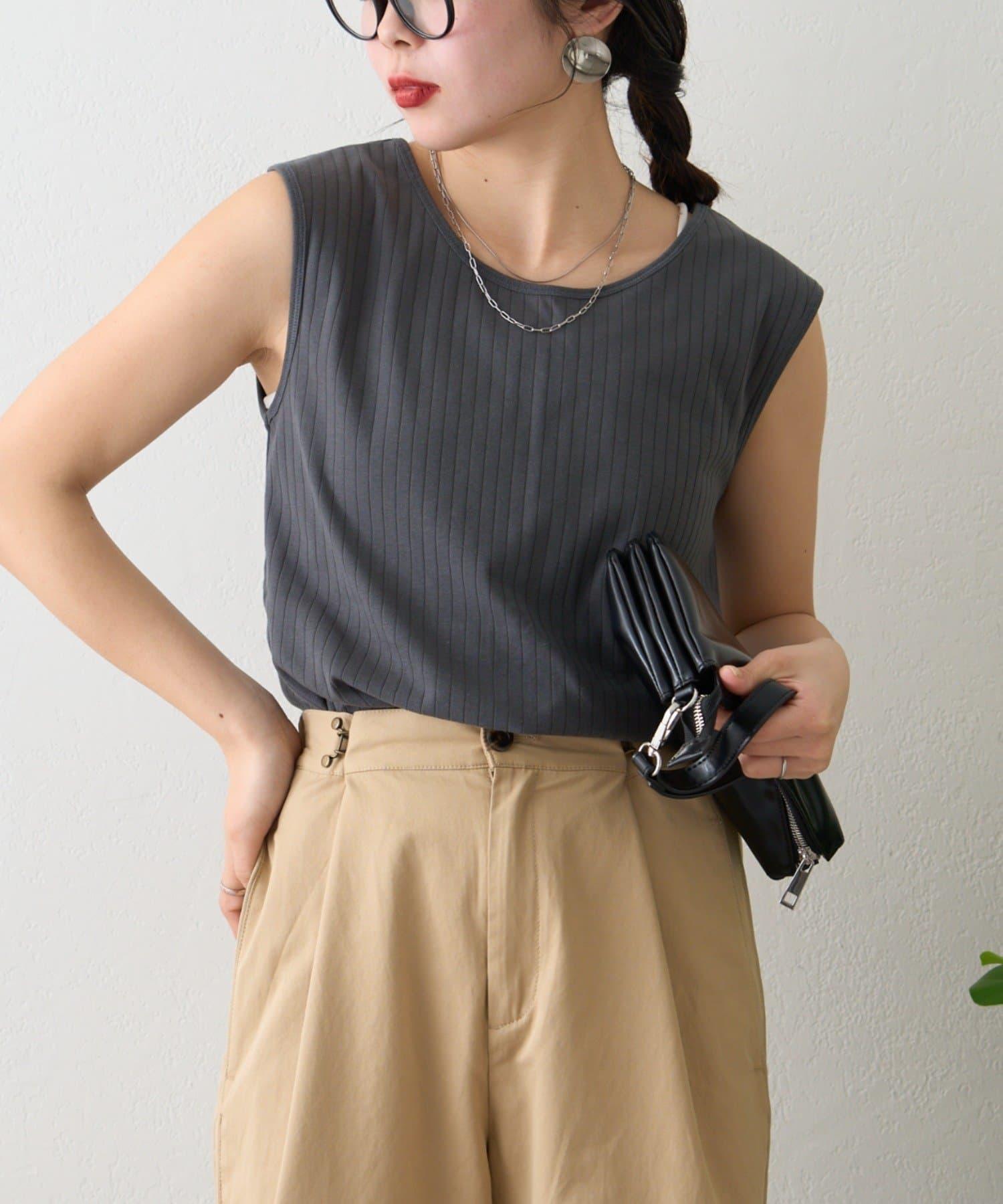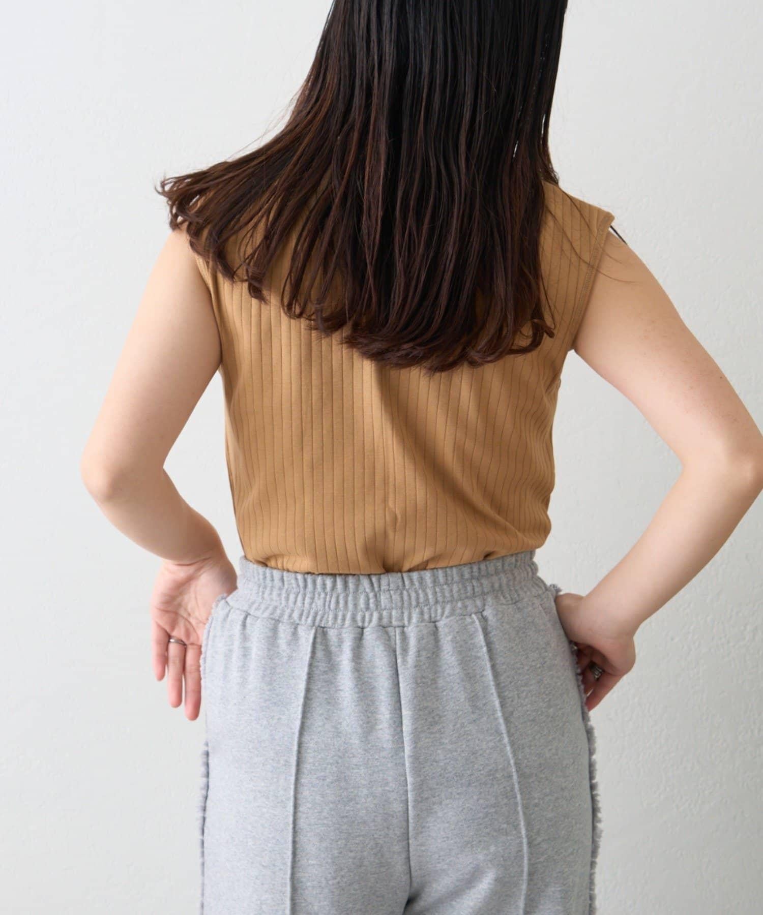羅紋面料與身體完美貼合,強調垂直線條,打造簡潔輪廓。