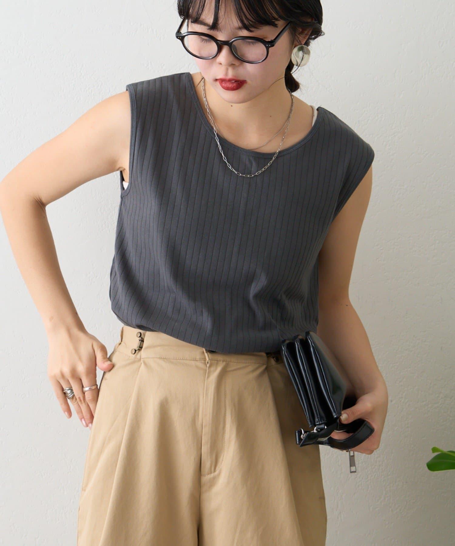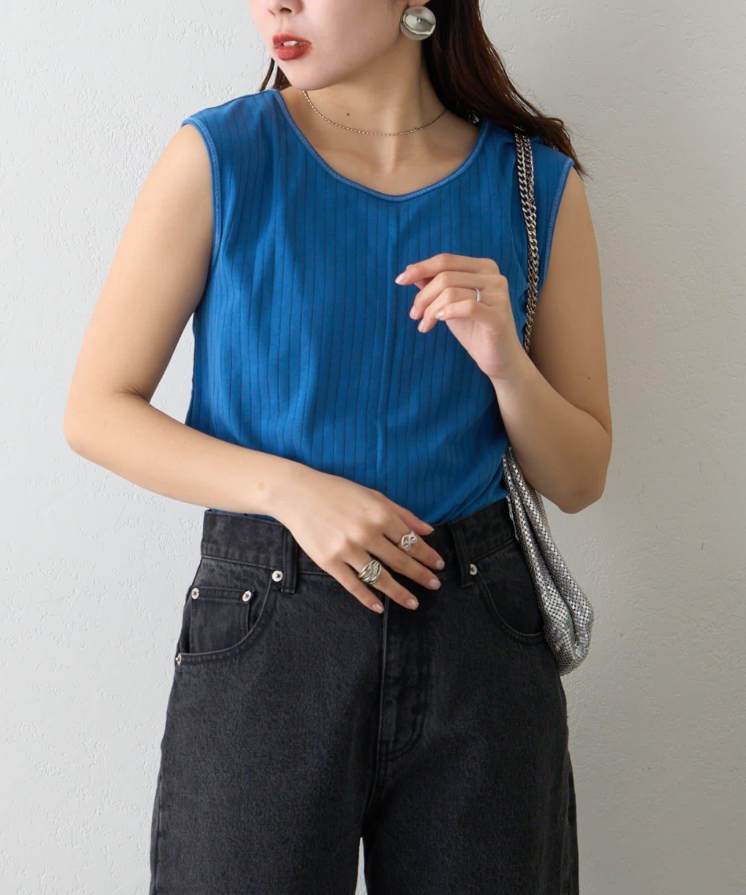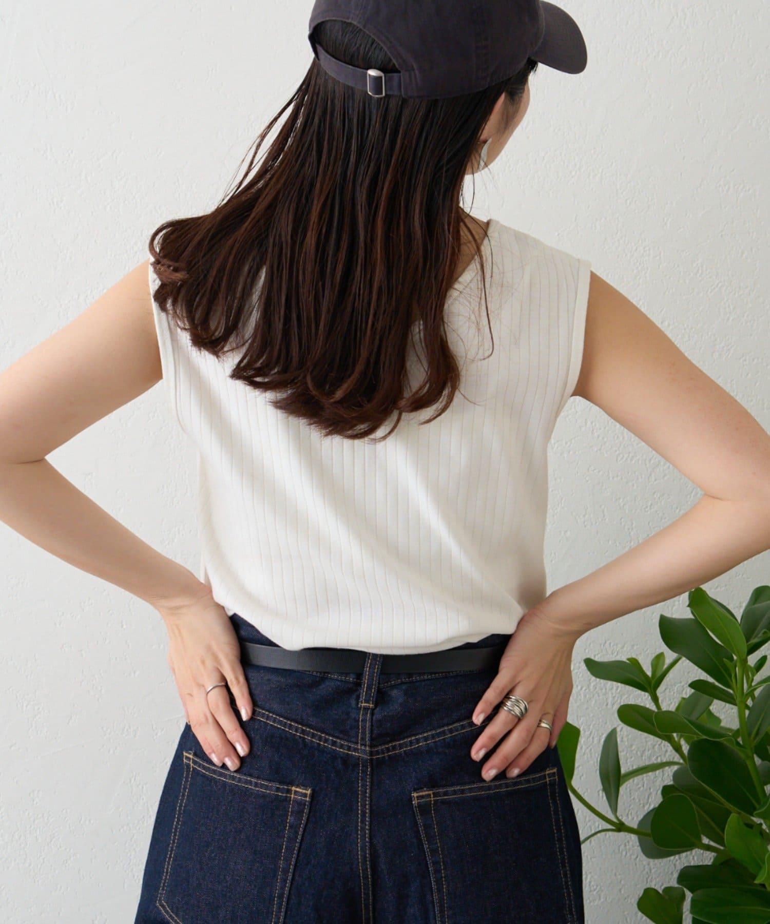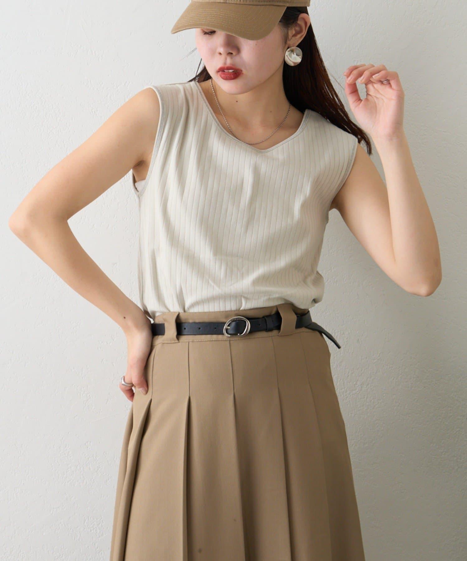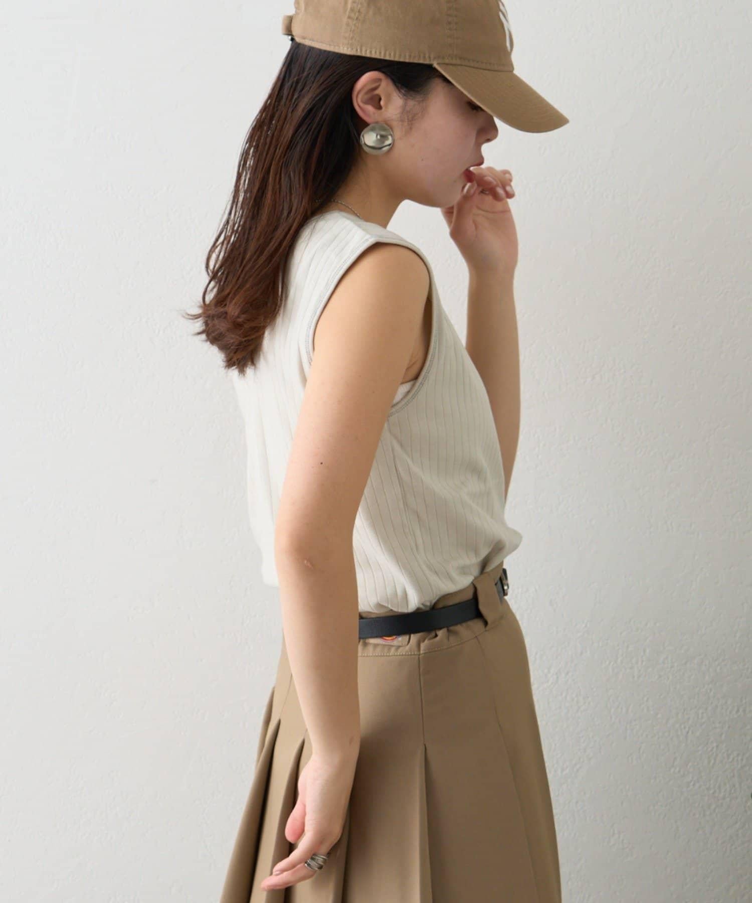 羅紋面料與身體完美貼合,強調垂直線條,打造簡潔輪廓。