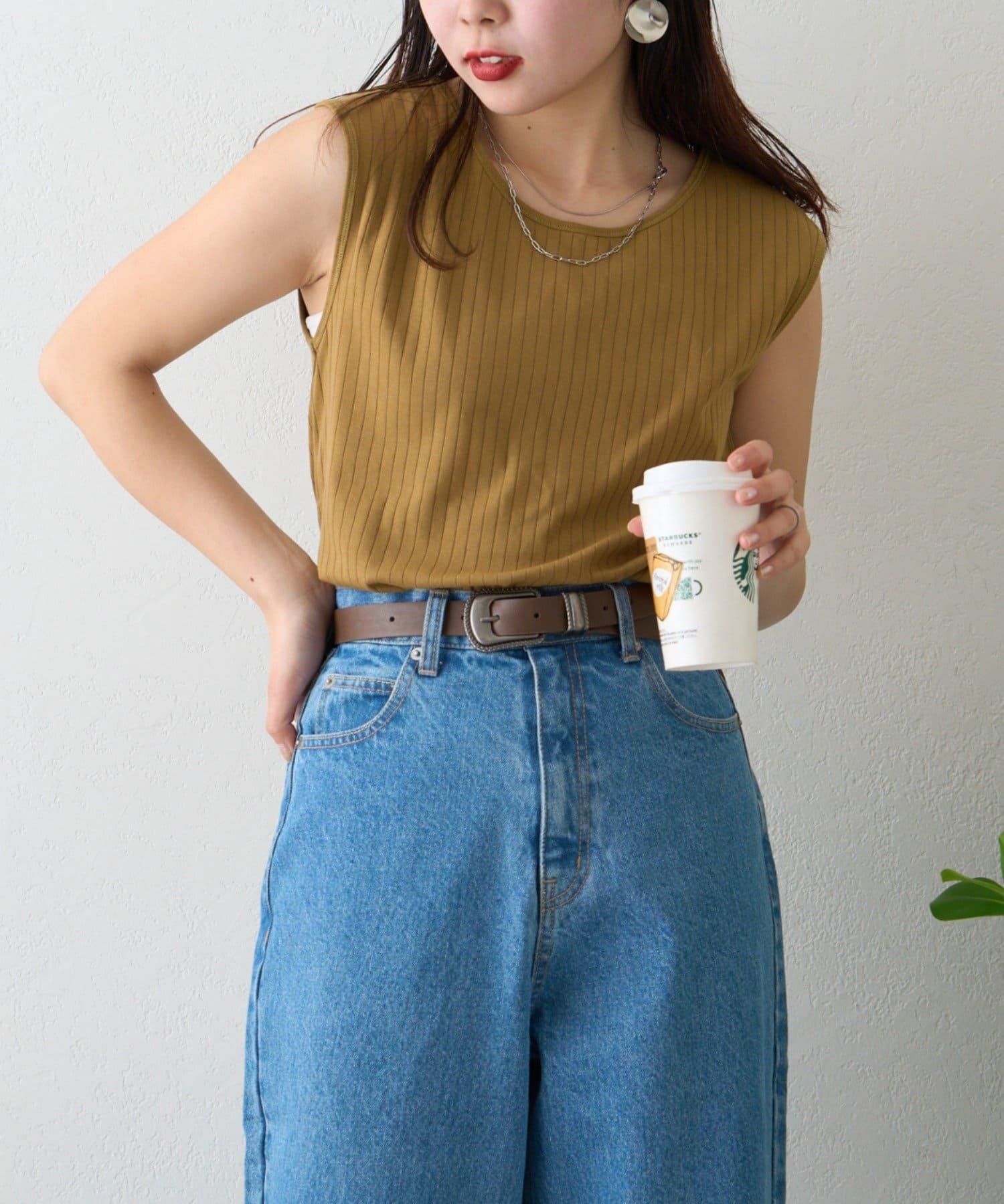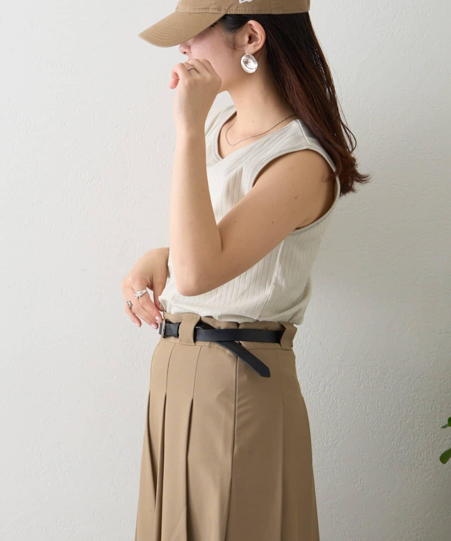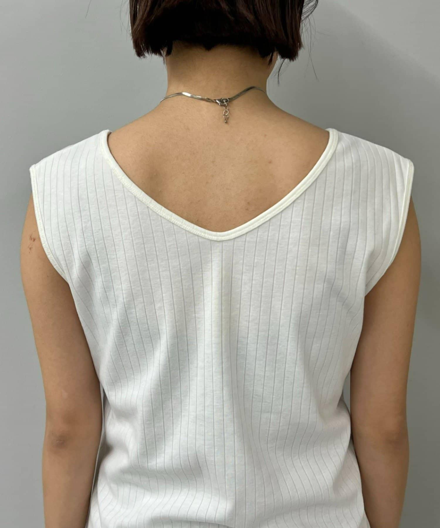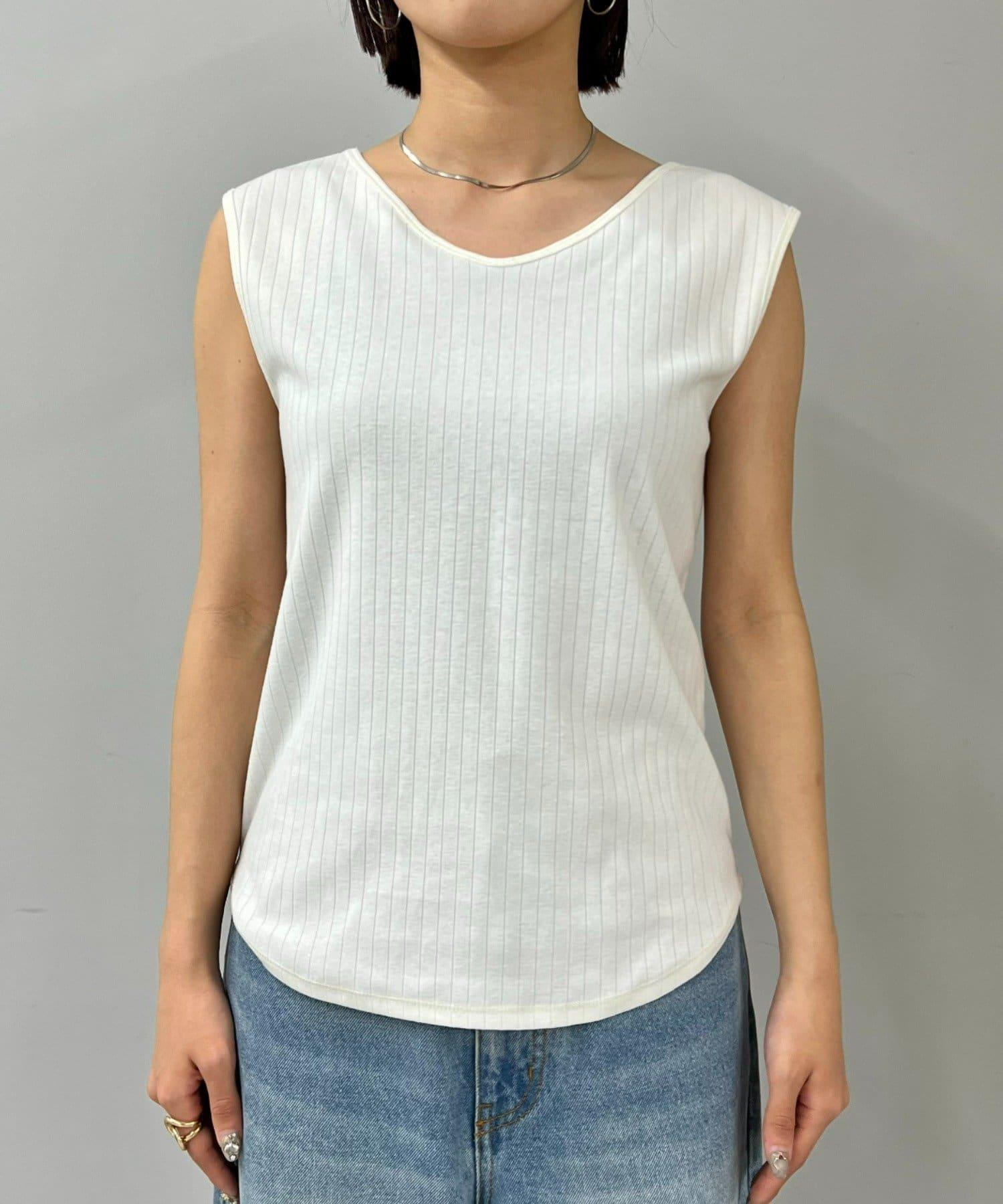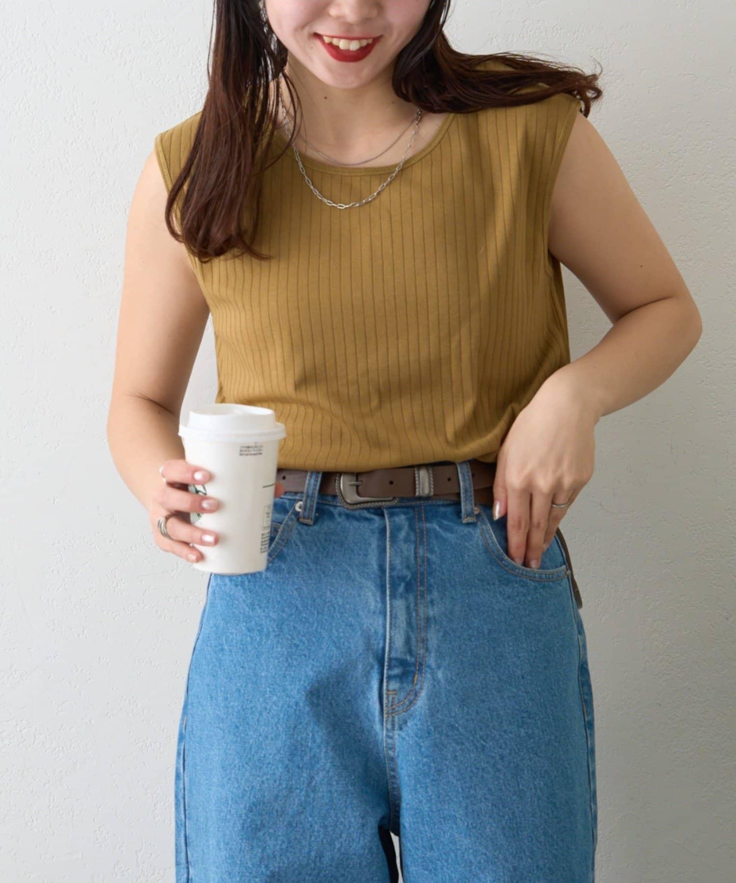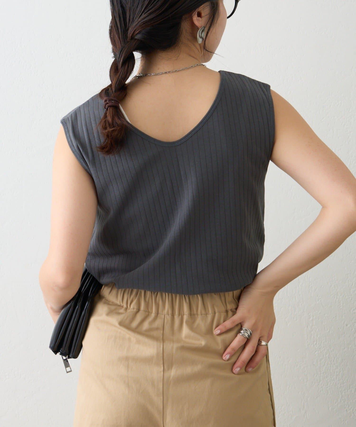 羅紋面料與身體完美貼合,強調垂直線條,打造簡潔輪廓。