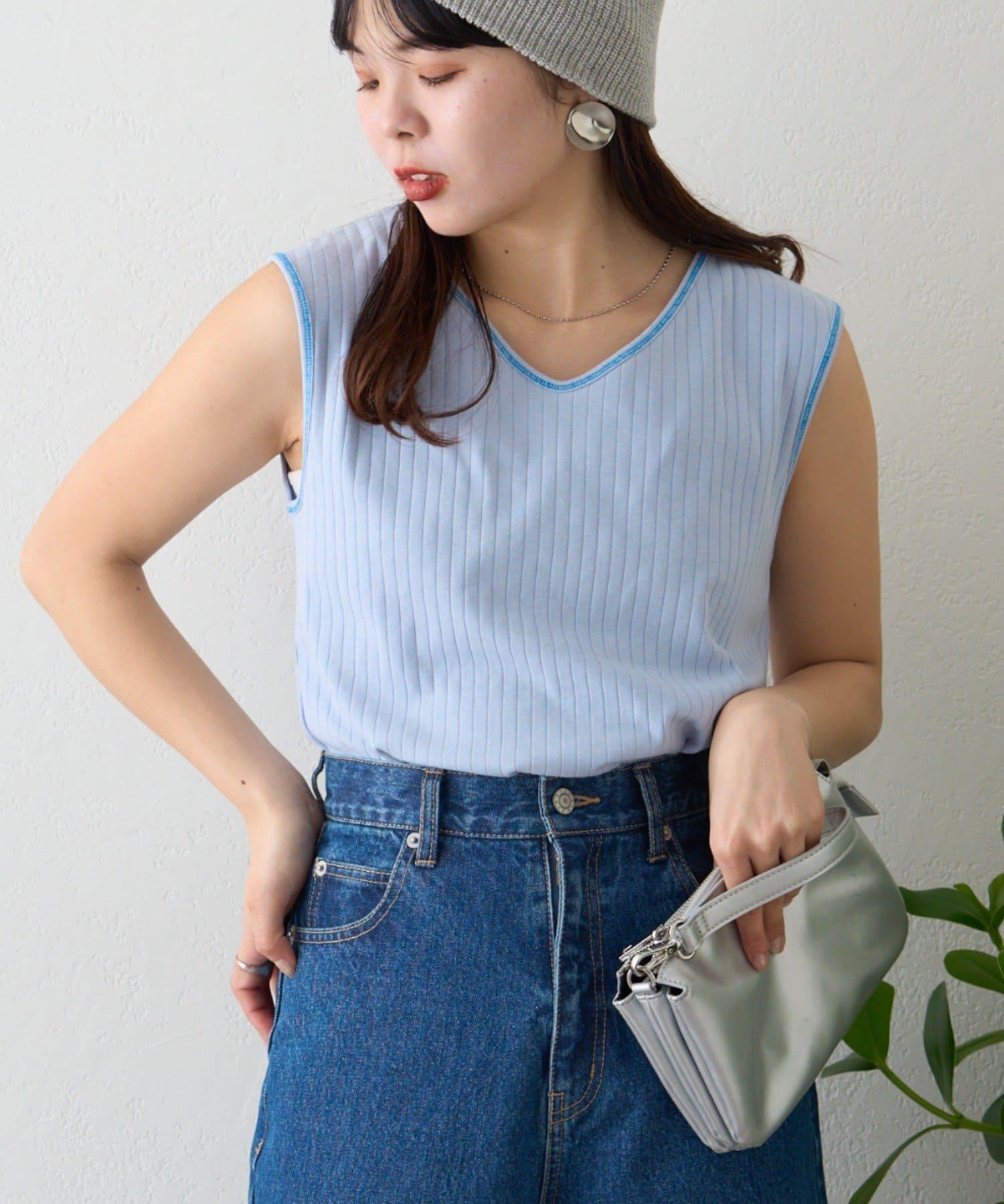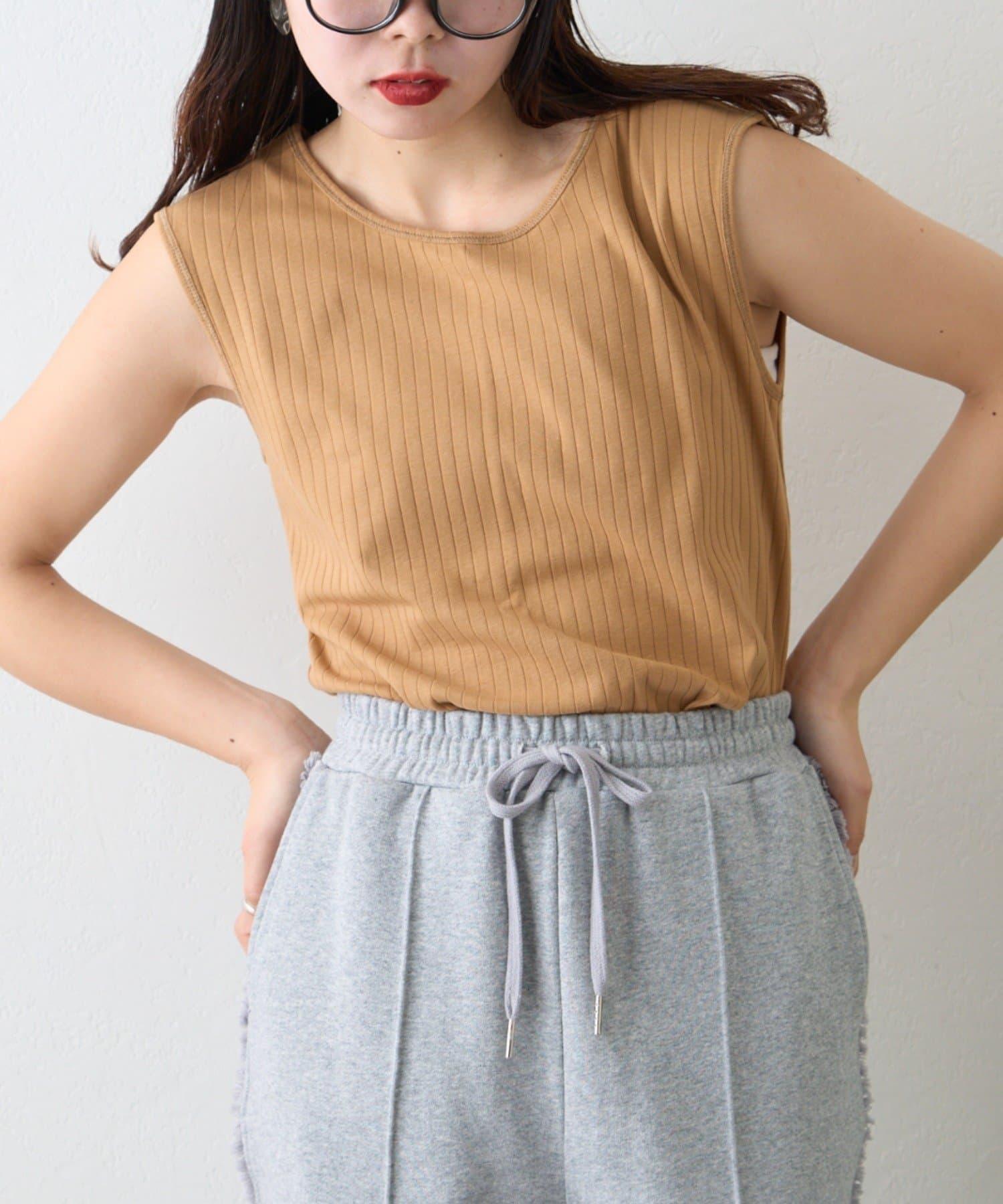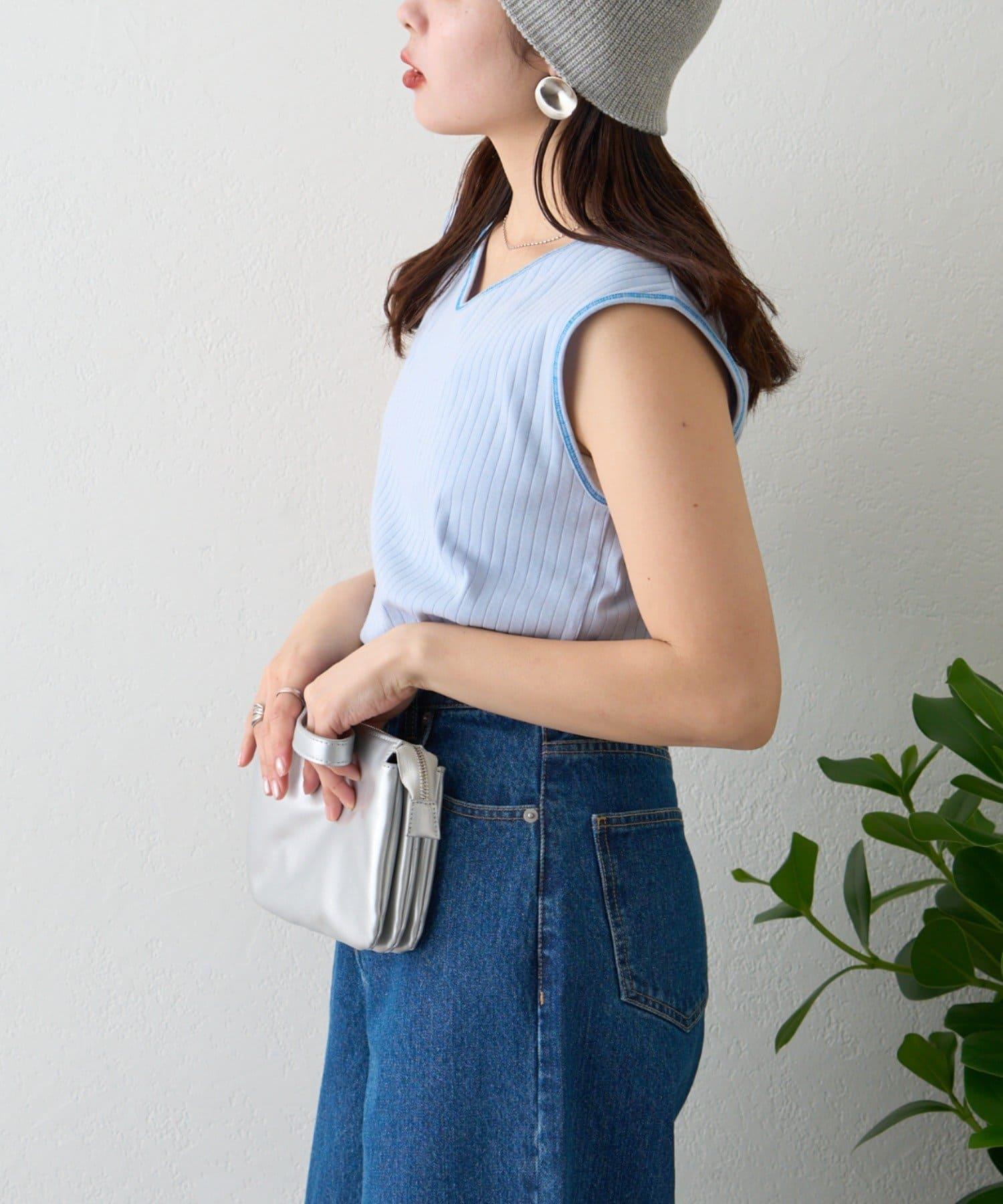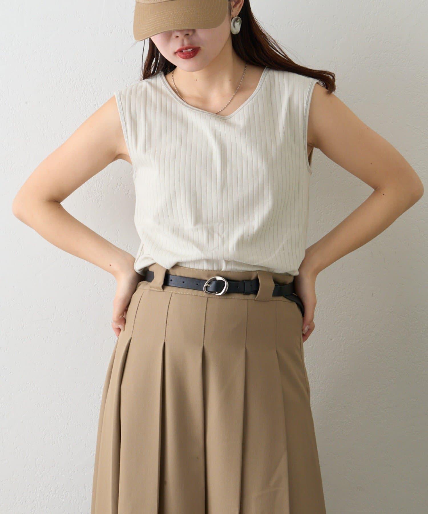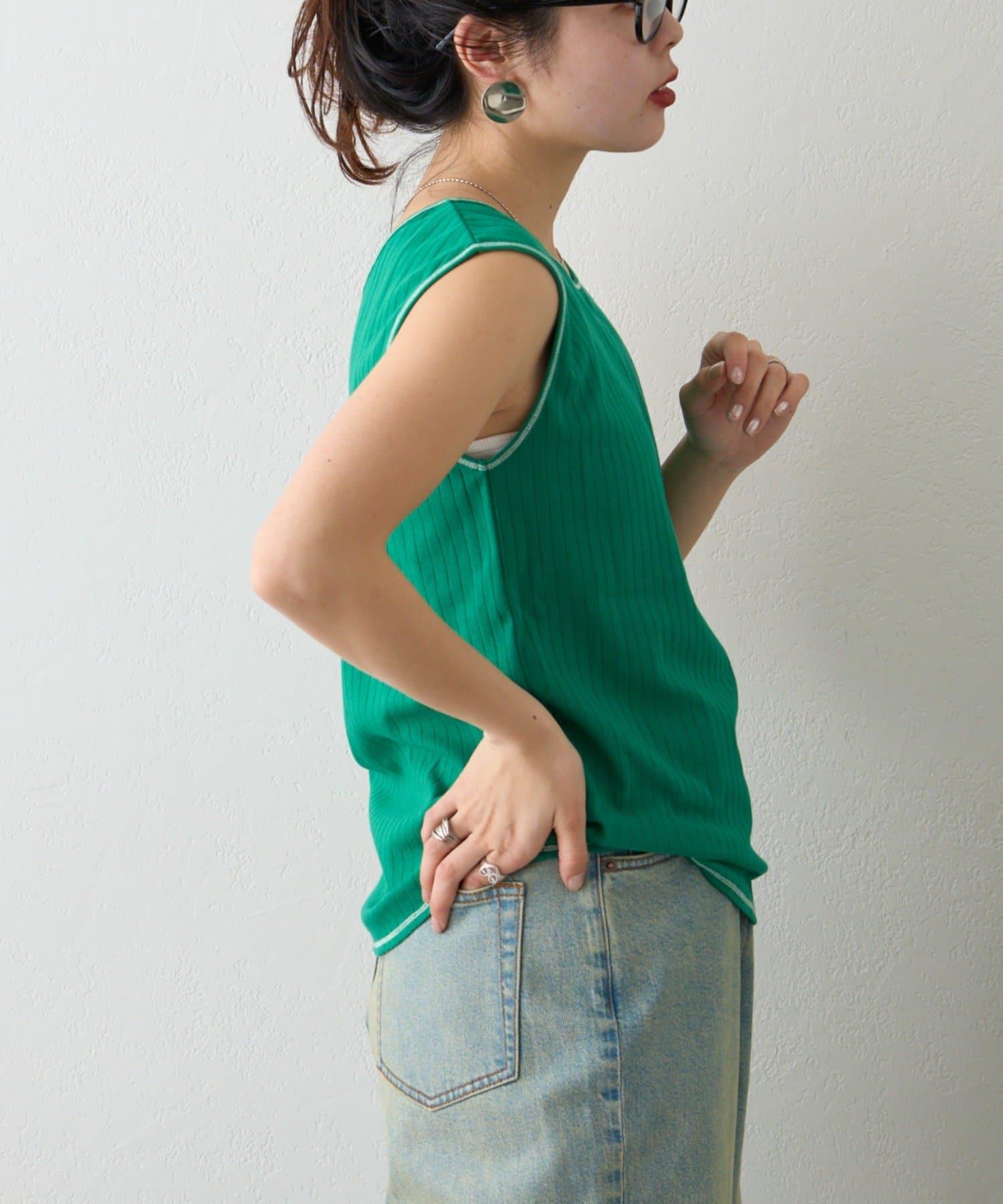 羅紋面料與身體完美貼合,強調垂直線條,打造簡潔輪廓。