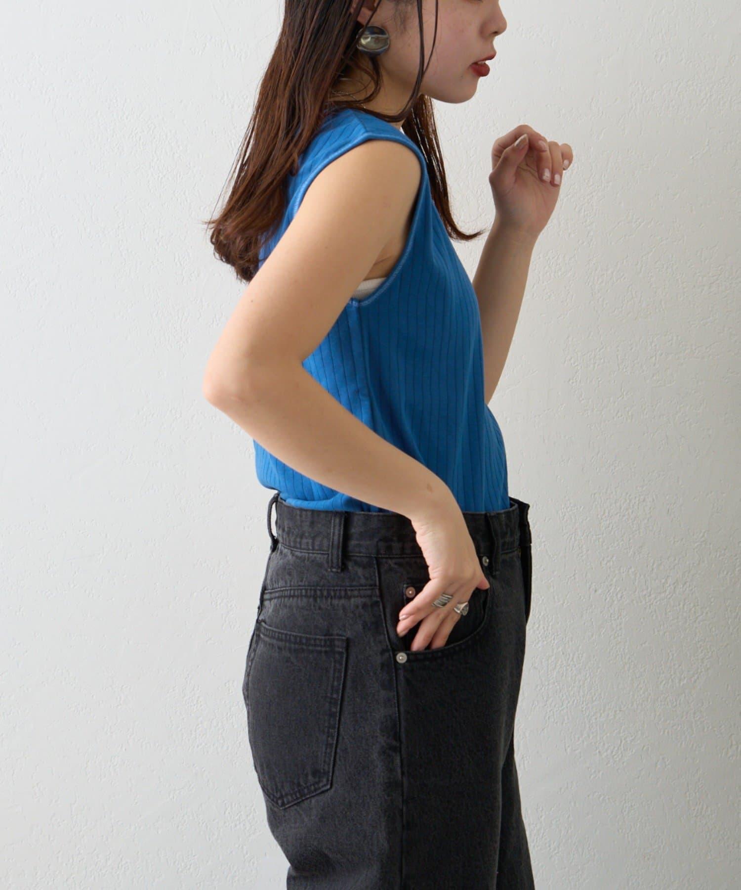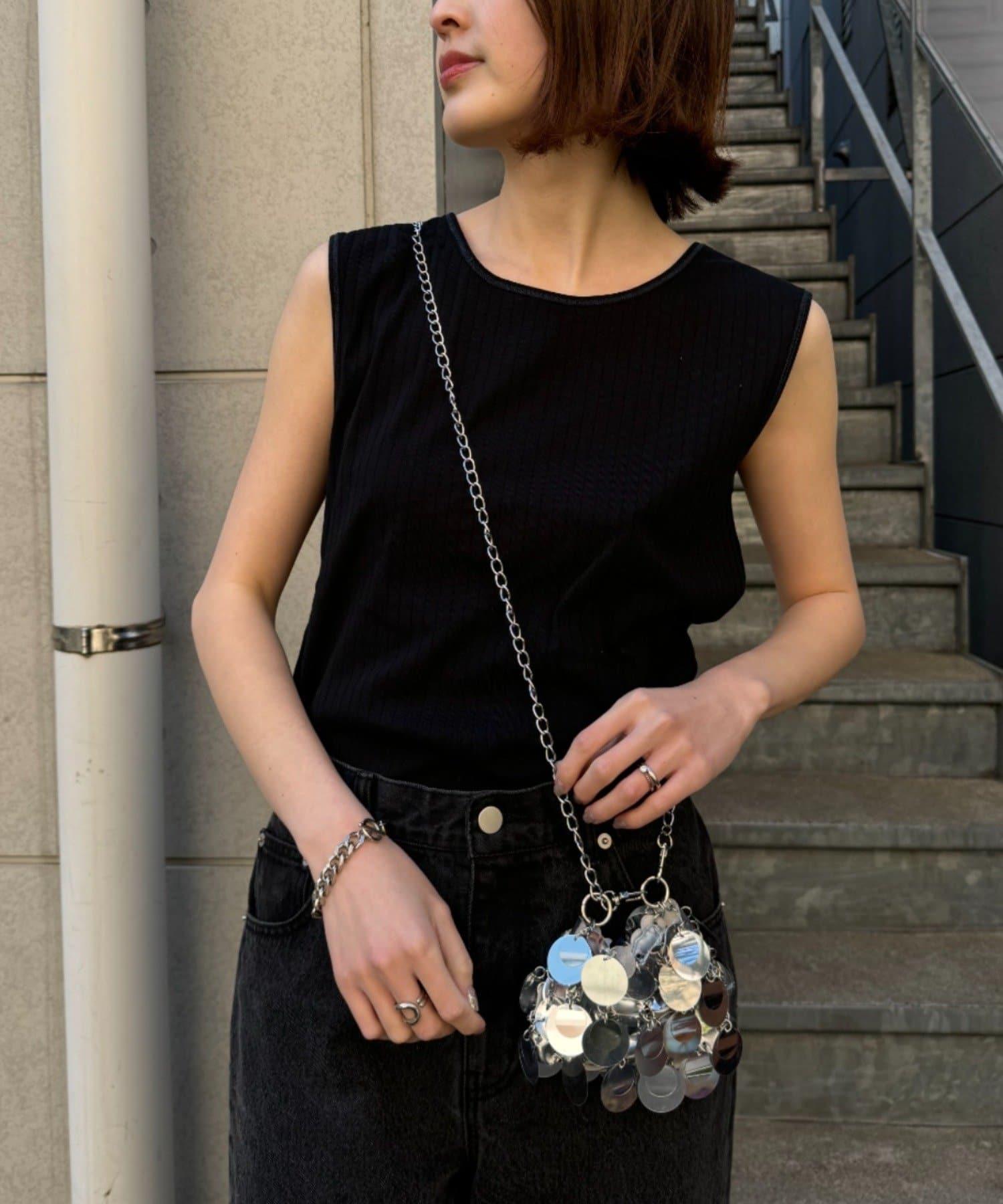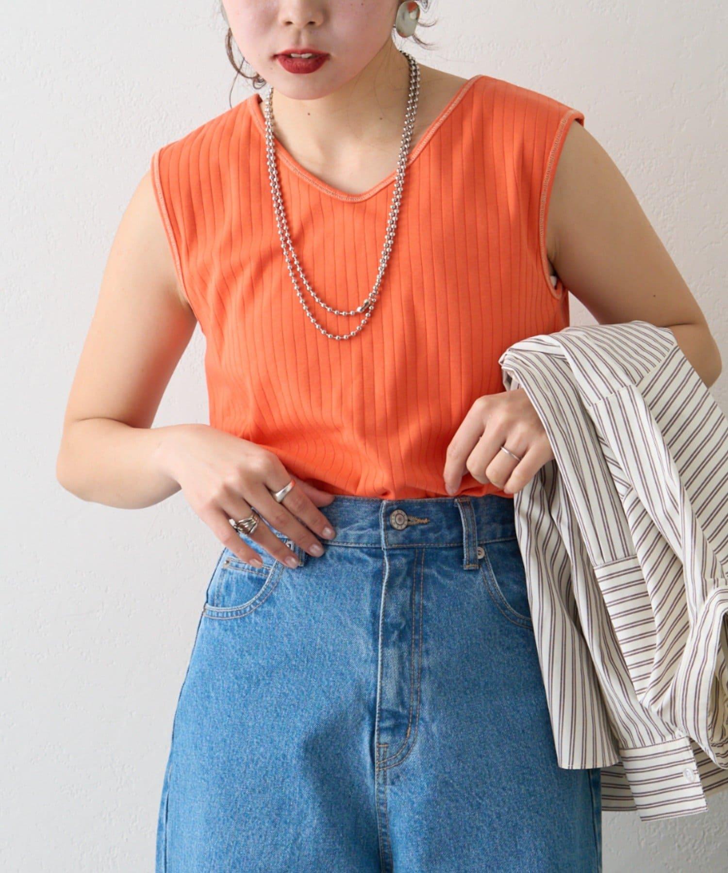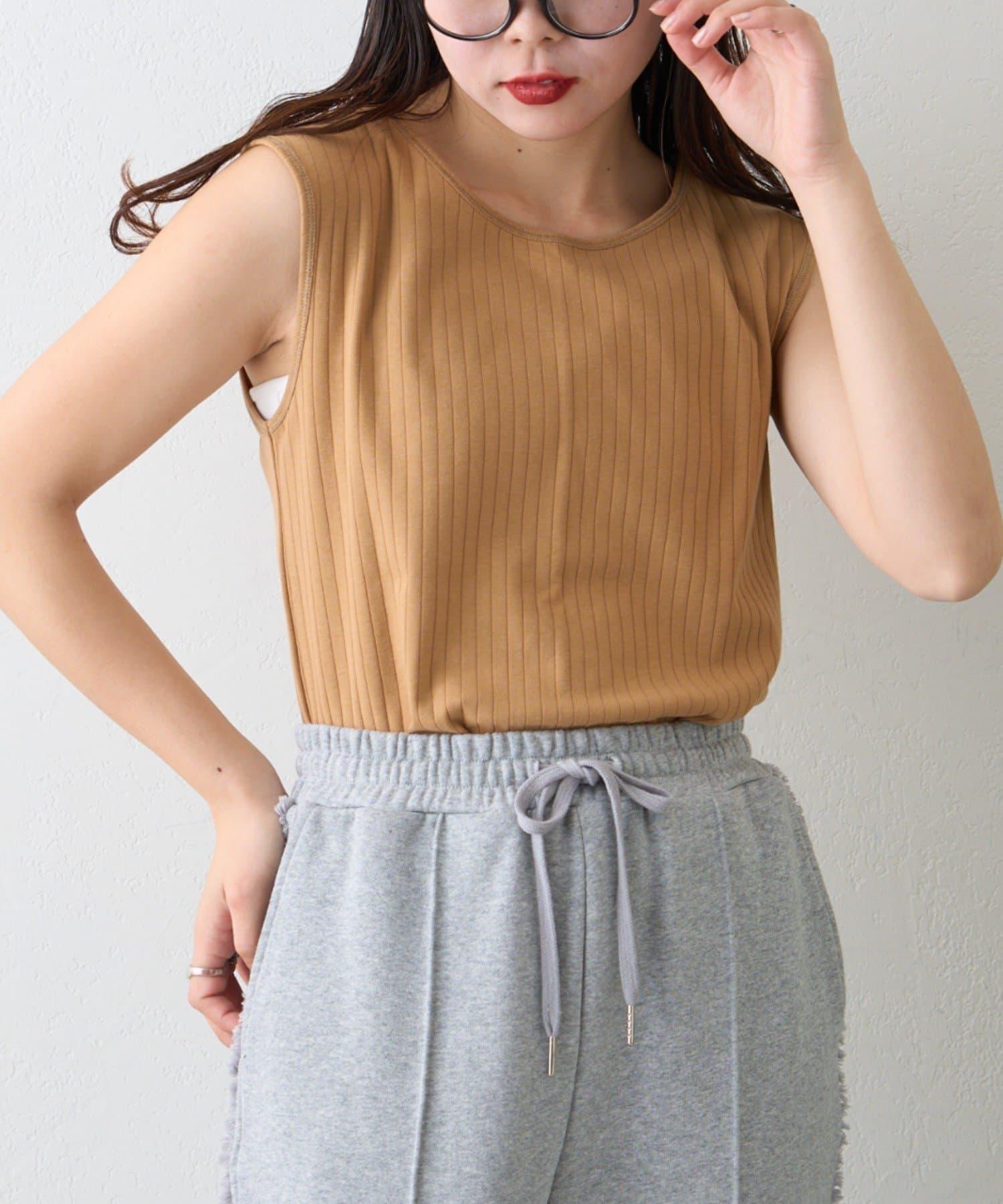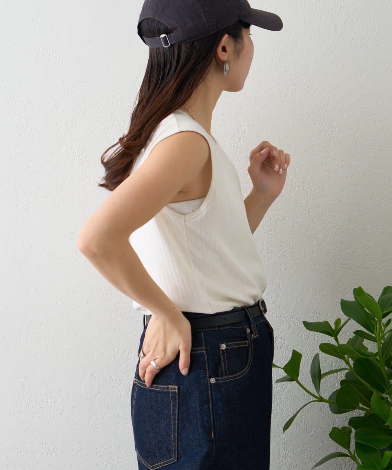 羅紋面料與身體完美貼合,強調垂直線條,打造簡潔輪廓。