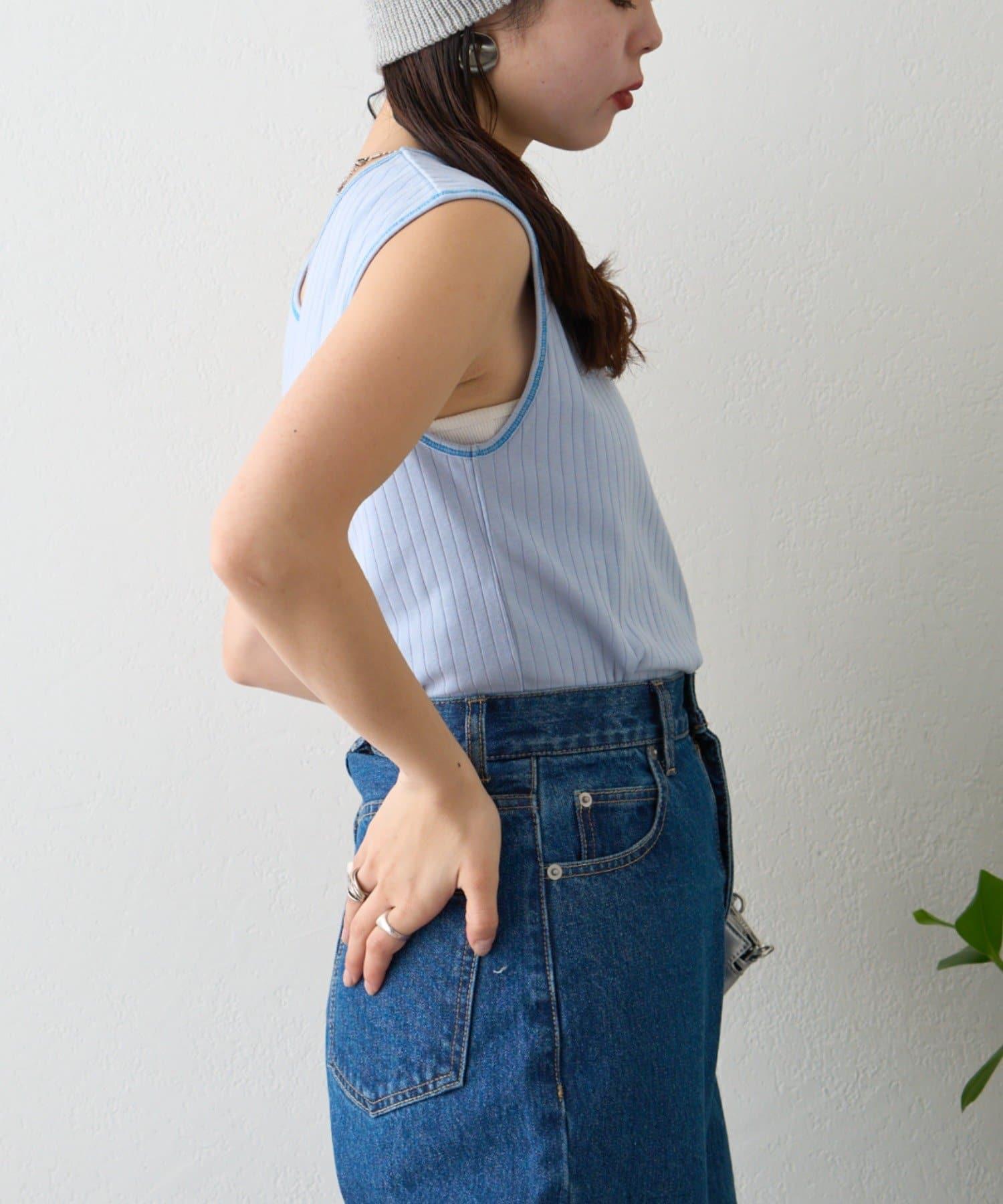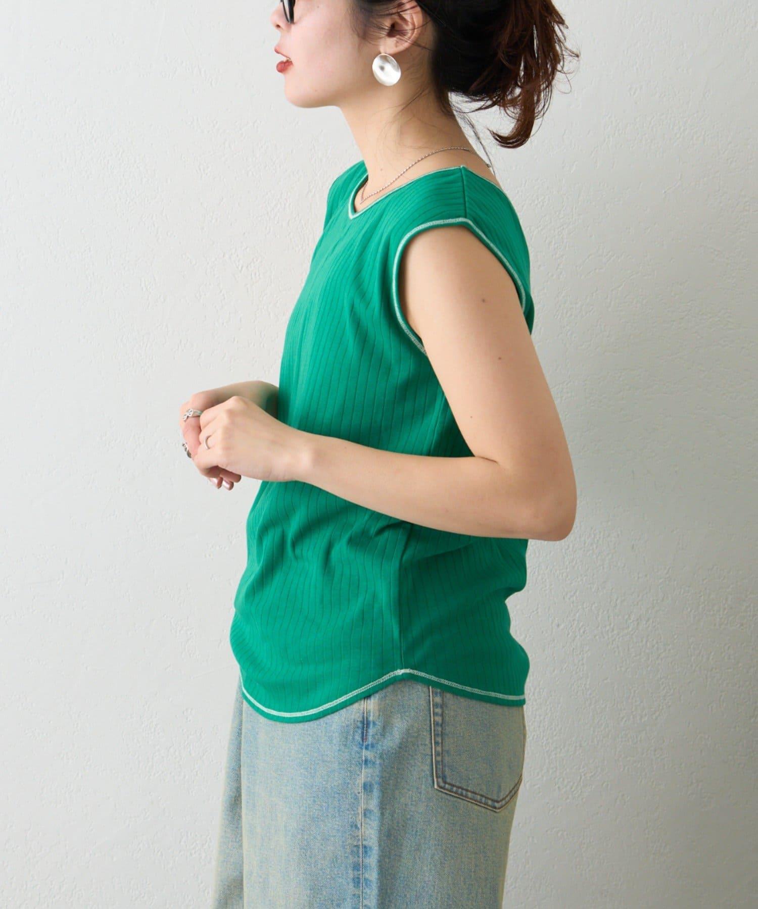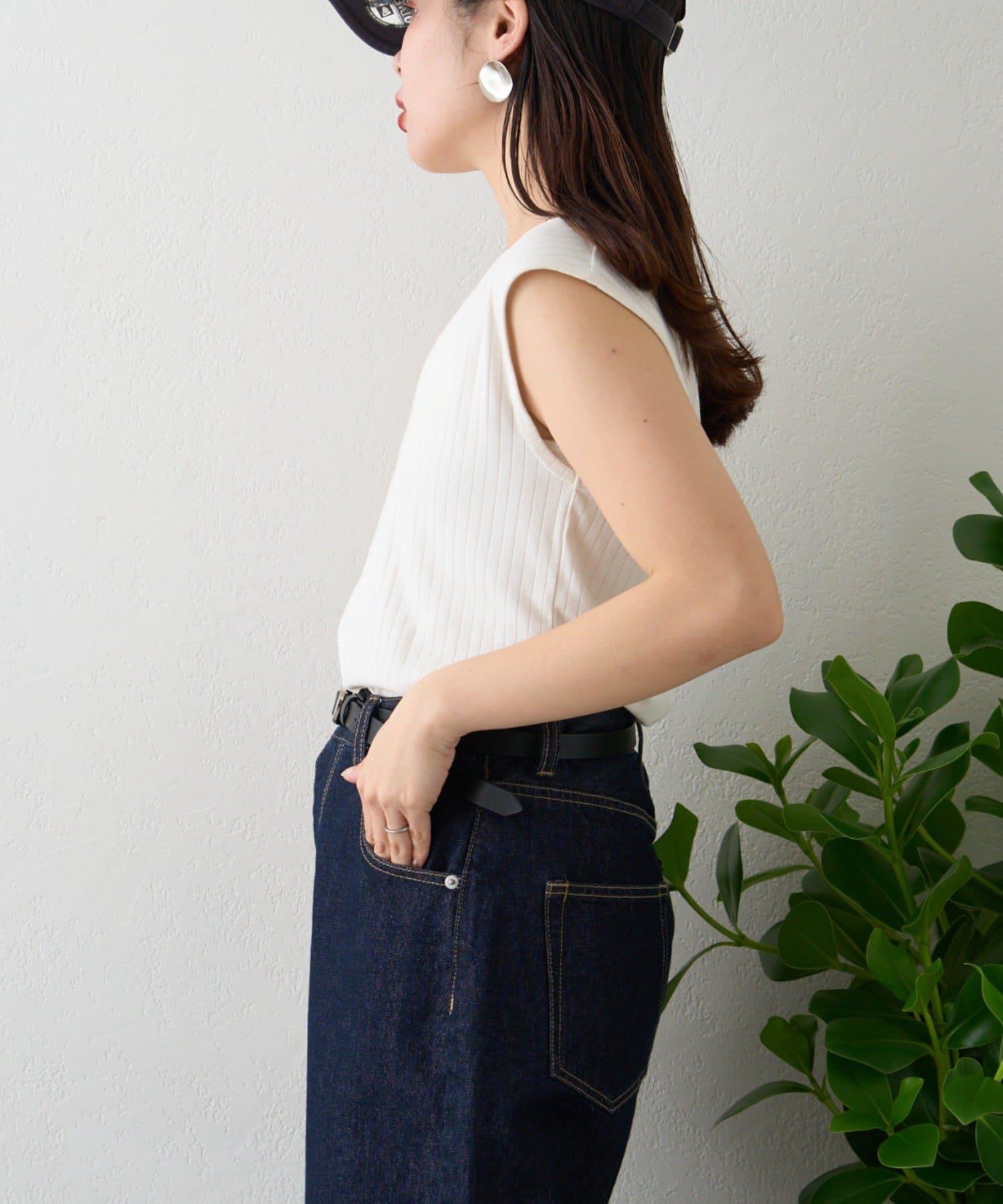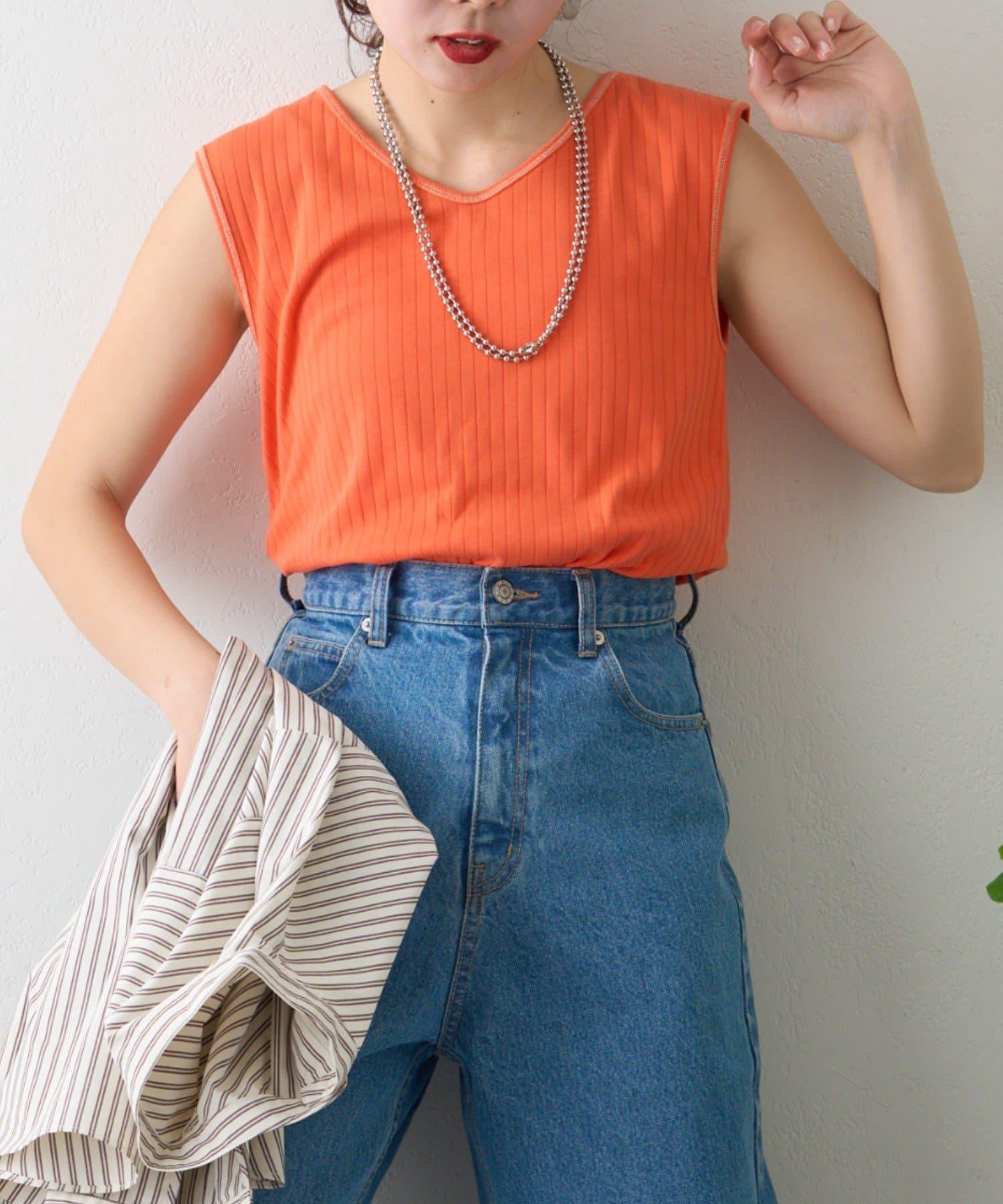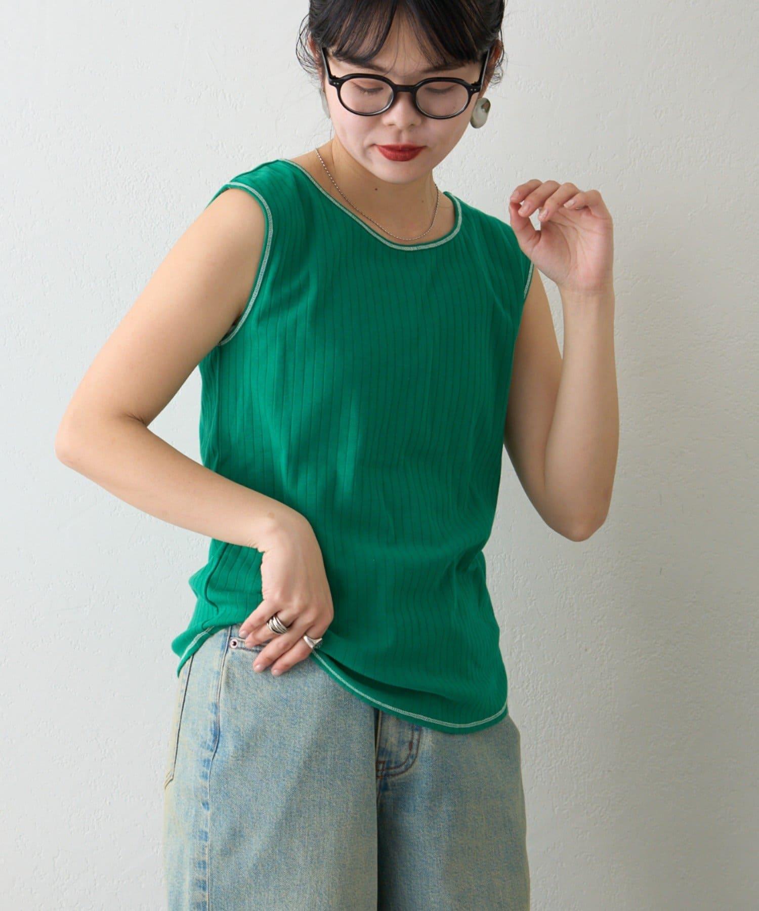 羅紋面料與身體完美貼合,強調垂直線條,打造簡潔輪廓。