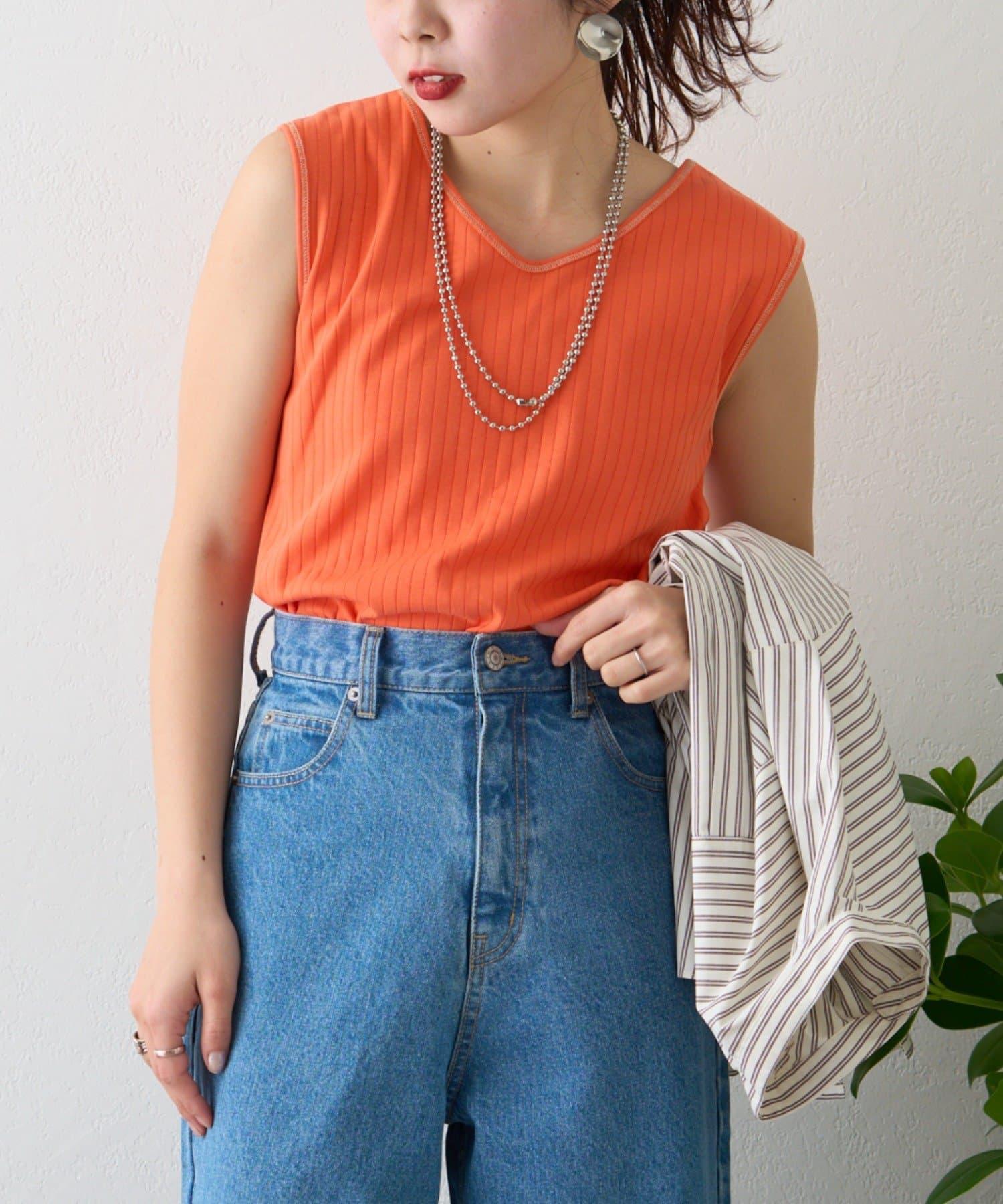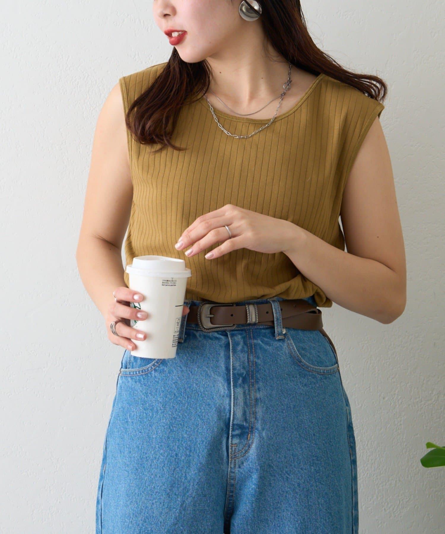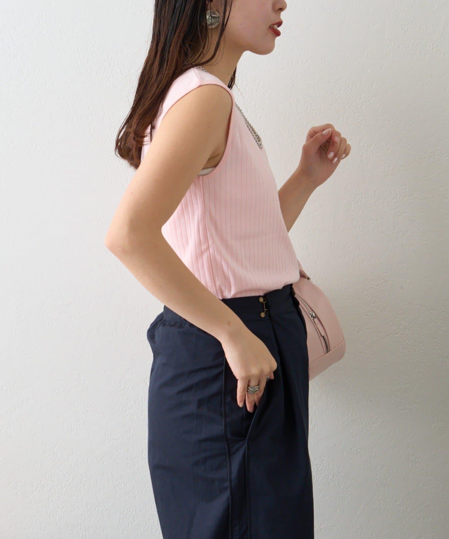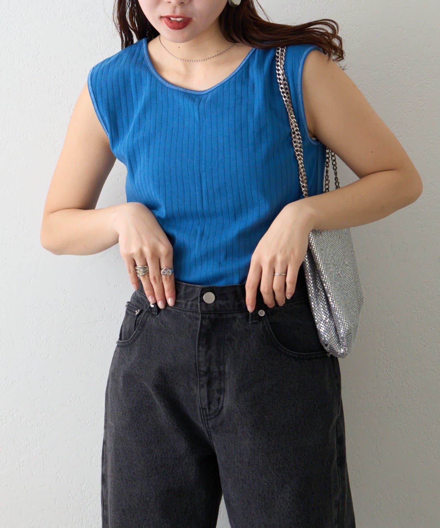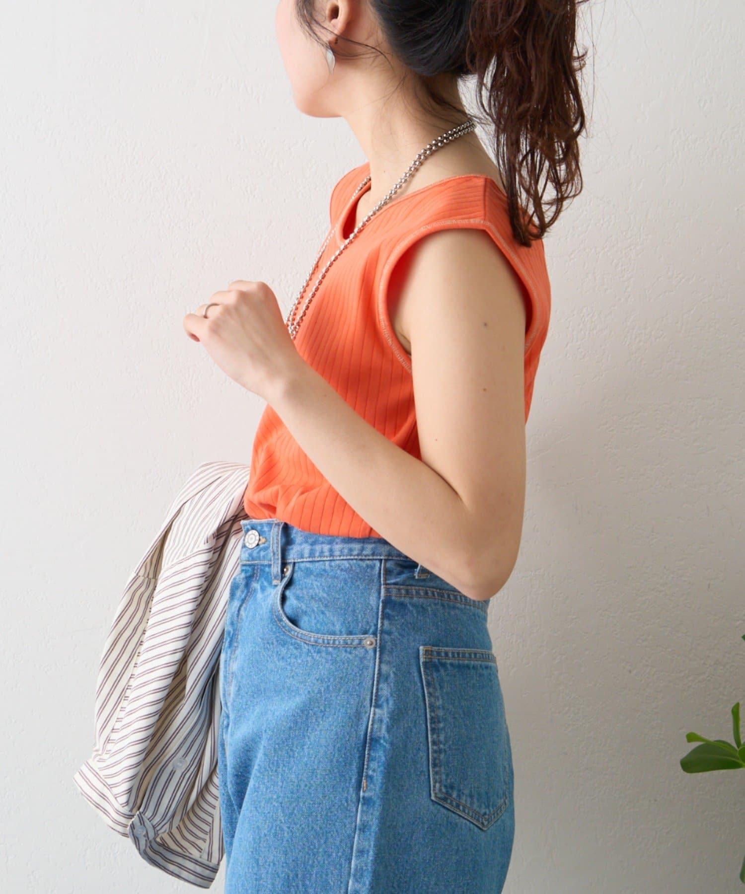 羅紋面料與身體完美貼合,強調垂直線條,打造簡潔輪廓。