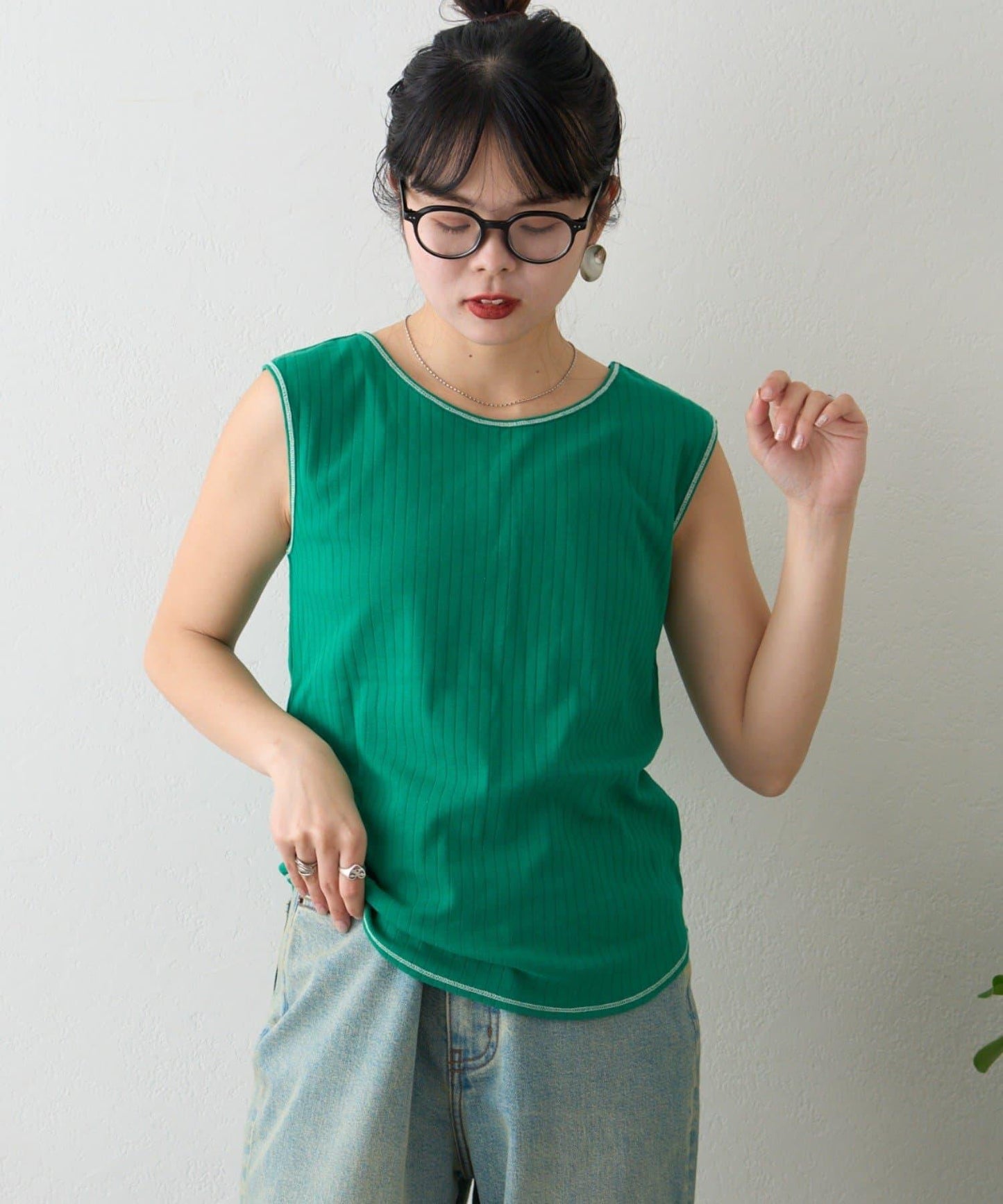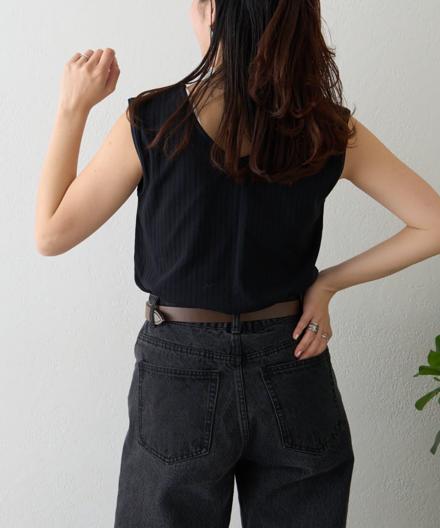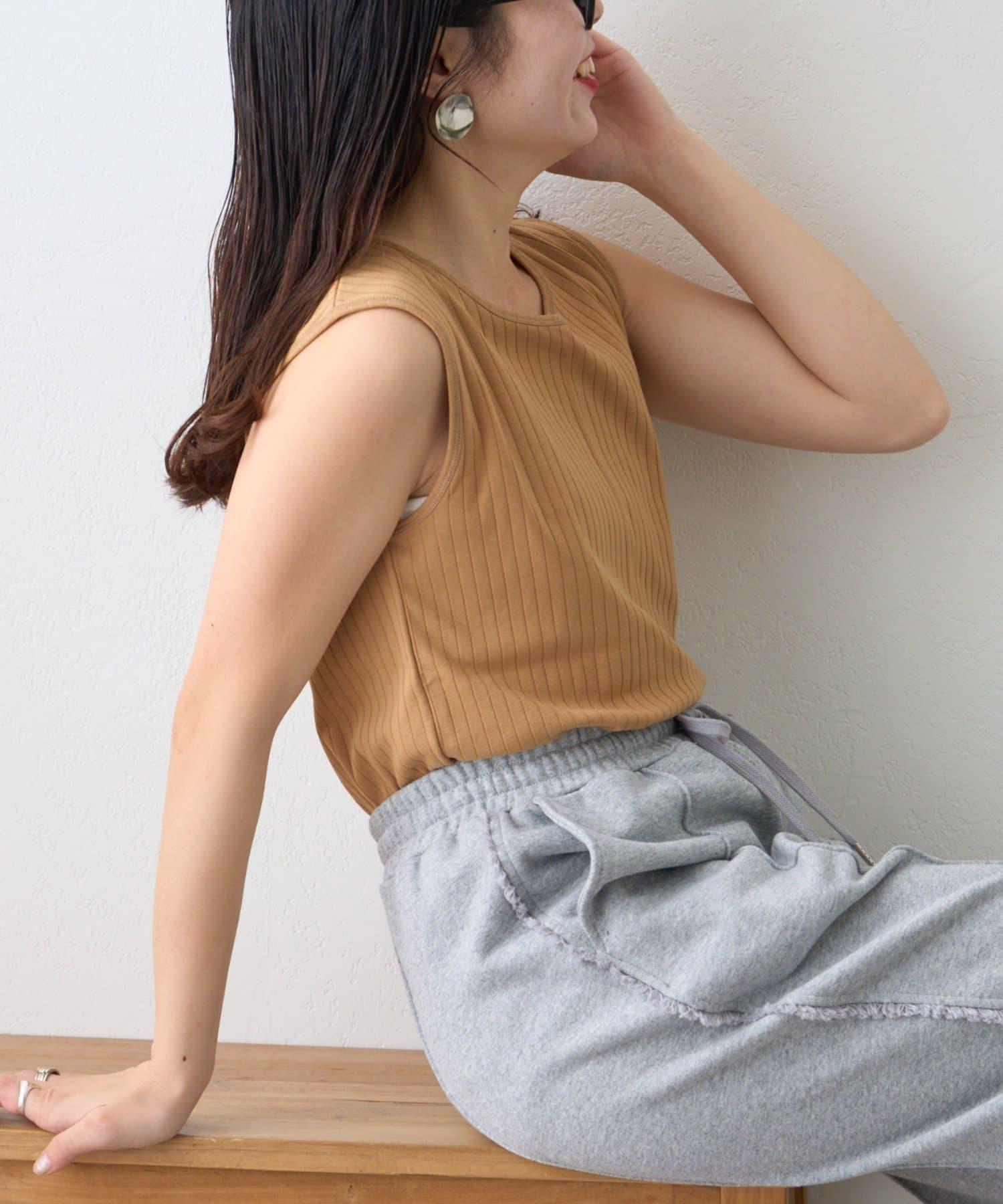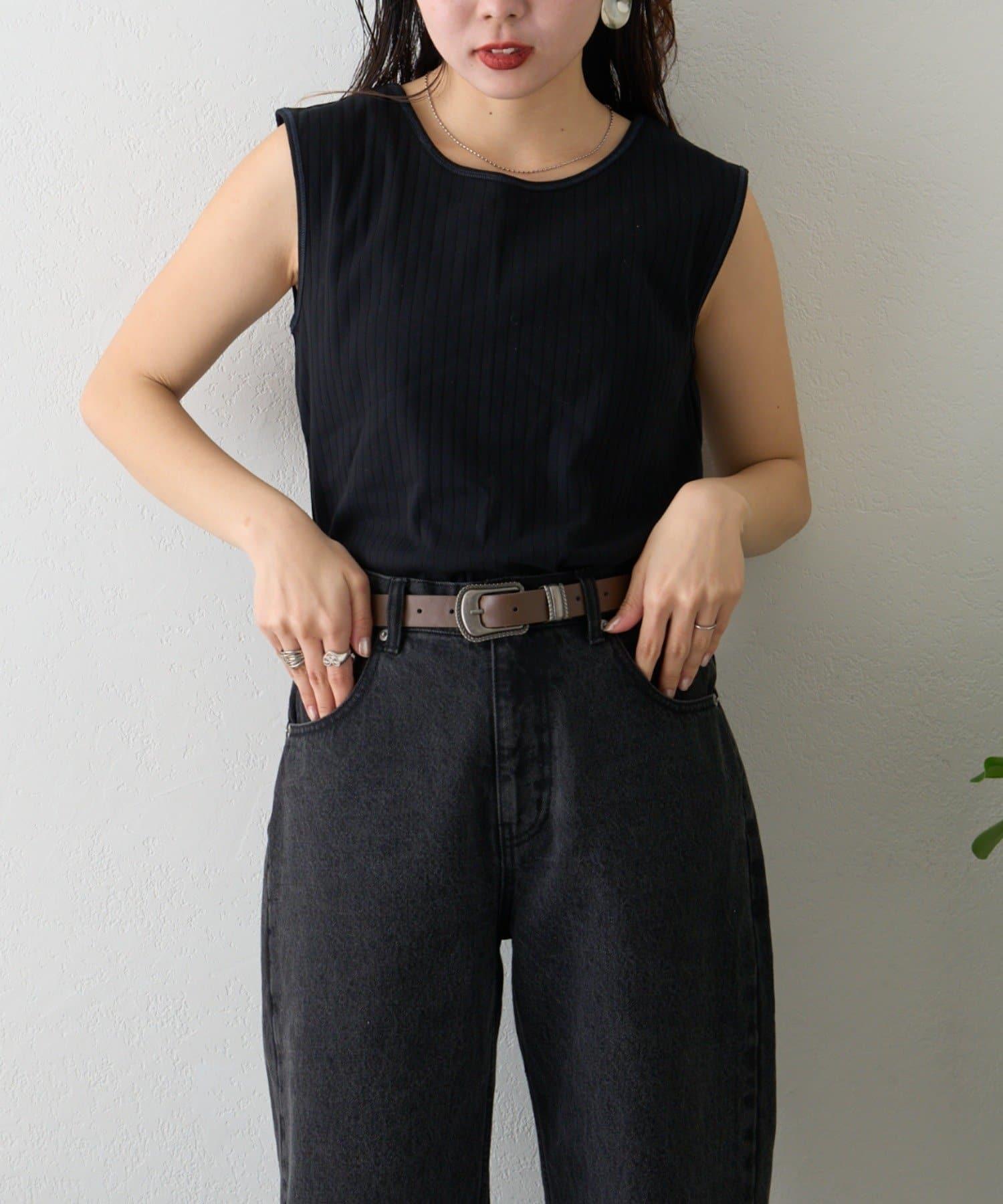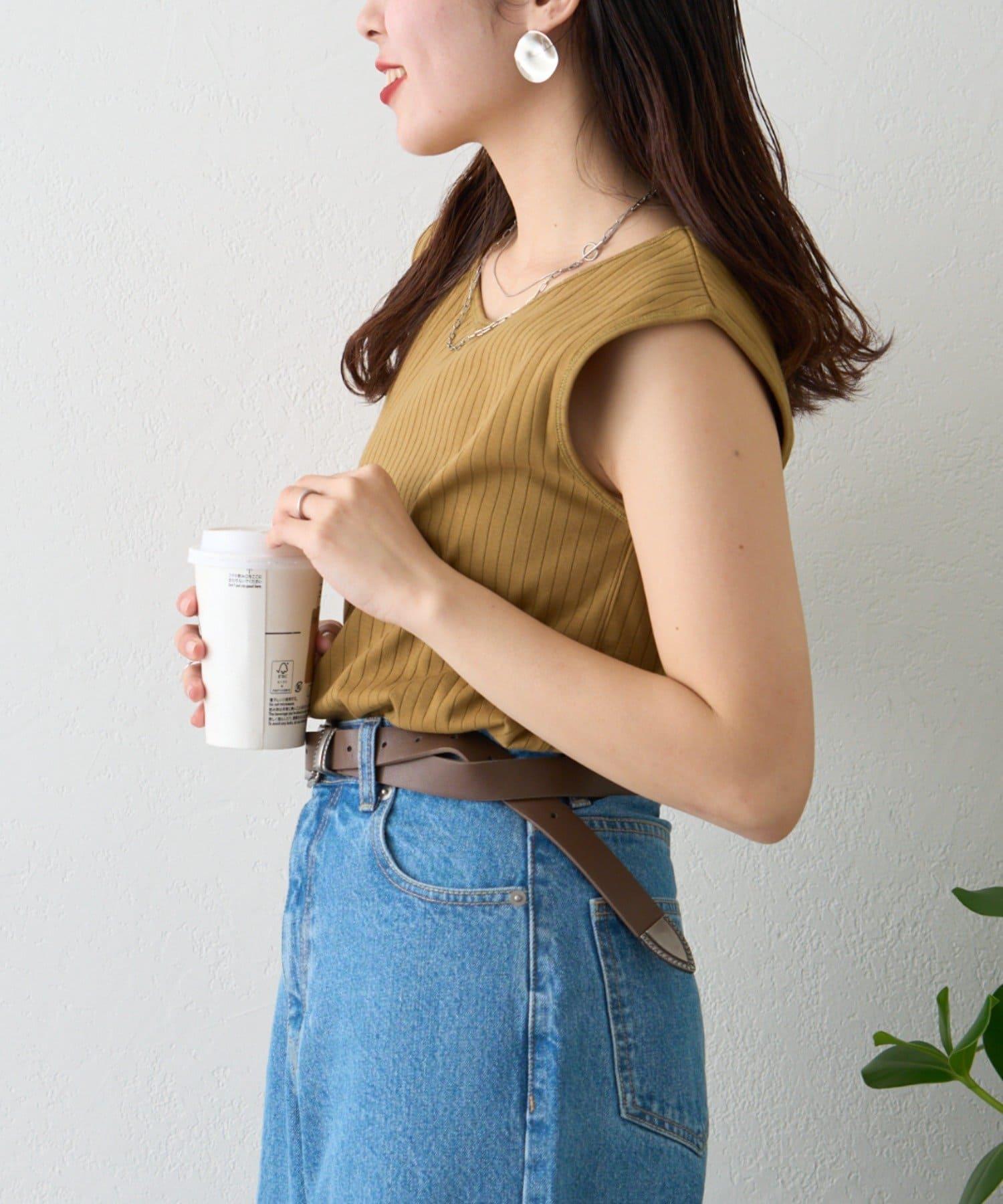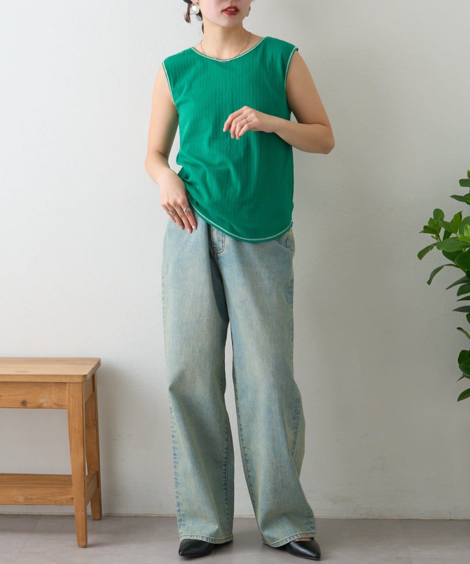 羅紋面料與身體完美貼合,強調垂直線條,打造簡潔輪廓。