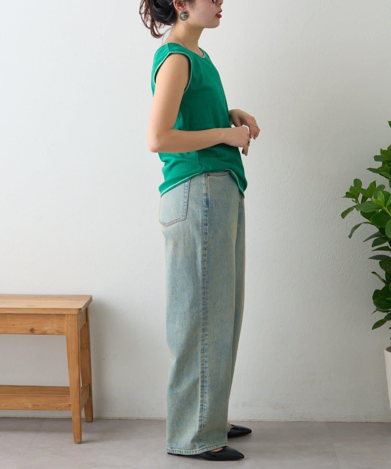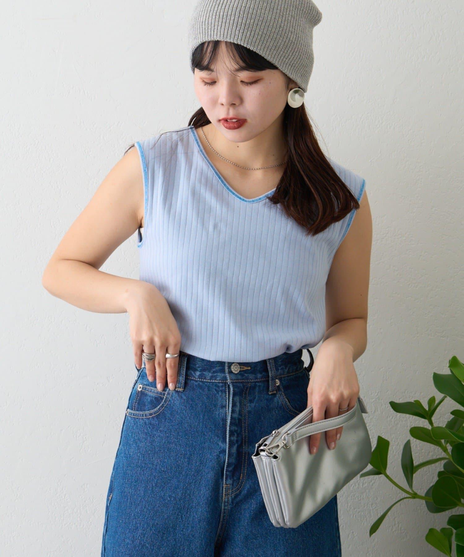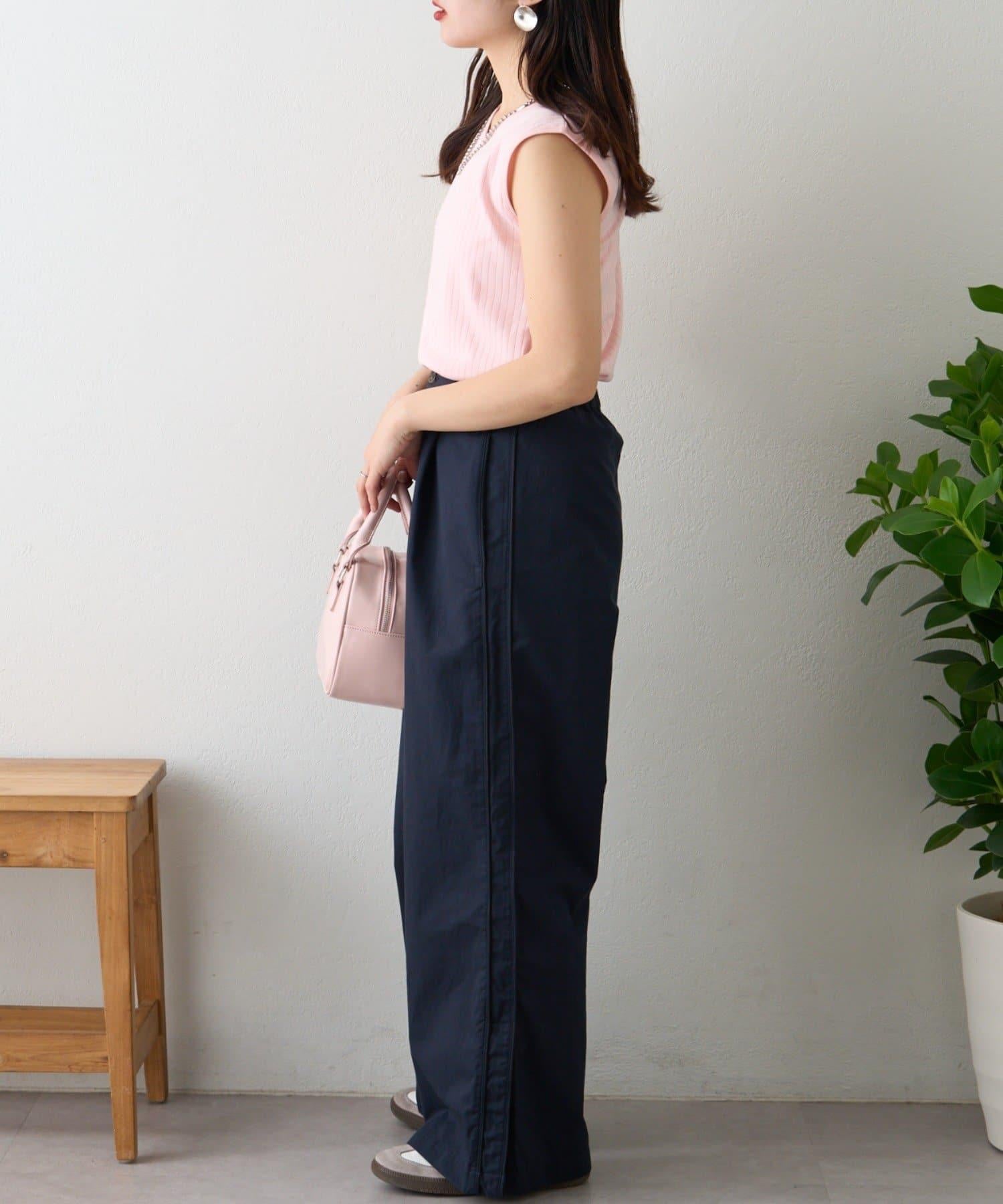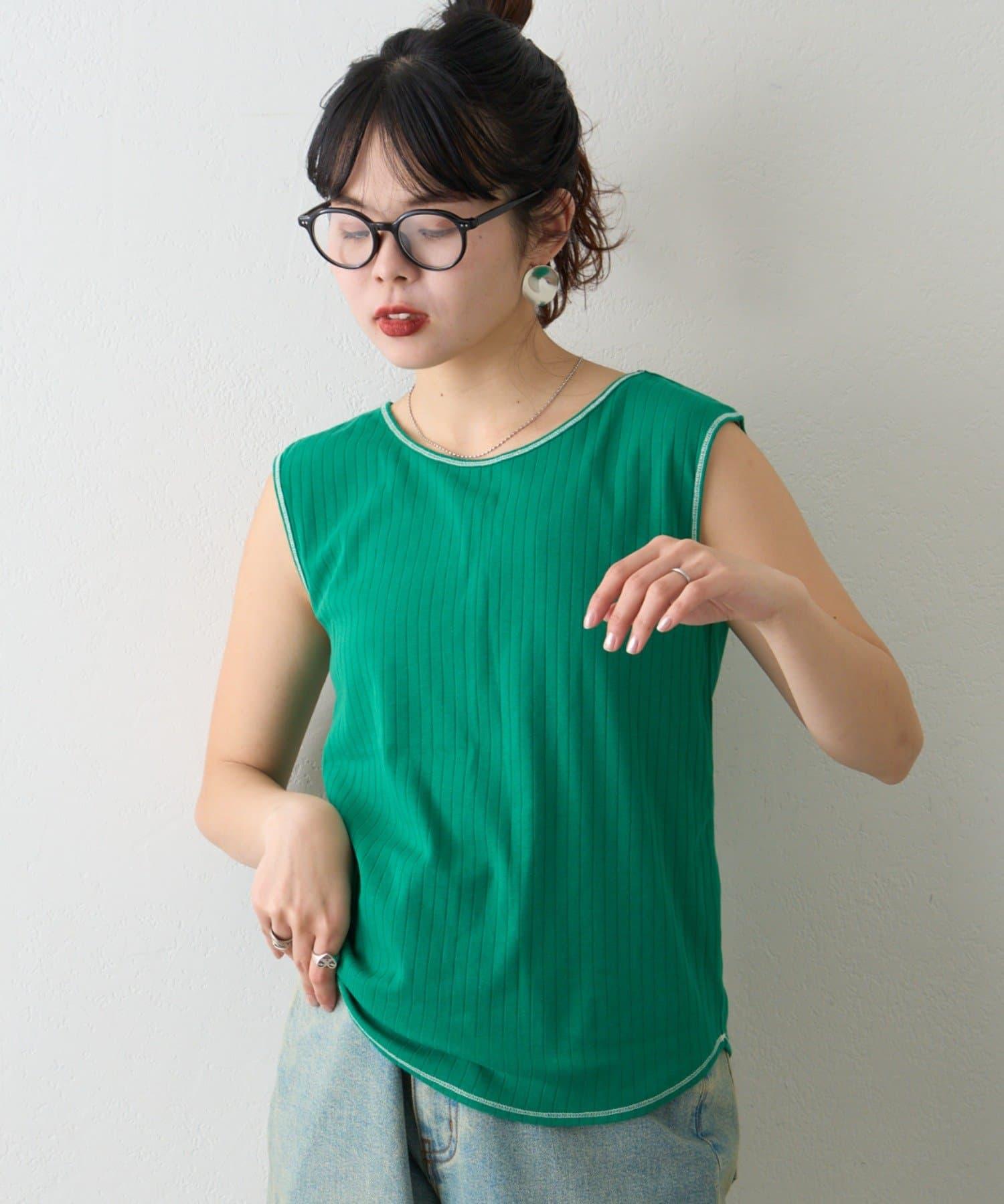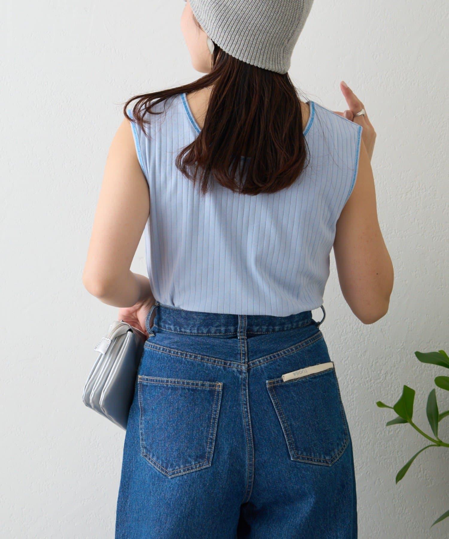 羅紋面料與身體完美貼合,強調垂直線條,打造簡潔輪廓。