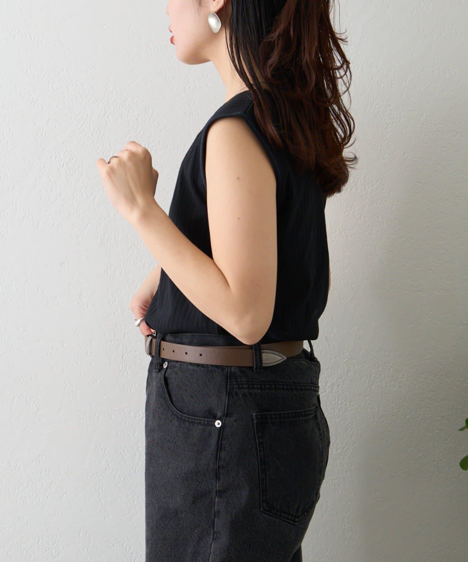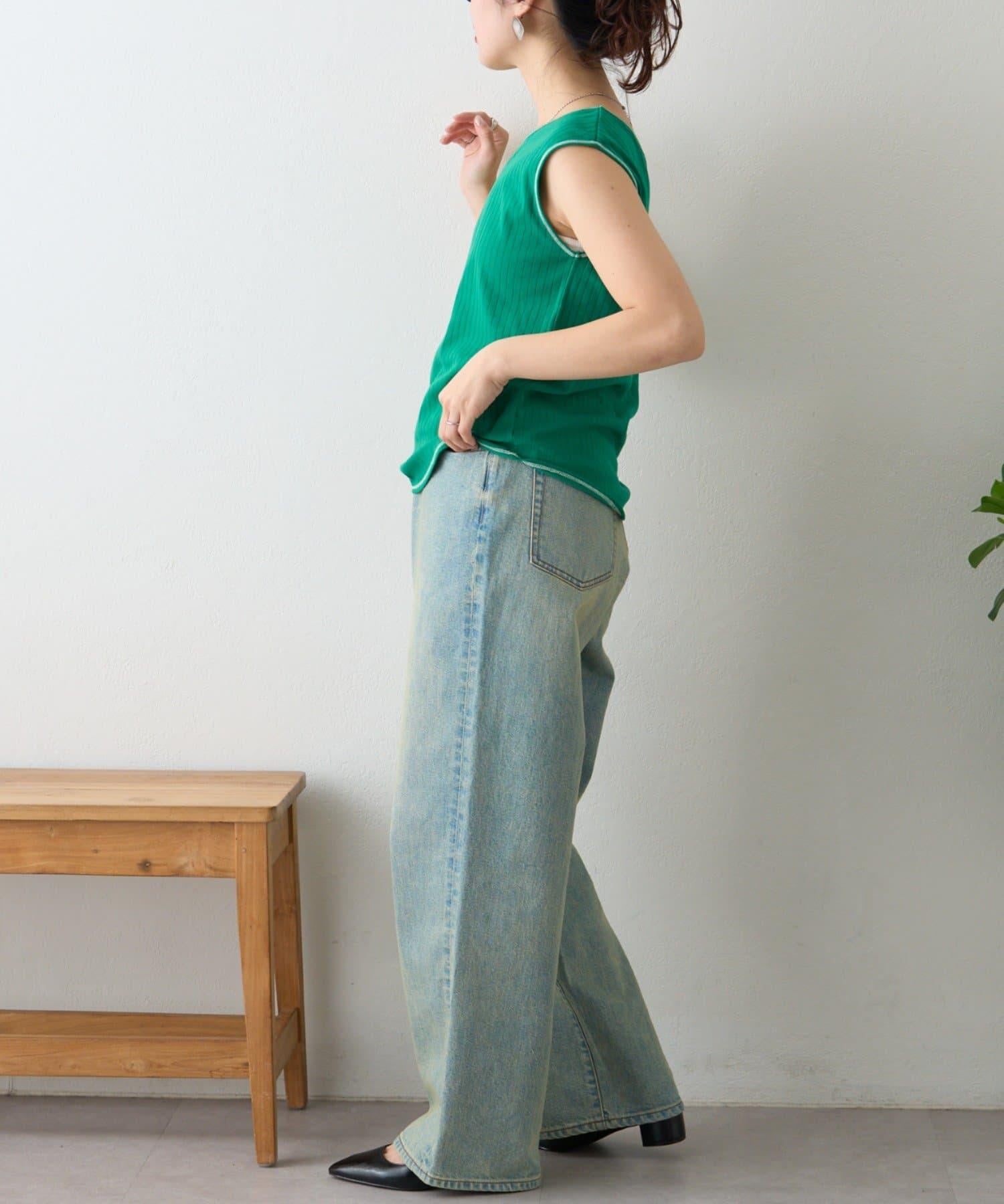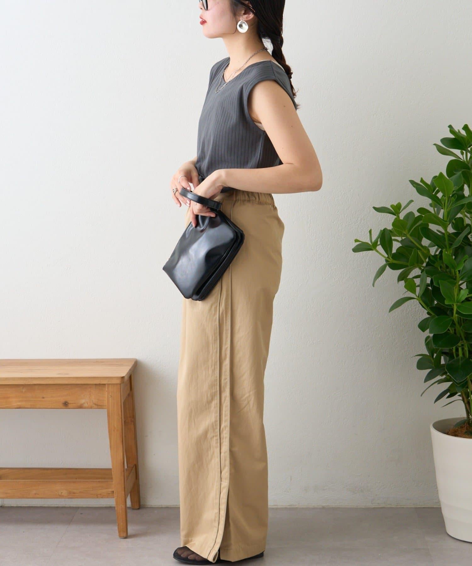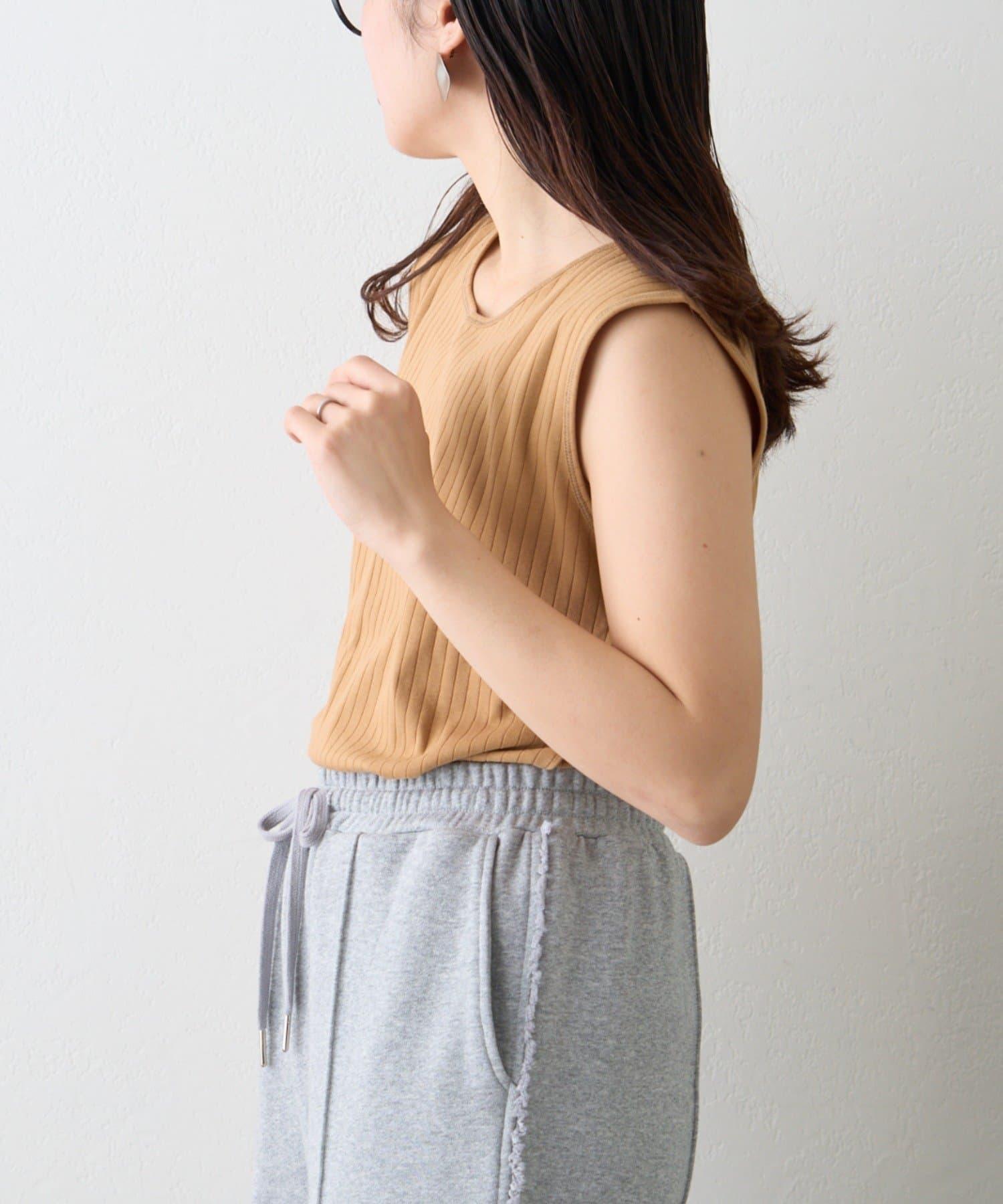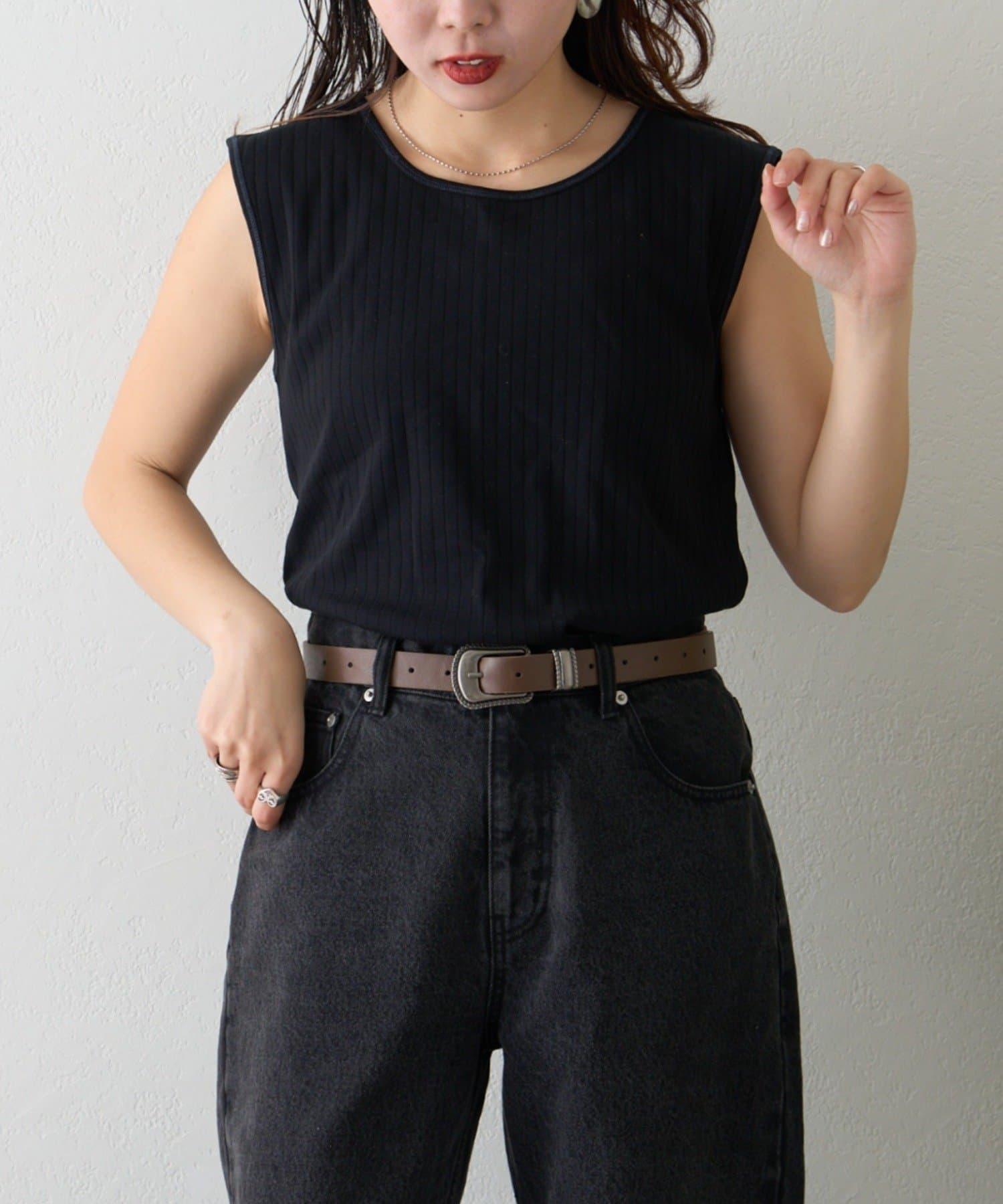 羅紋面料與身體完美貼合,強調垂直線條,打造簡潔輪廓。