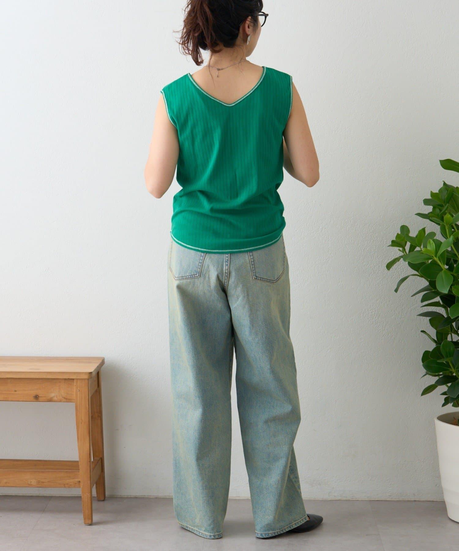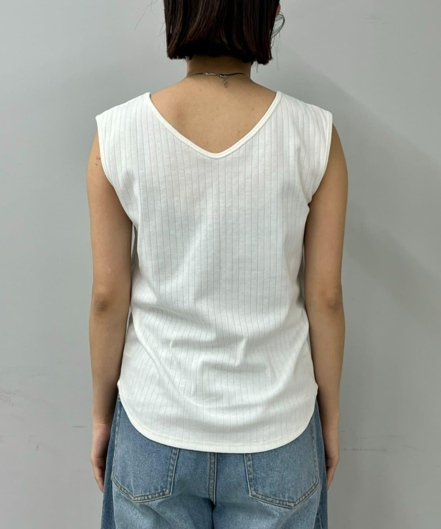 這款方便的背心有兩種穿法:前後 V 領或圓領。