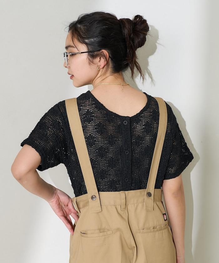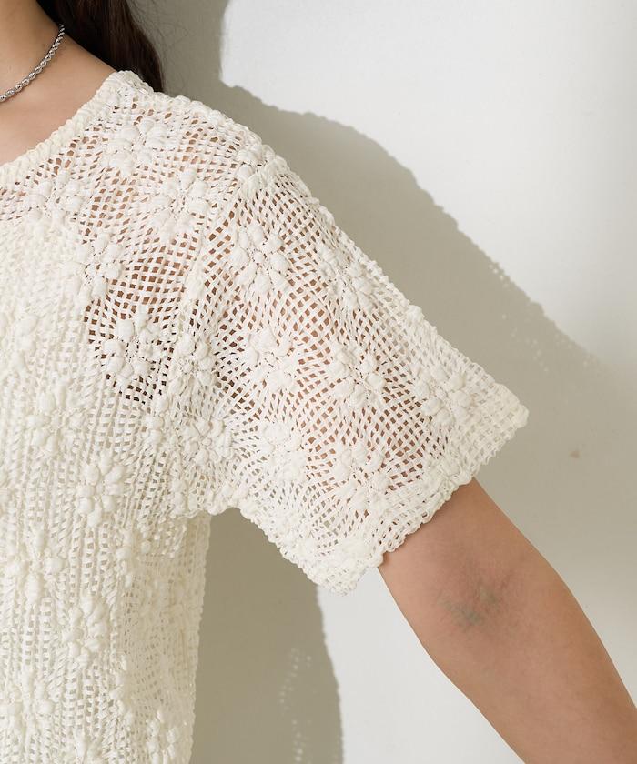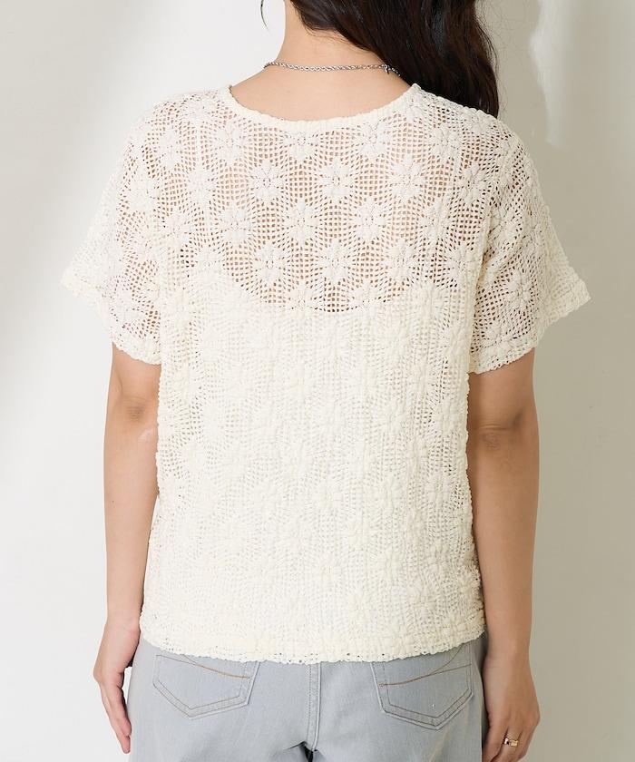 花朵網眼上衣,可根據心情變換不同的穿法。