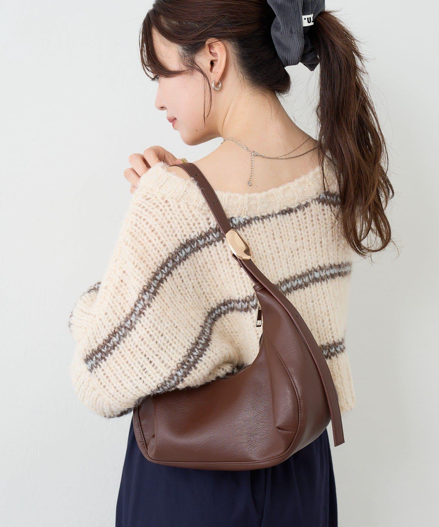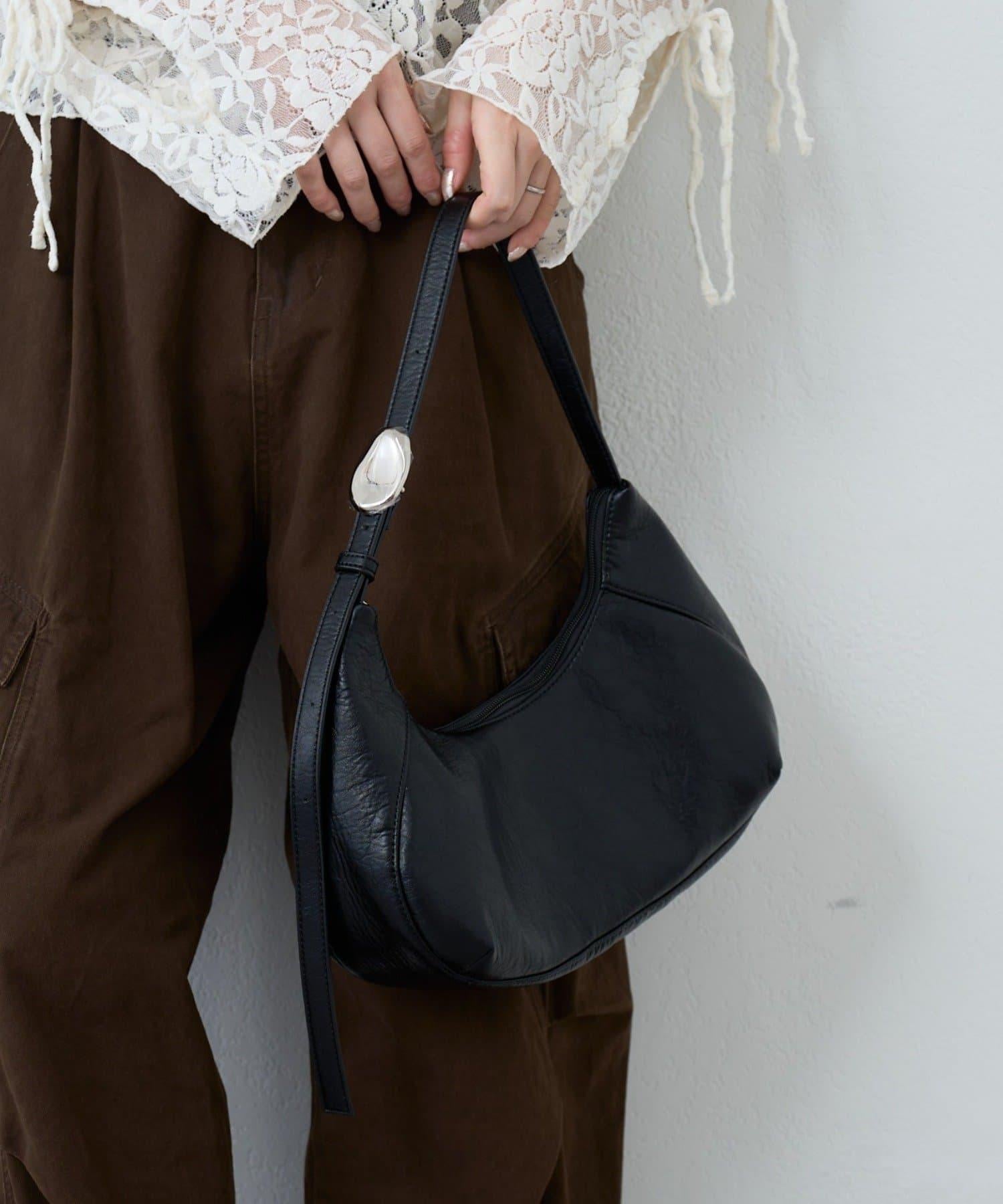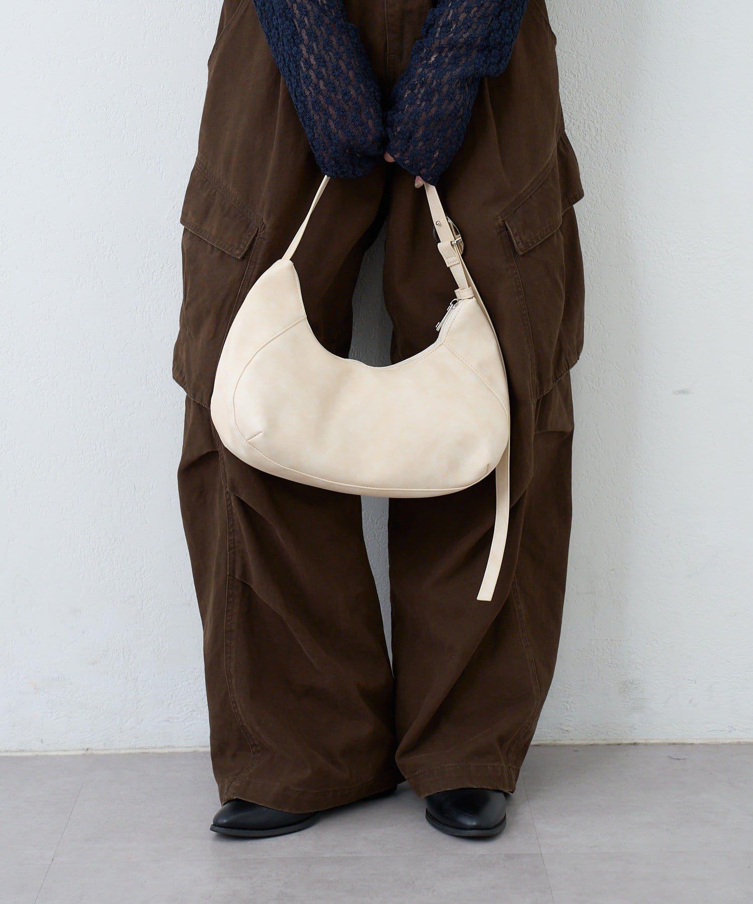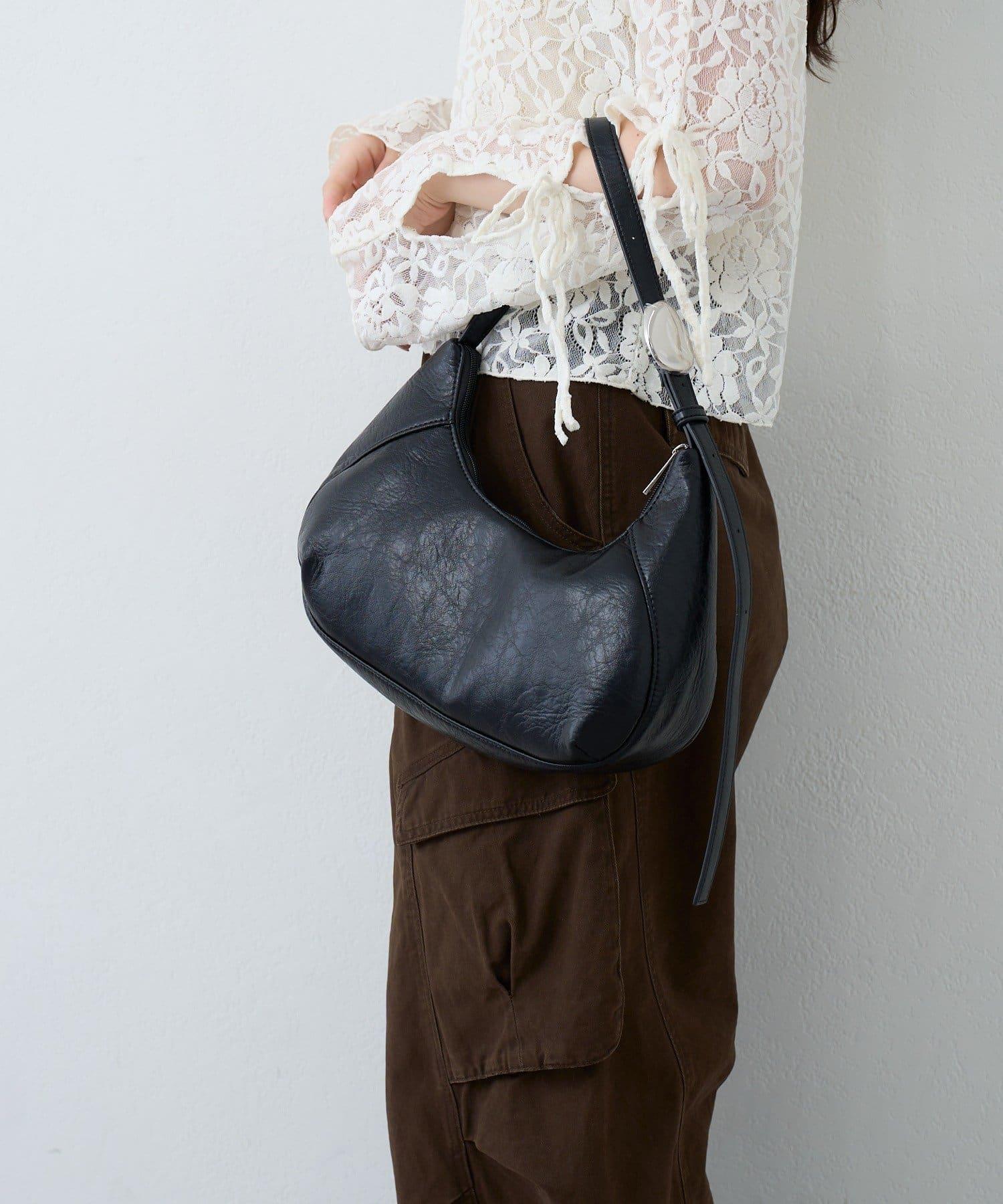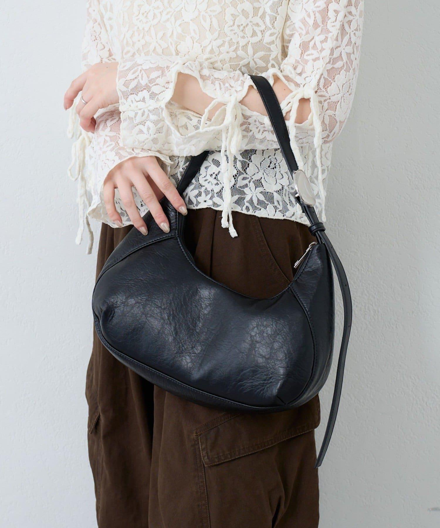 【2WAY/可收納500ml塑料瓶】半月造型單肩包