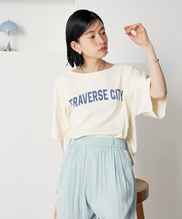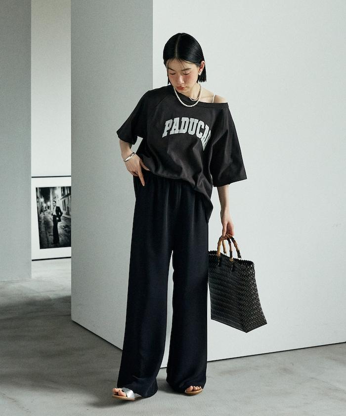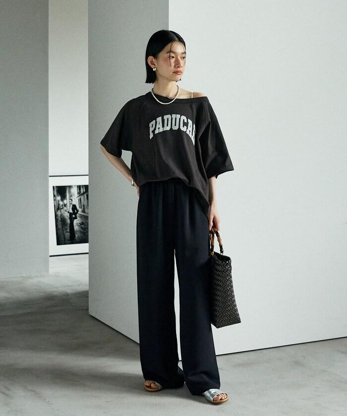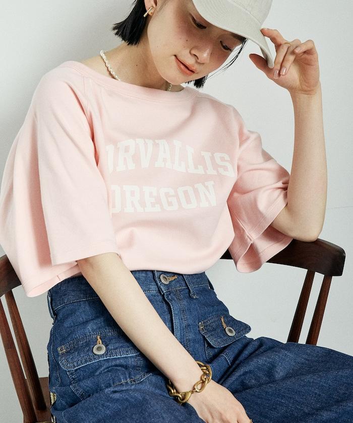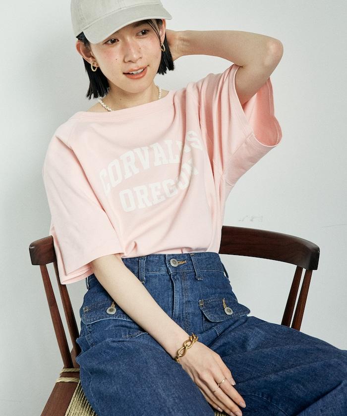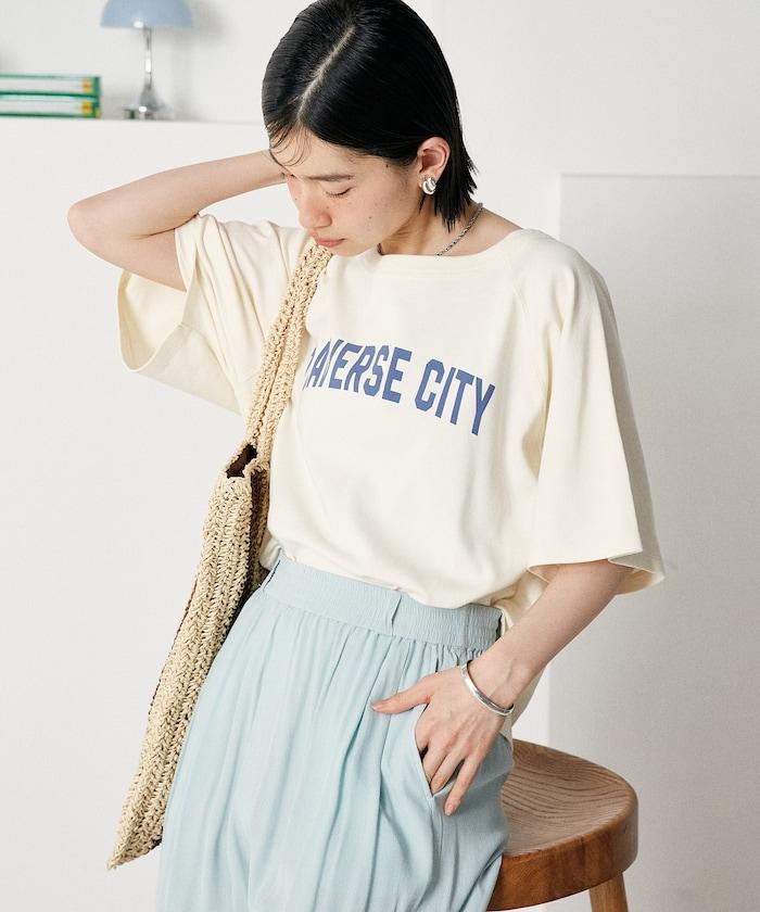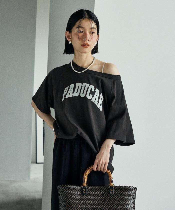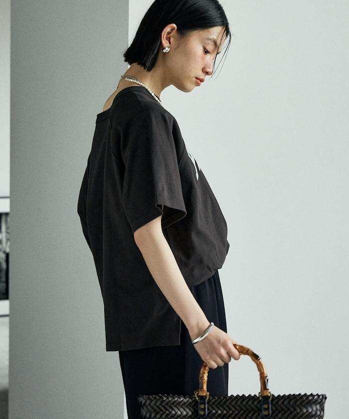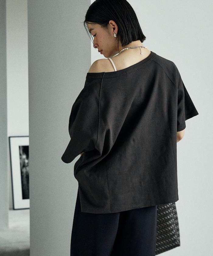 寬而女性化的領口設計,使這款 T 恤可以露肩穿著,成為一款雙向設計的 T 恤。