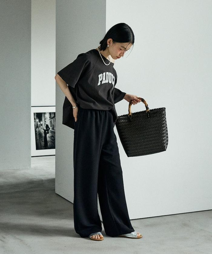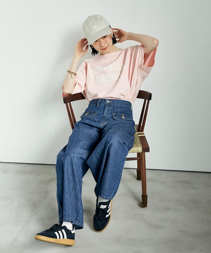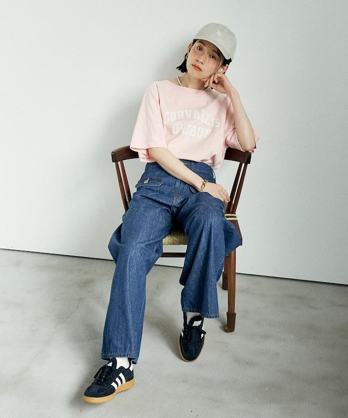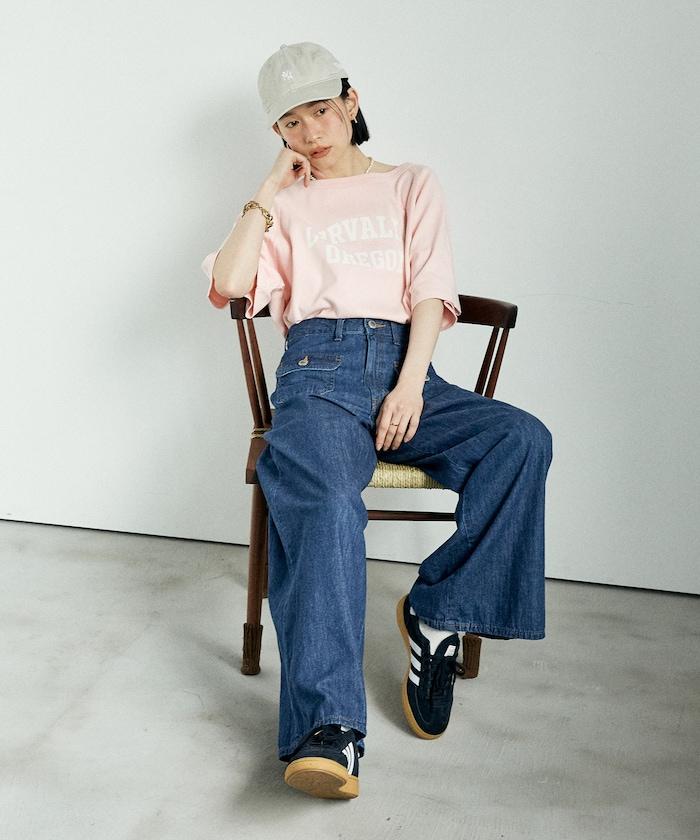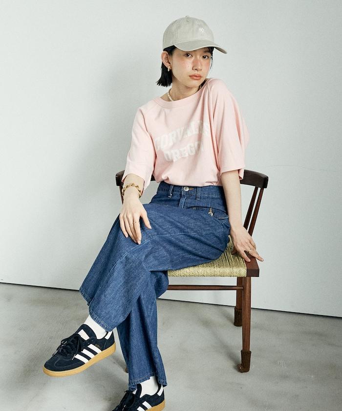 徽標 T 恤採用寬鬆面料和寬鬆剪裁。