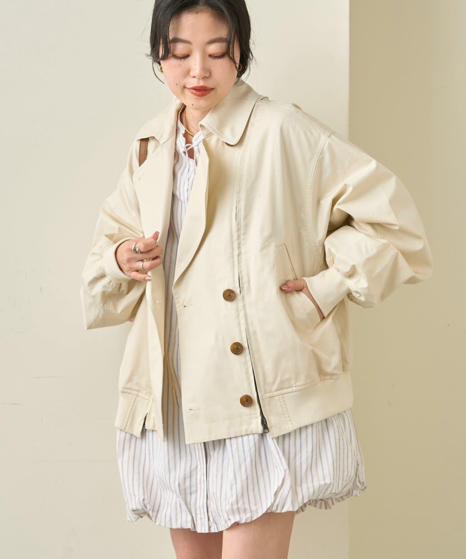 只需與牛仔褲搭配,就能打造出休閒的成人造型,突出不同的材質設計。與寬大的長褲或長裙搭配時,短款的平衡感就會顯現出來,造型也會很協調。搭配乾淨利落的休閒褲,簡潔的造型更能凸顯風衣元素。拉開拉鍊,露出內襯,還能享受春天般的輕盈造型。