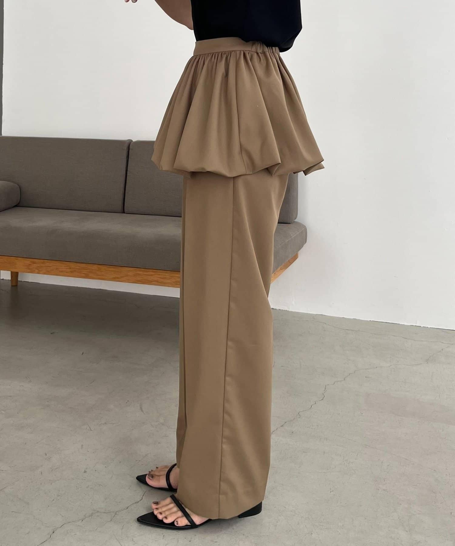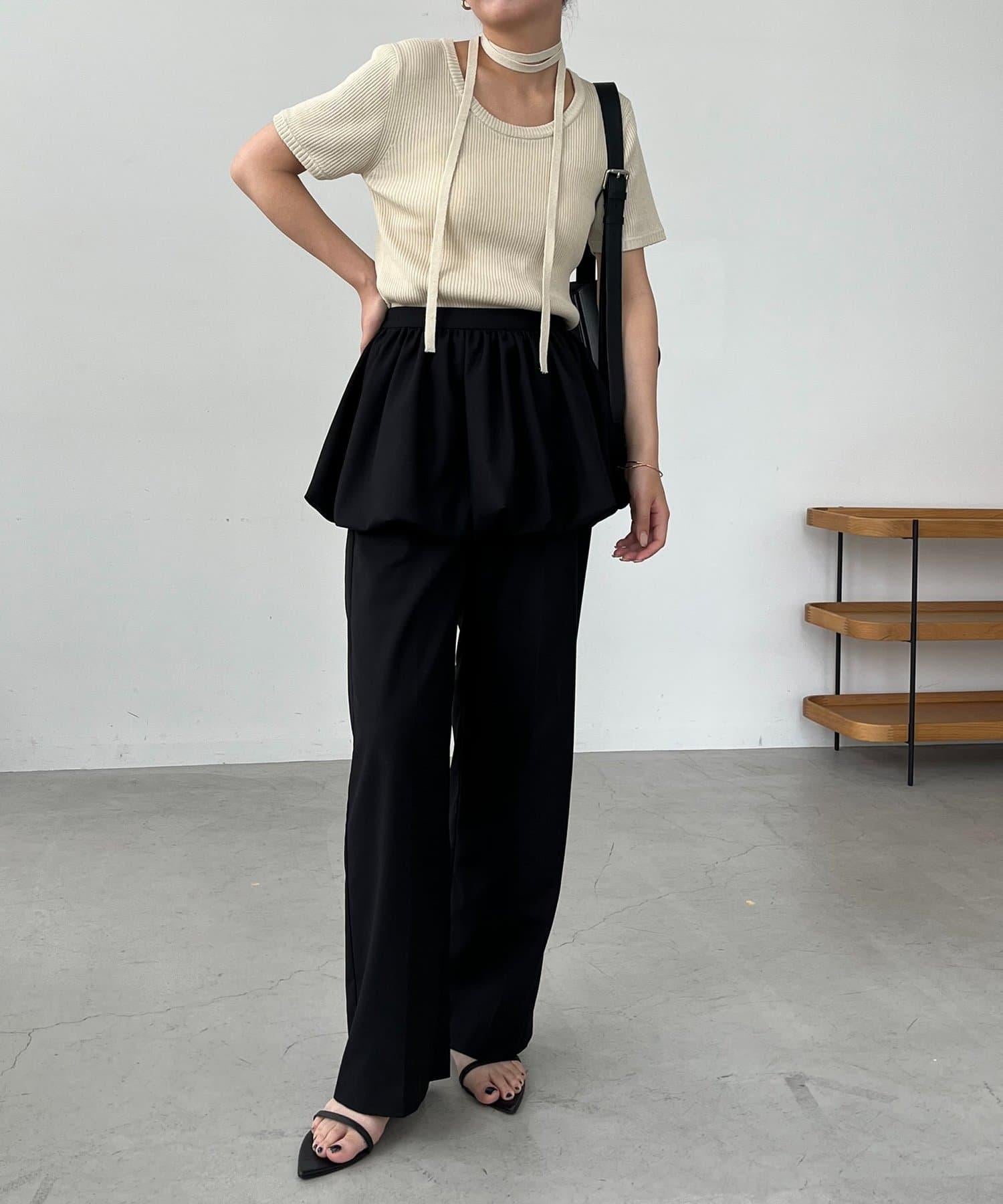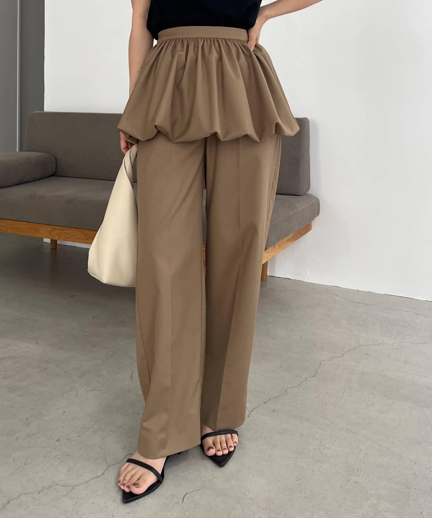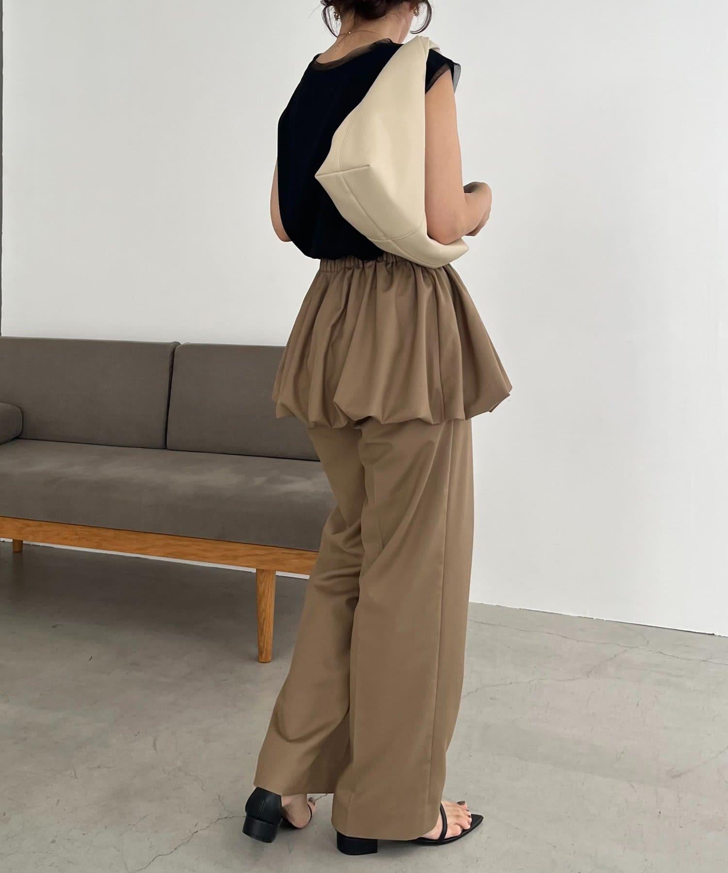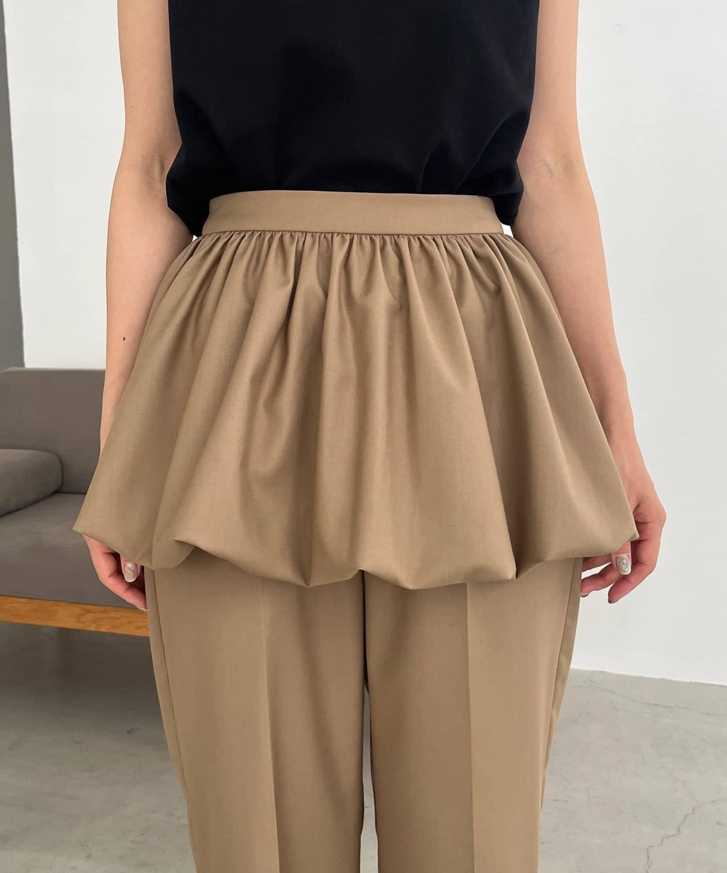 這是一款時尚單品,配有同材質的氣球迷你裙和長褲。