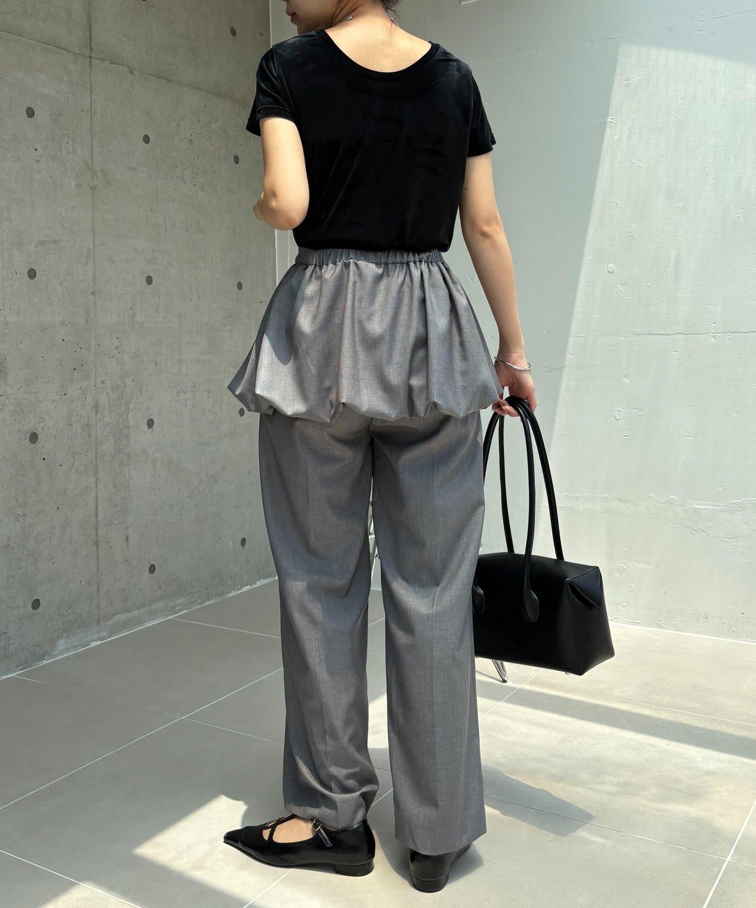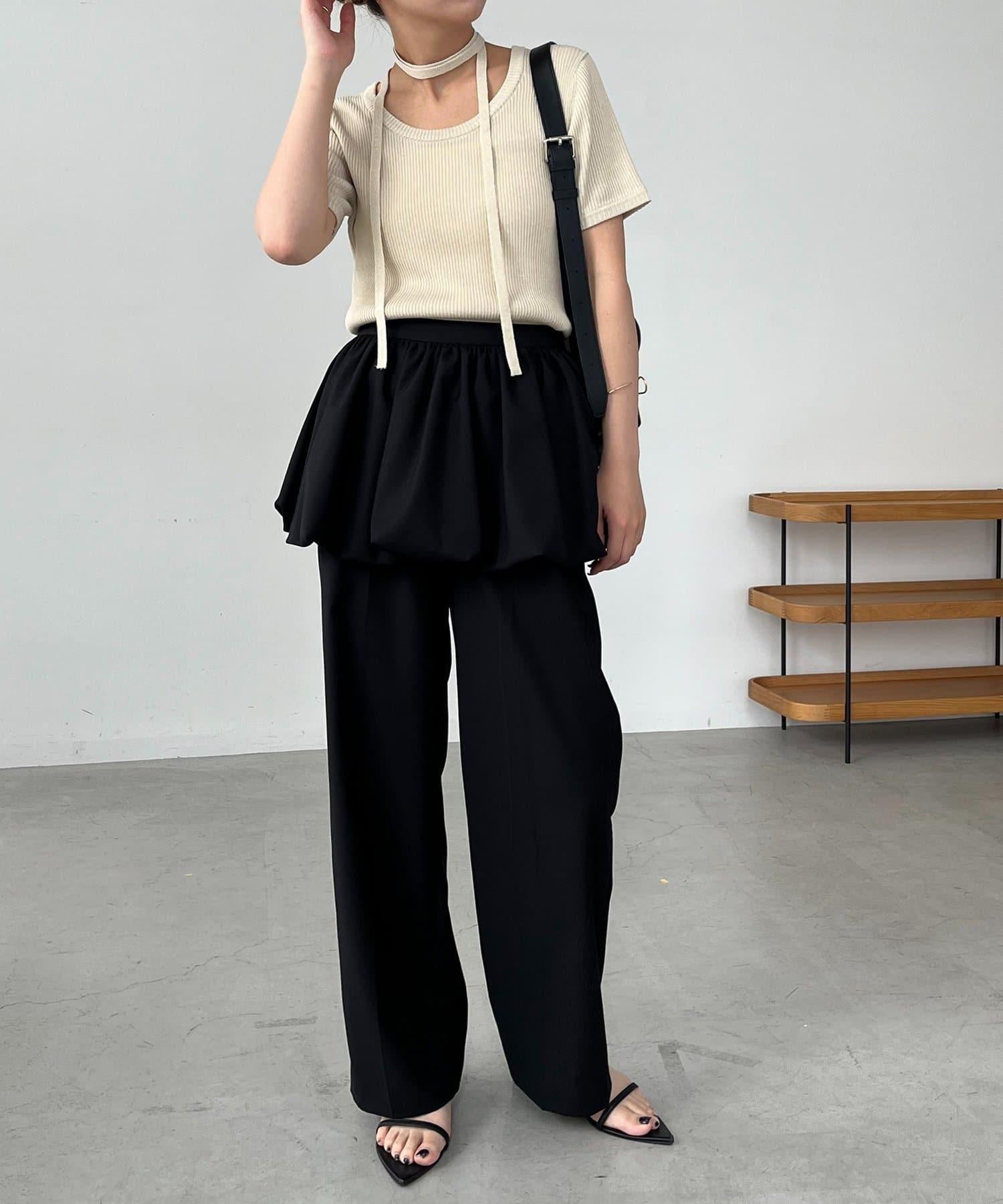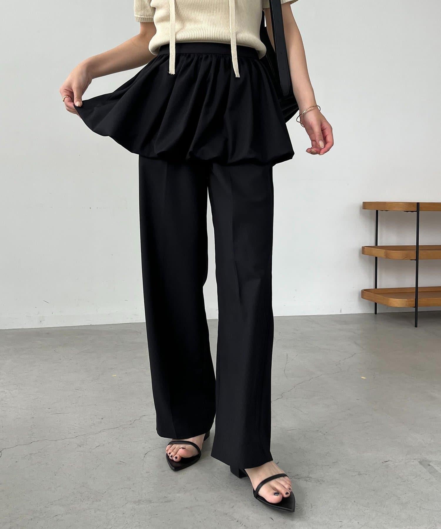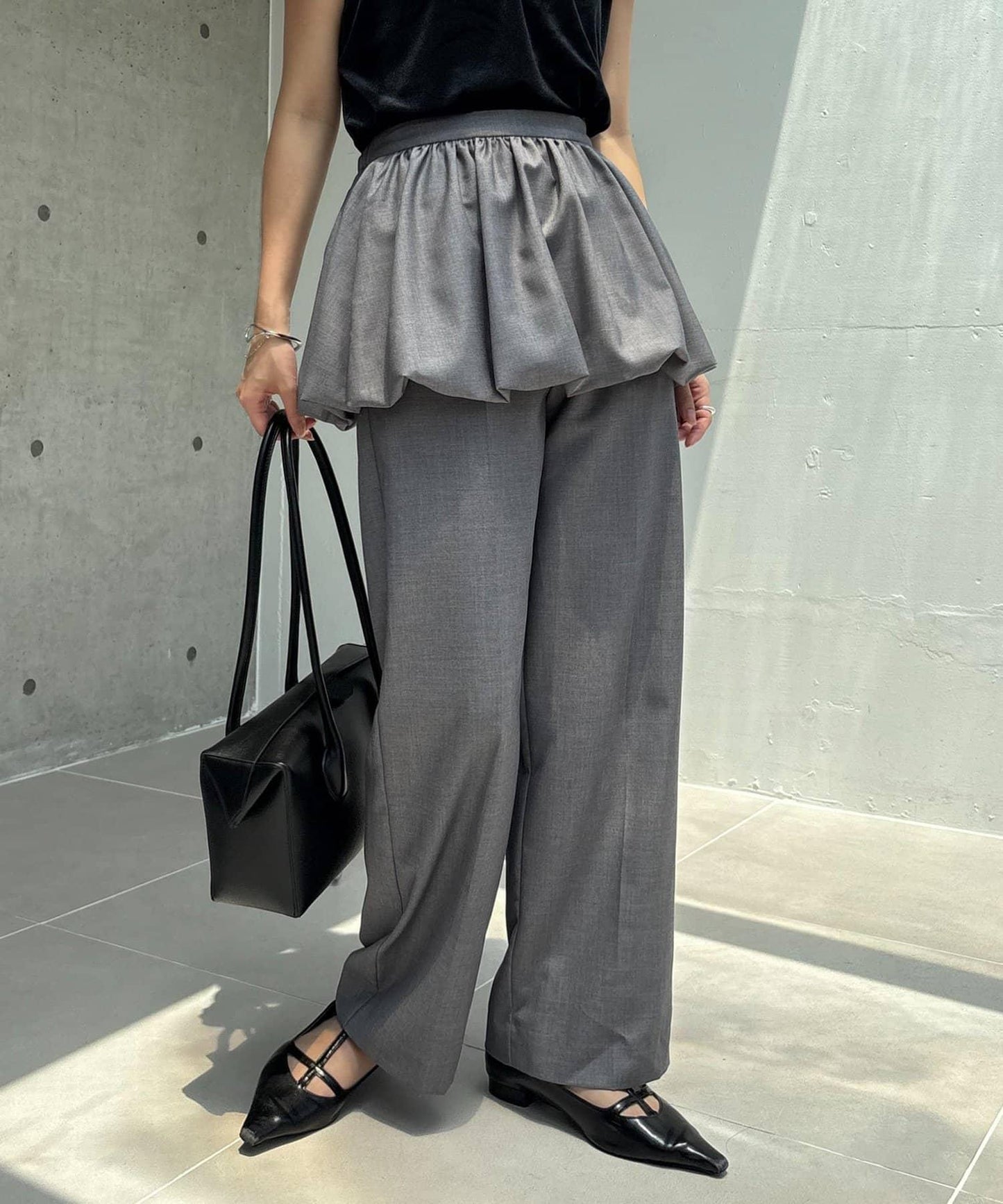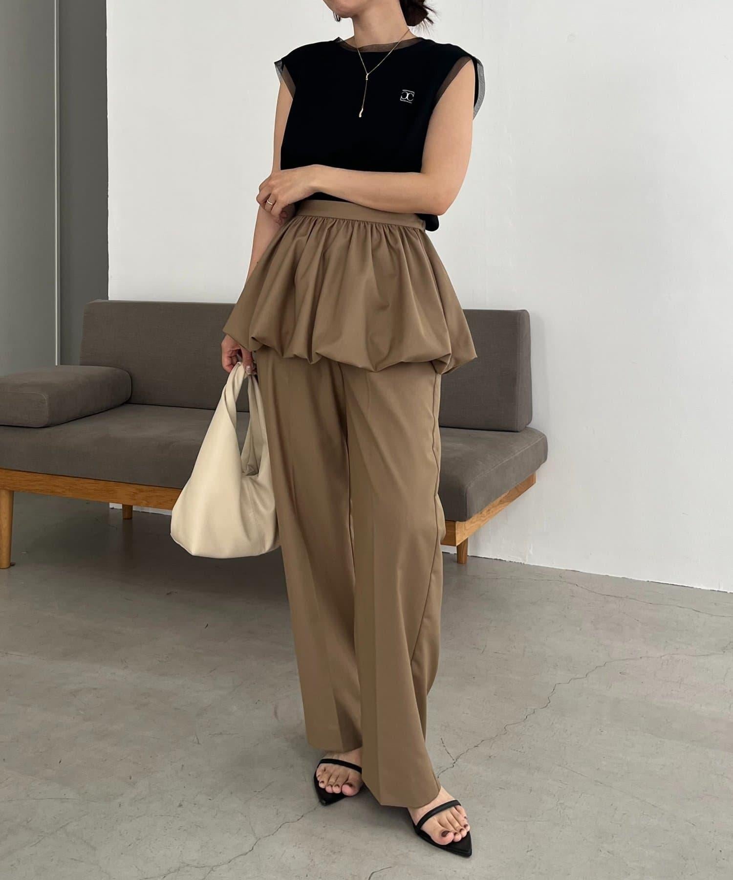 這是一款時尚單品,配有同材質的氣球迷你裙和長褲。