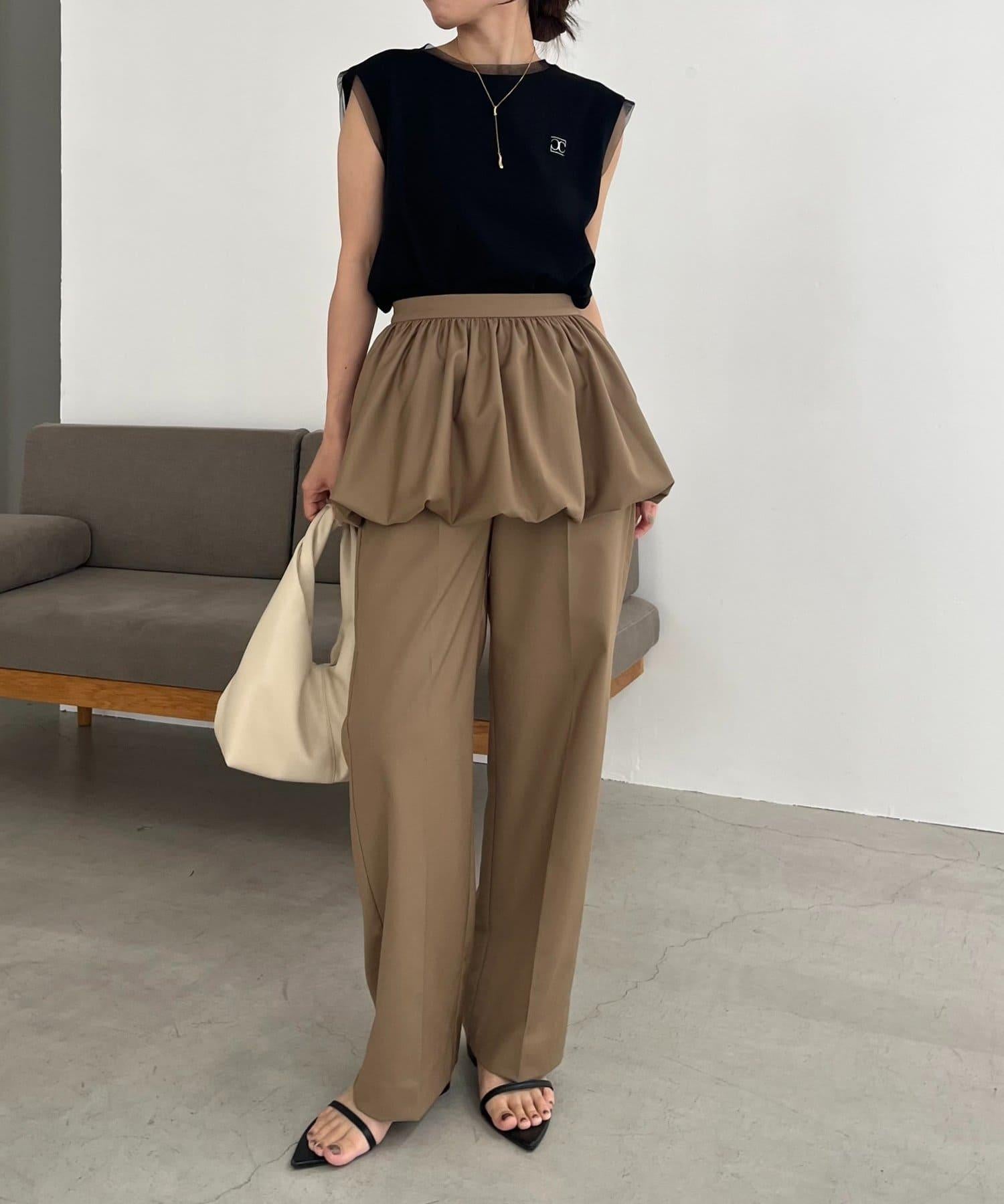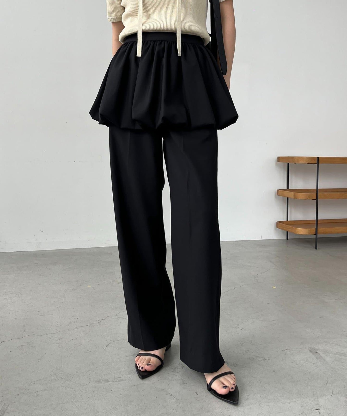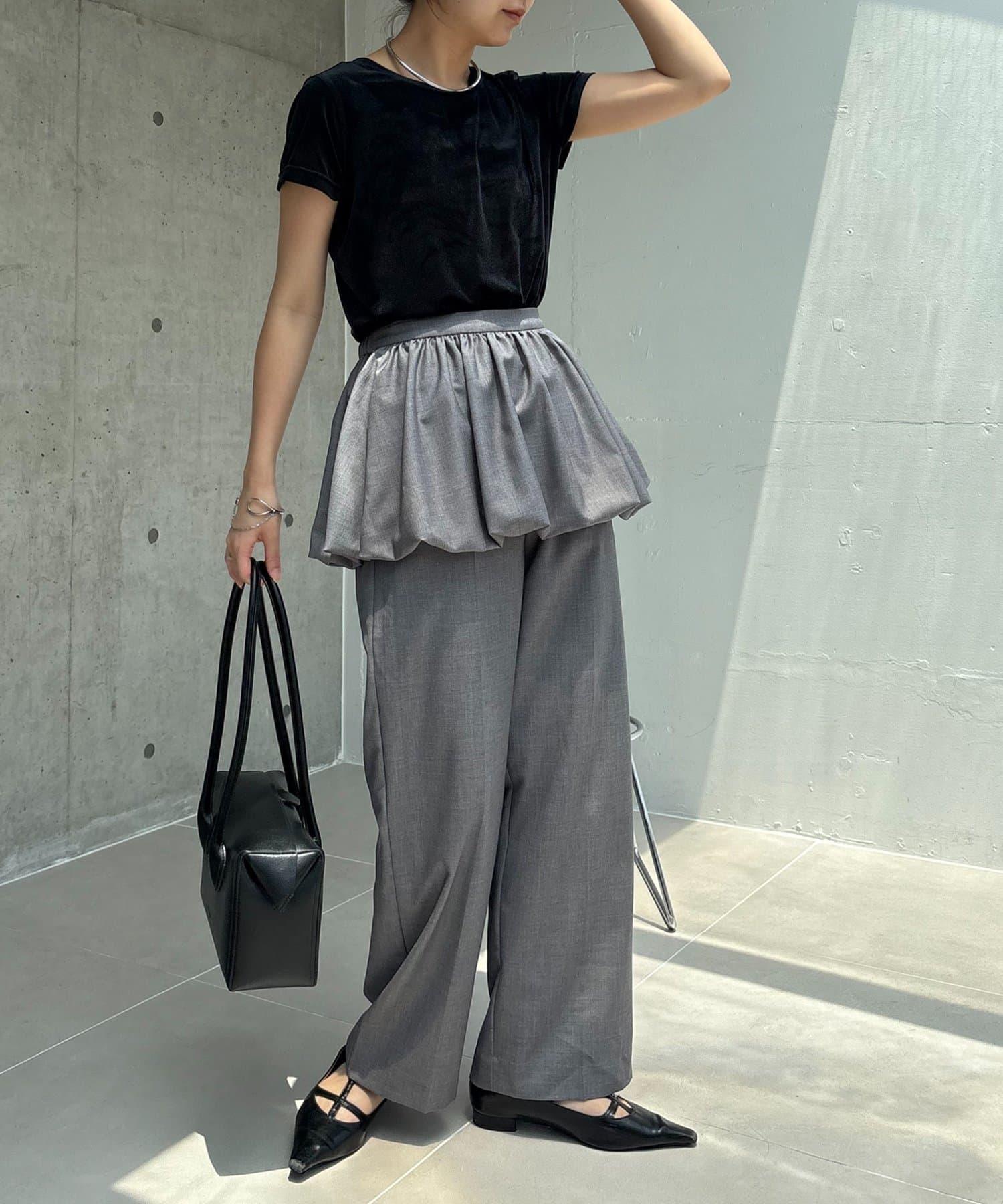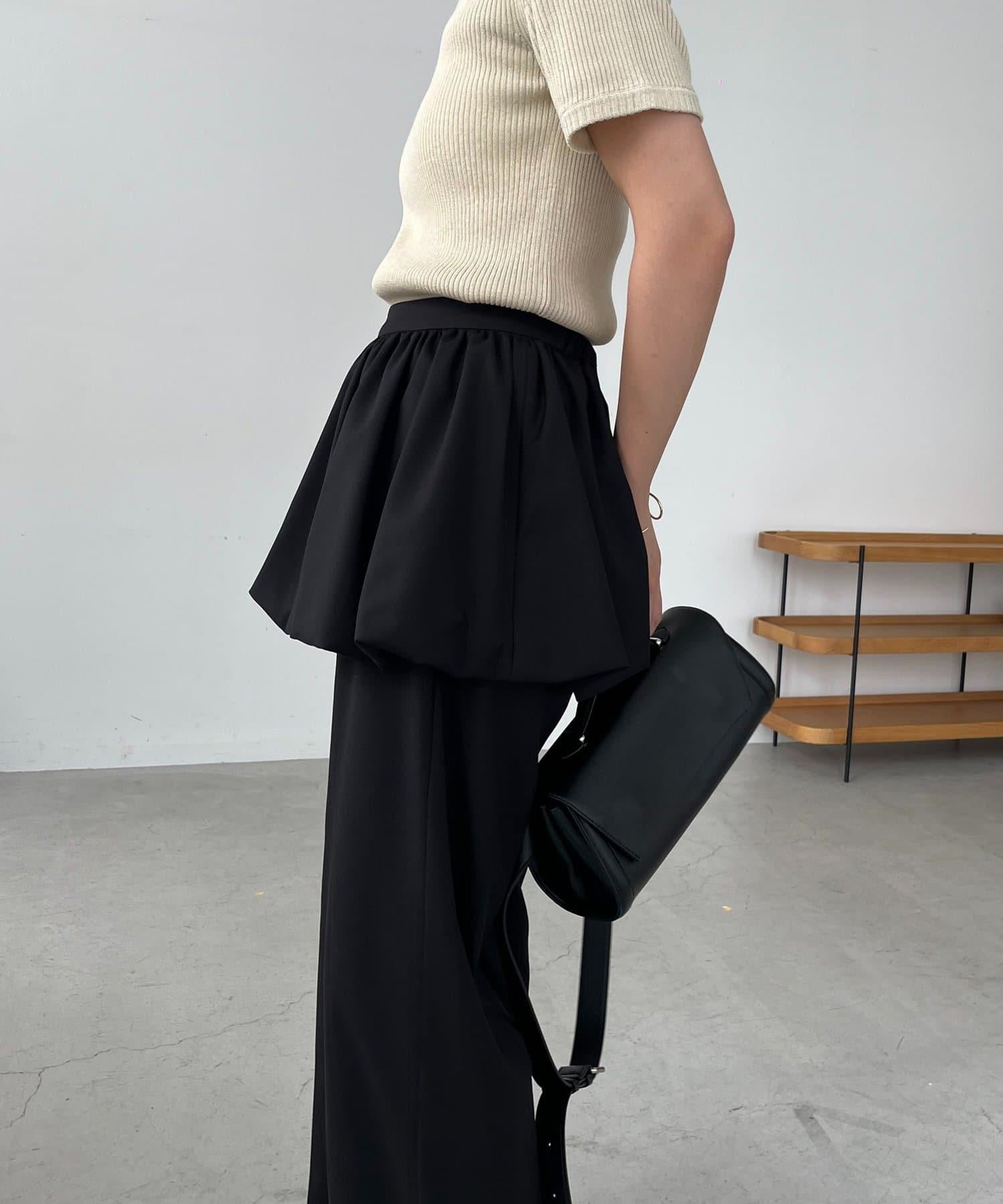 這是一款時尚單品,配有同材質的氣球迷你裙和長褲。