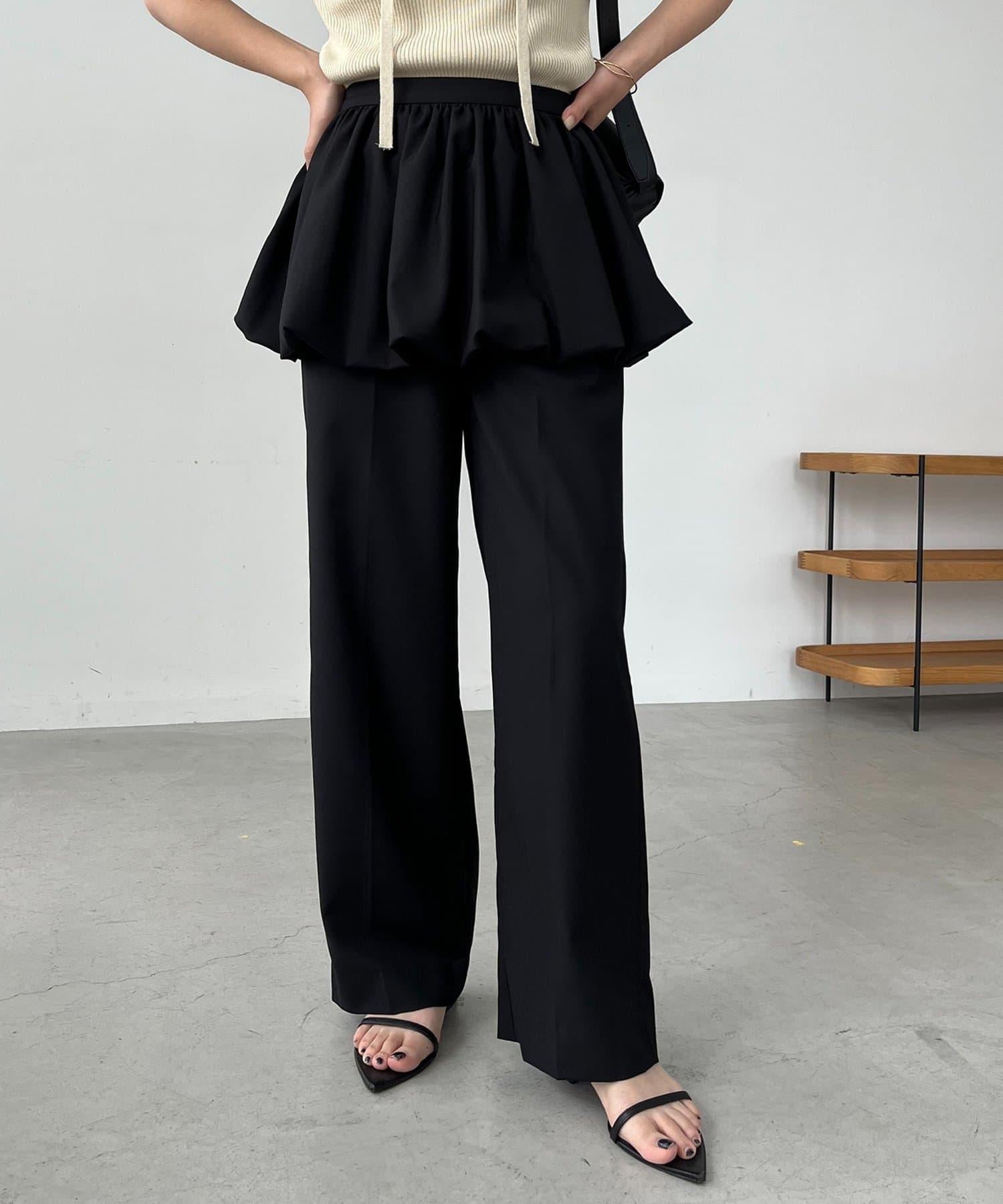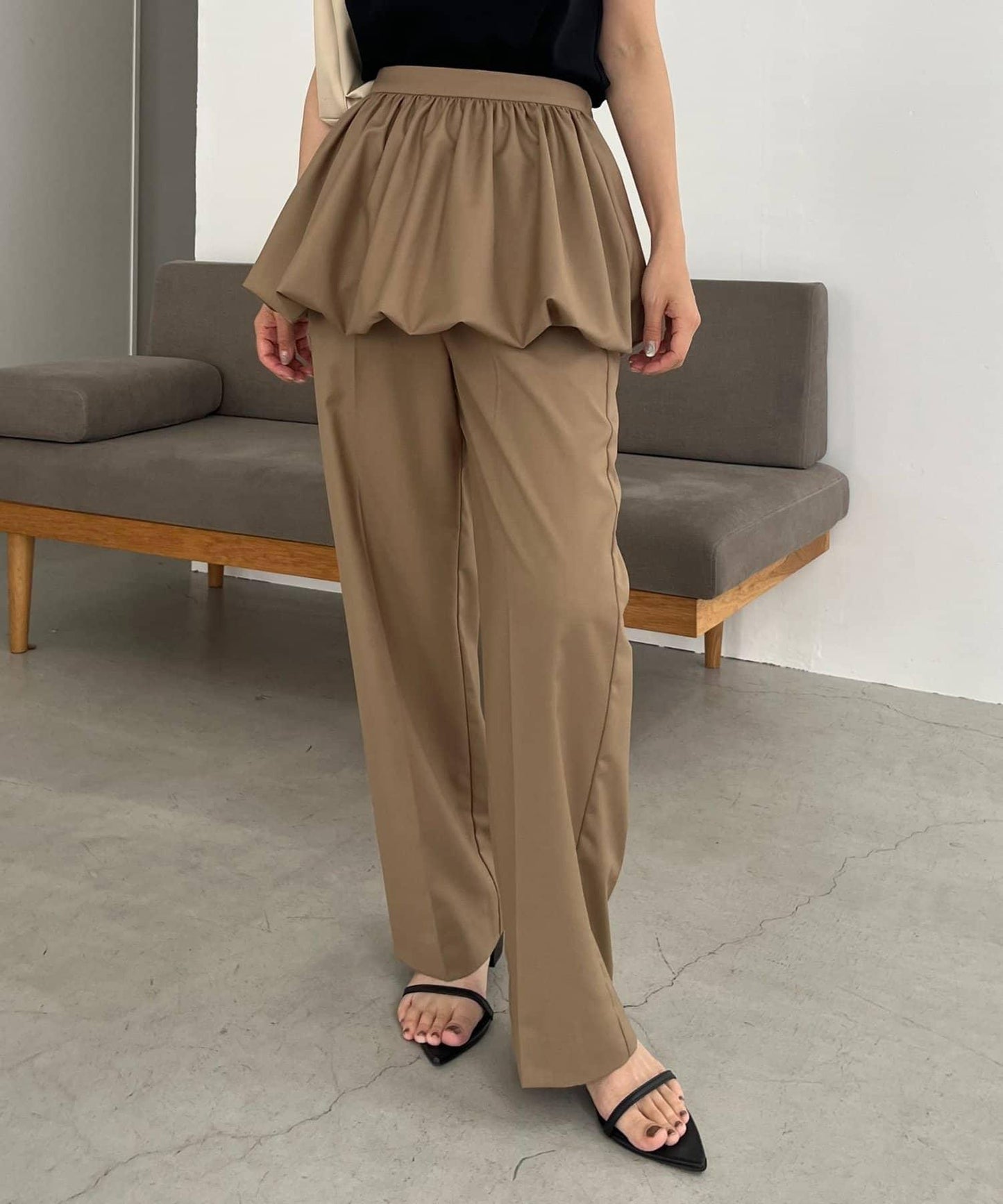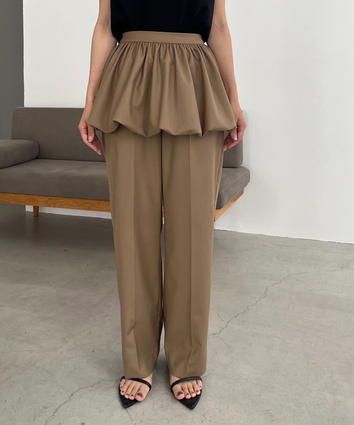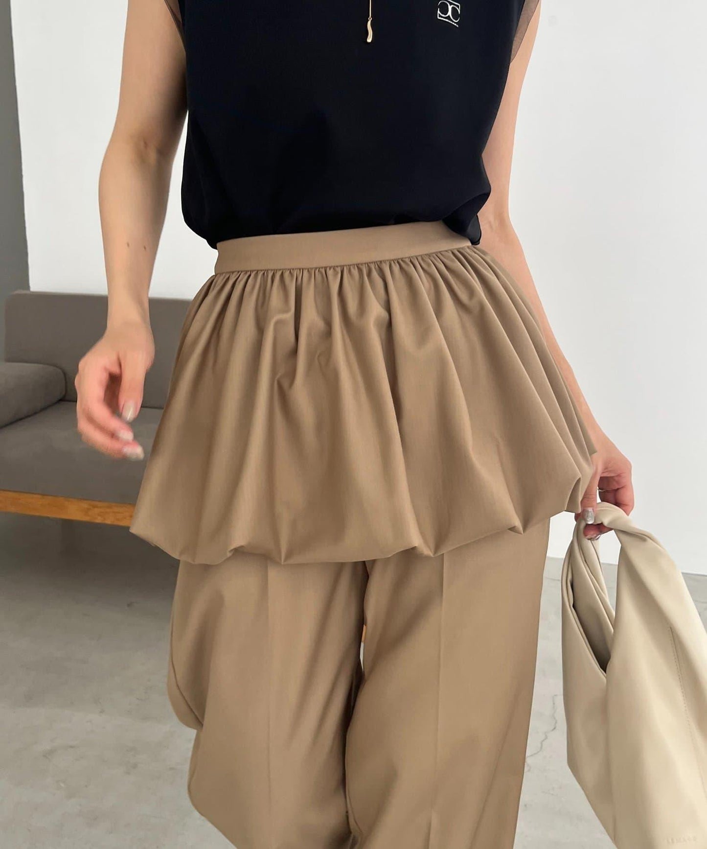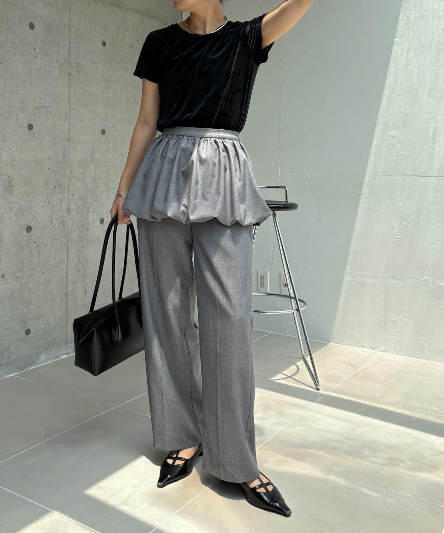 這是一款時尚單品,配有同材質的氣球迷你裙和長褲。
