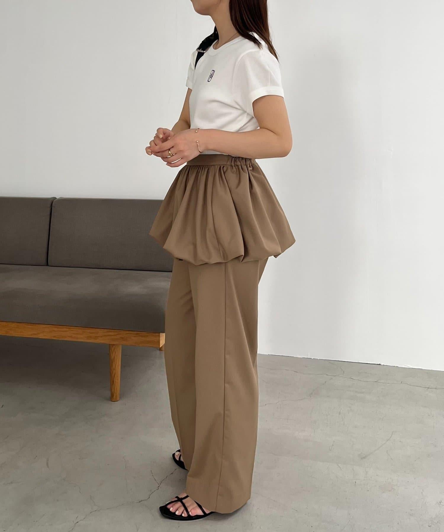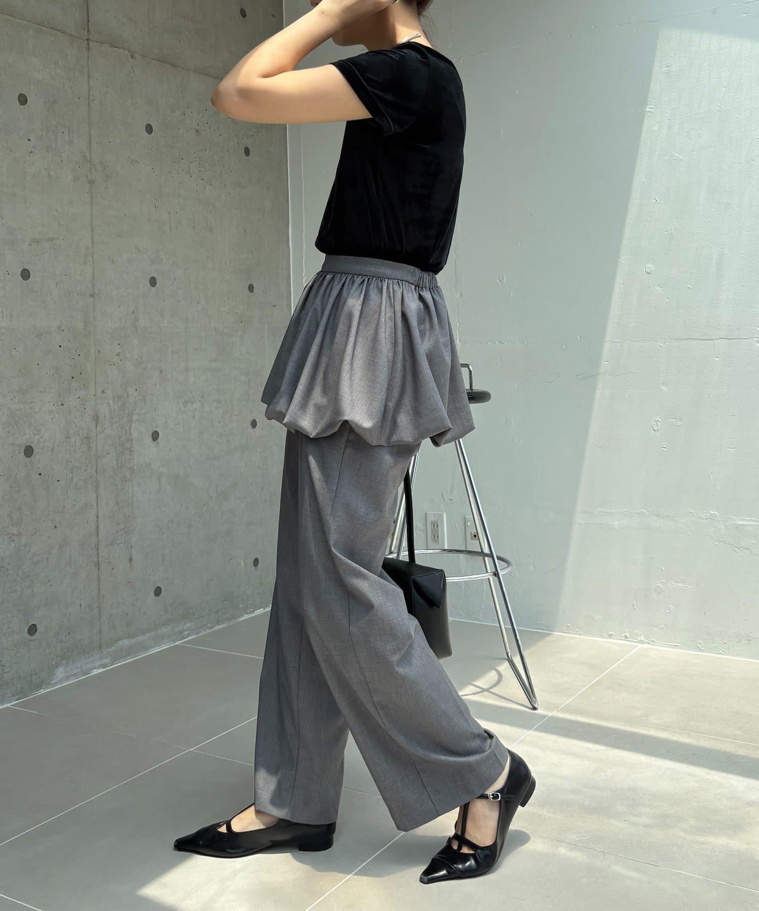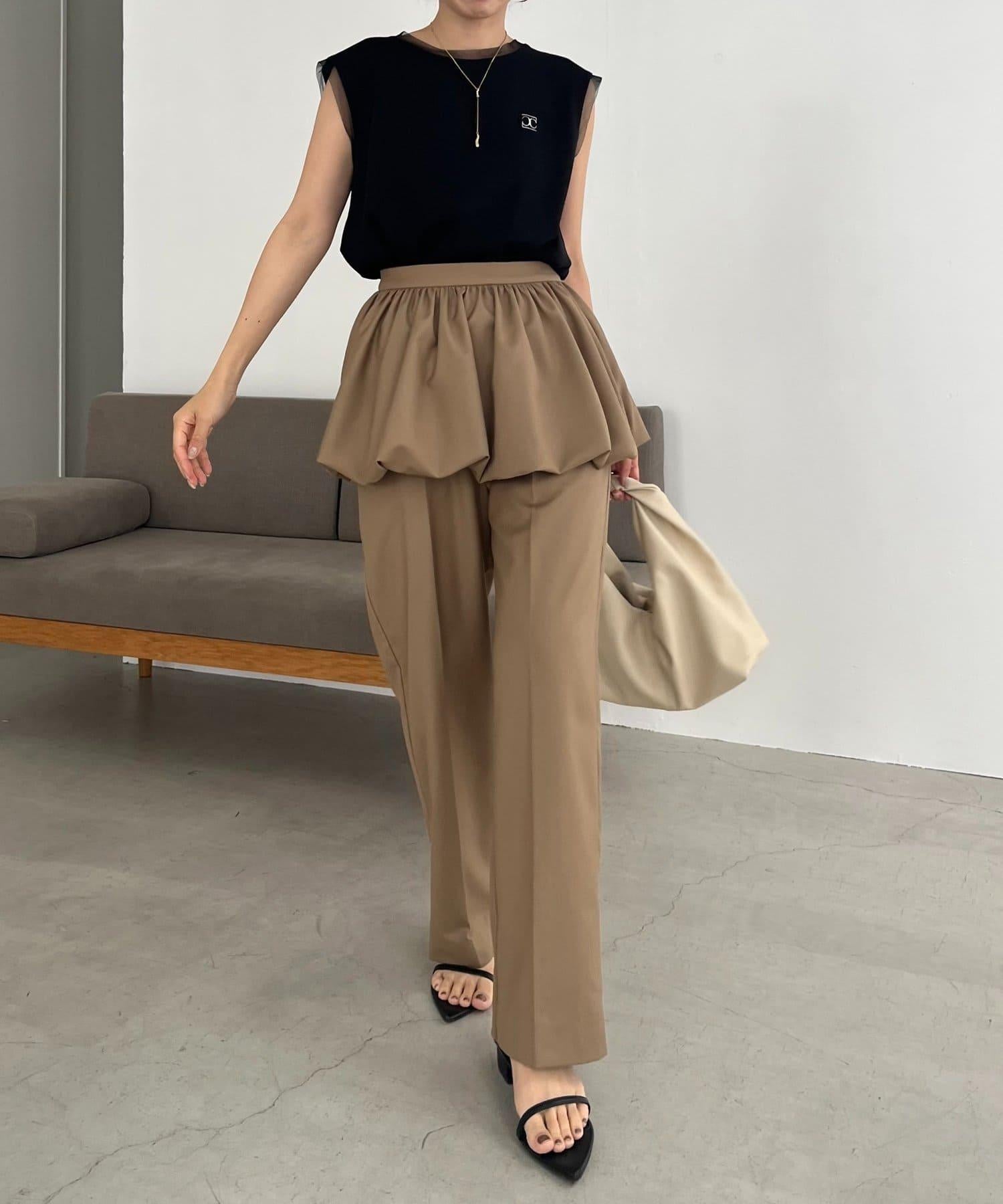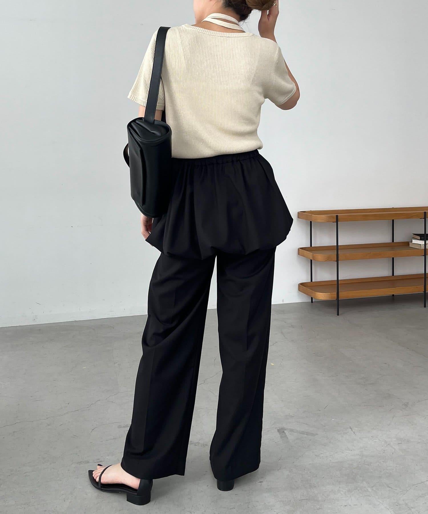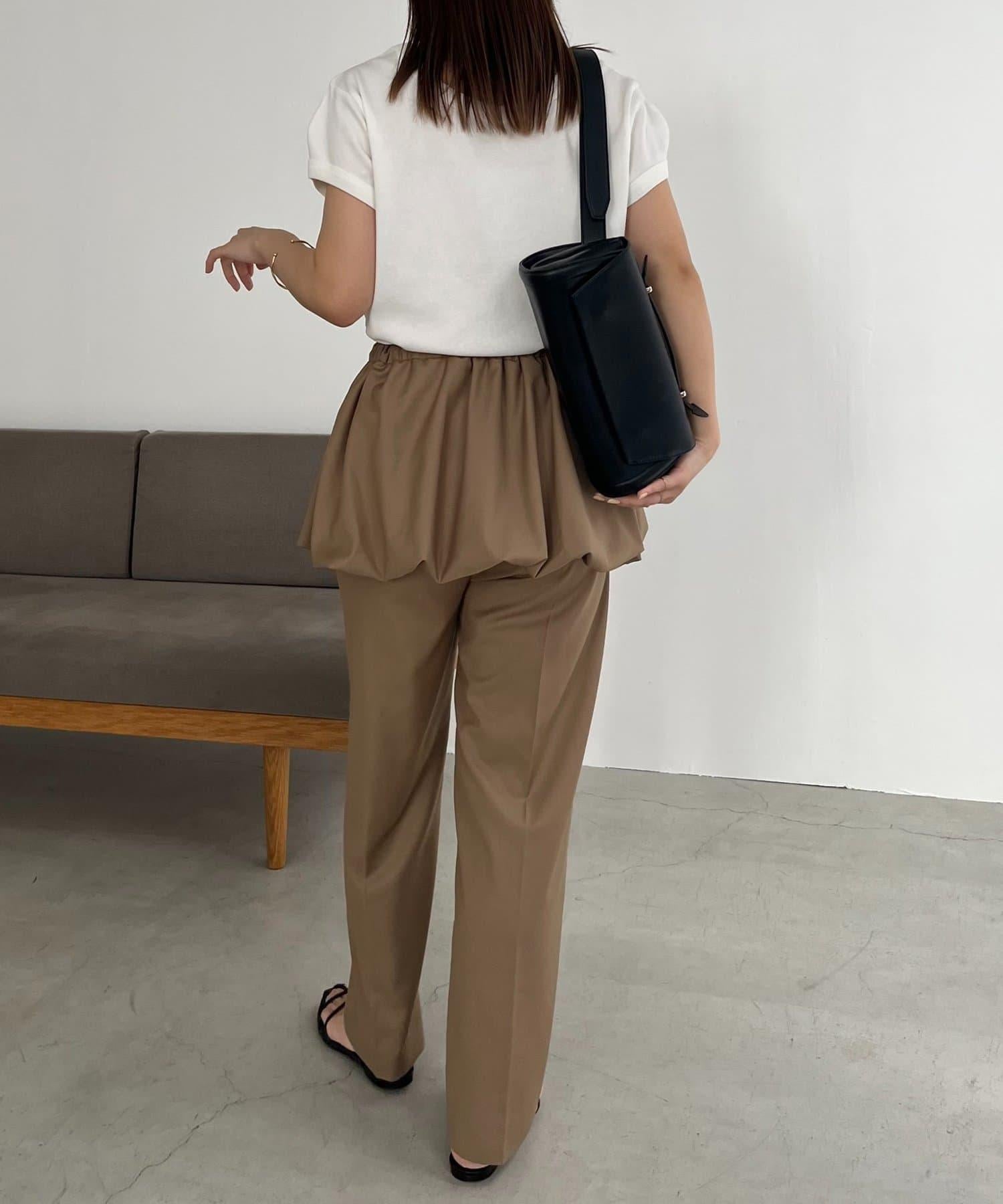 這是一款時尚單品,配有同材質的氣球迷你裙和長褲。