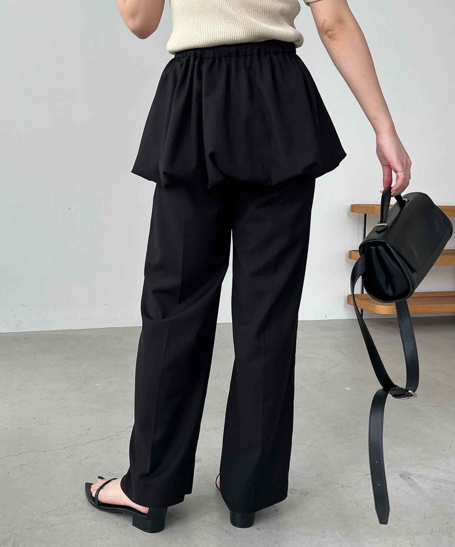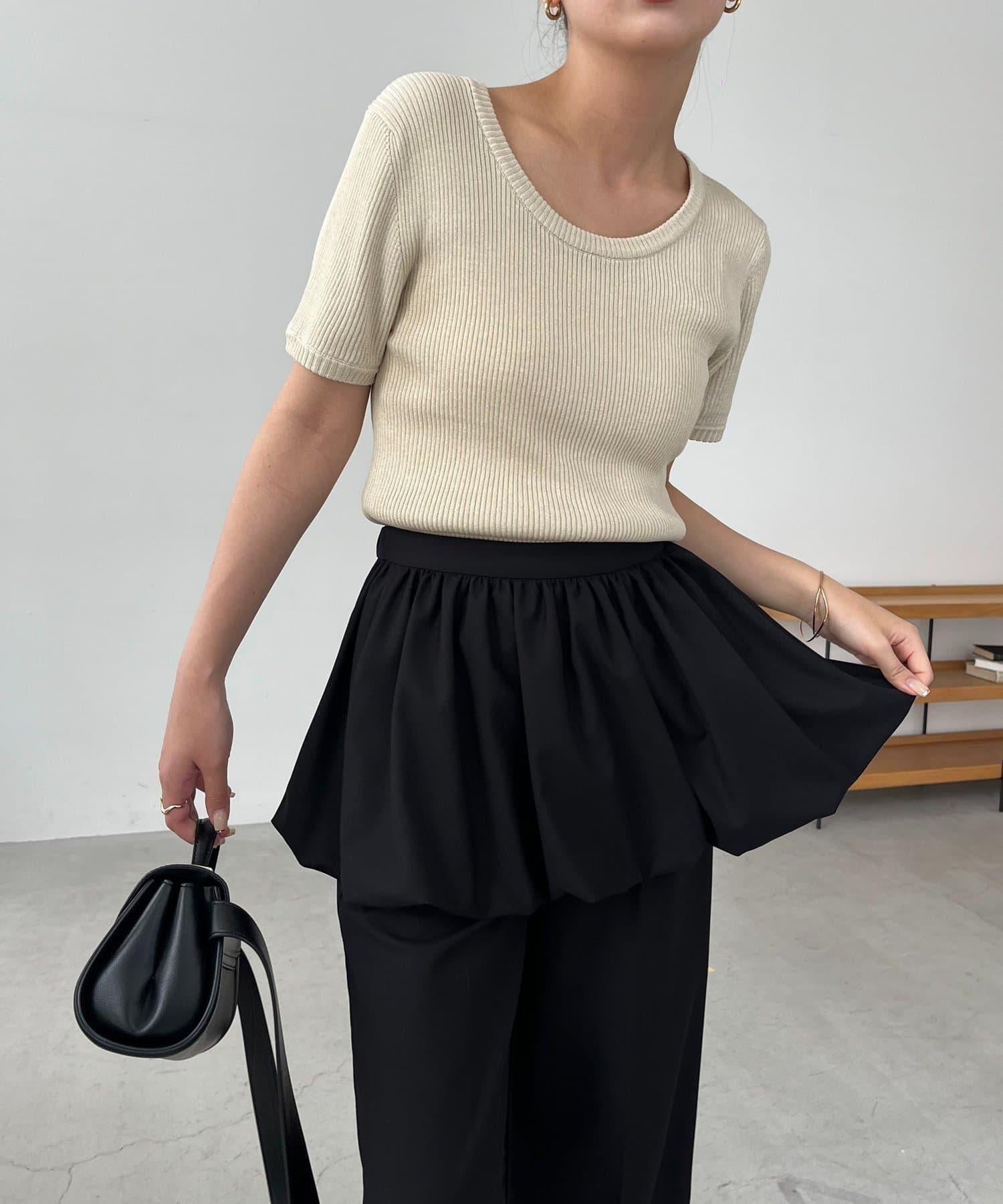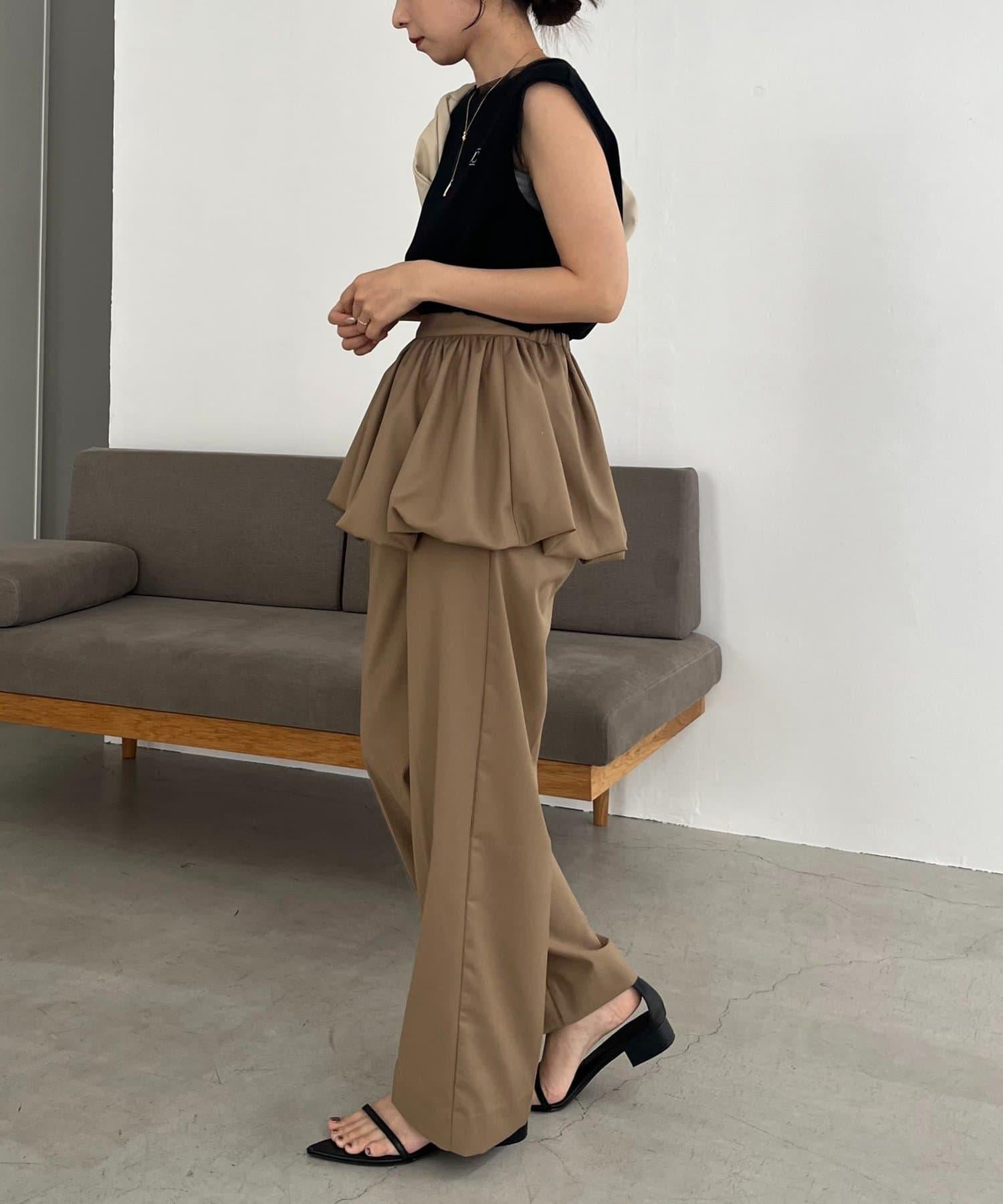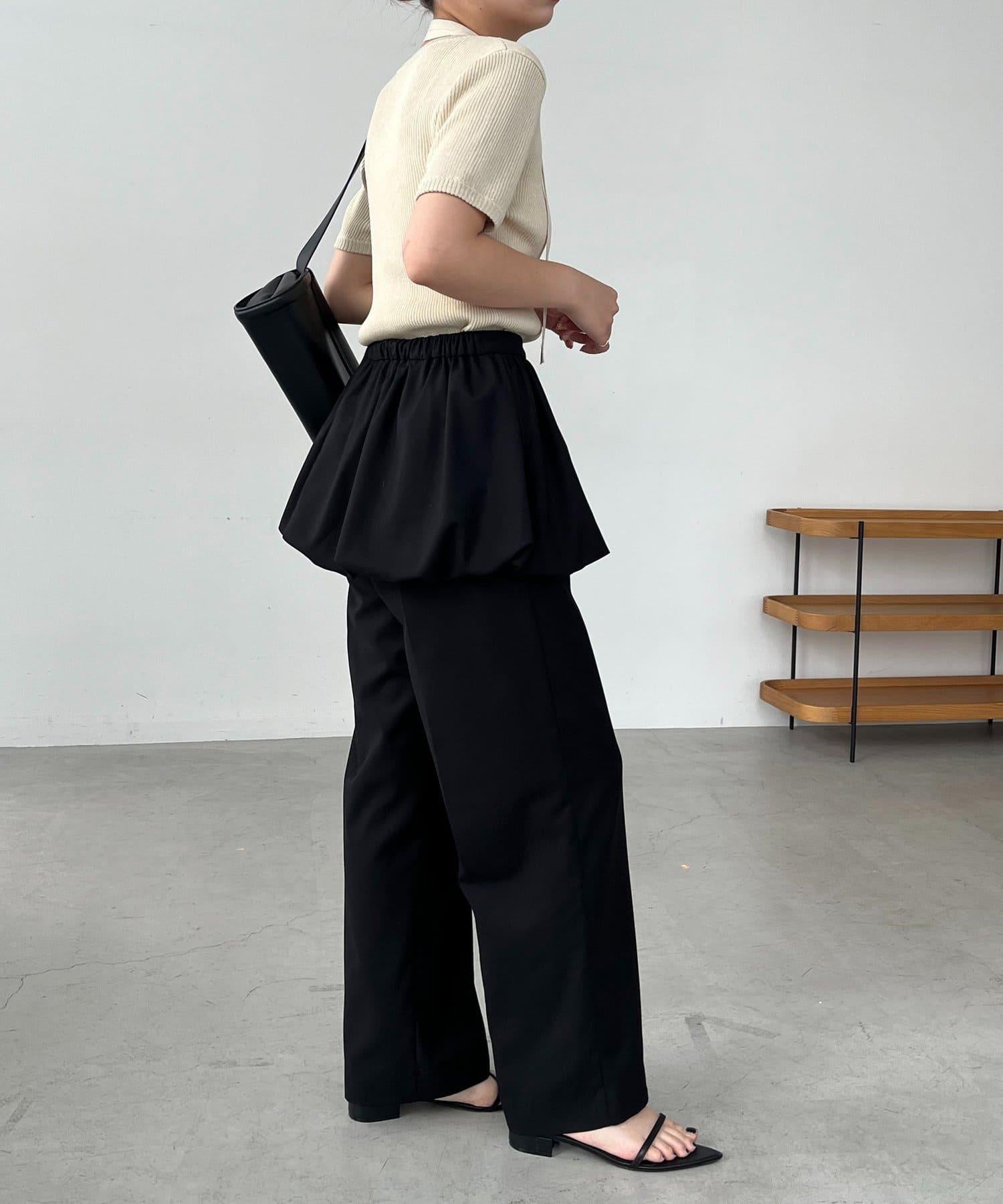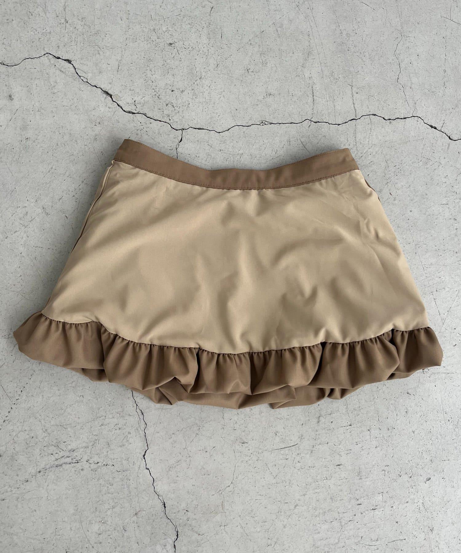 這是一款時尚單品,配有同材質的氣球迷你裙和長褲。
