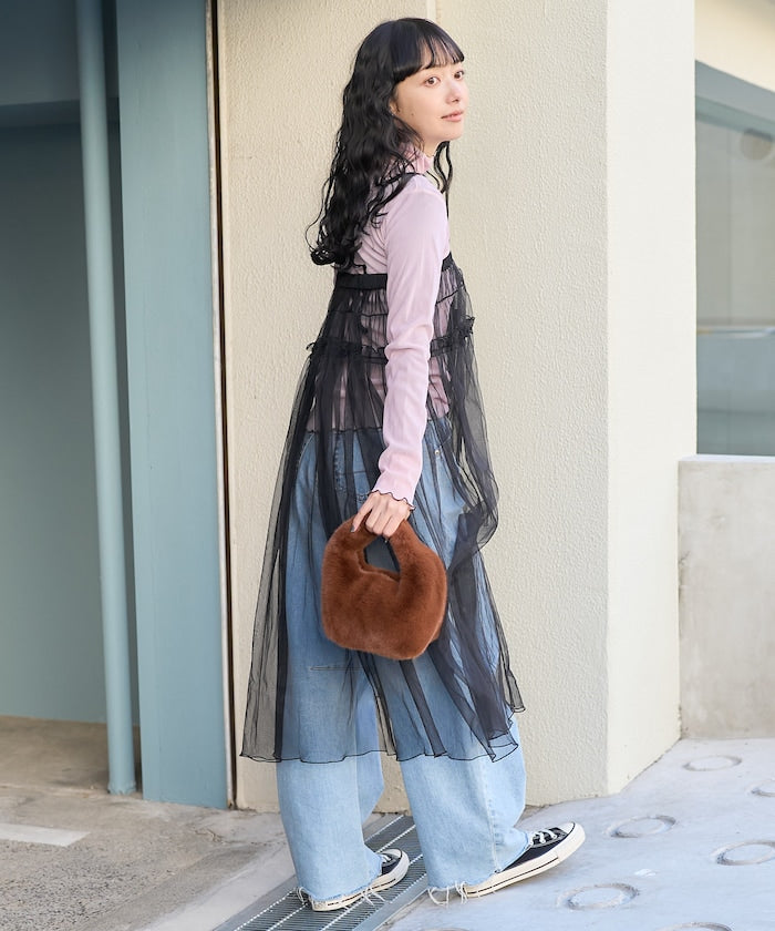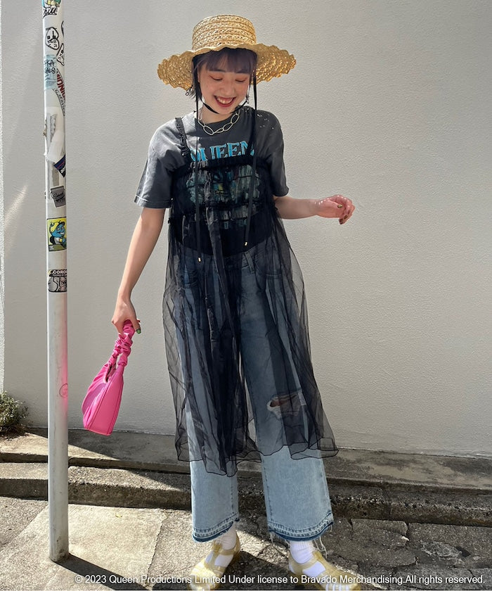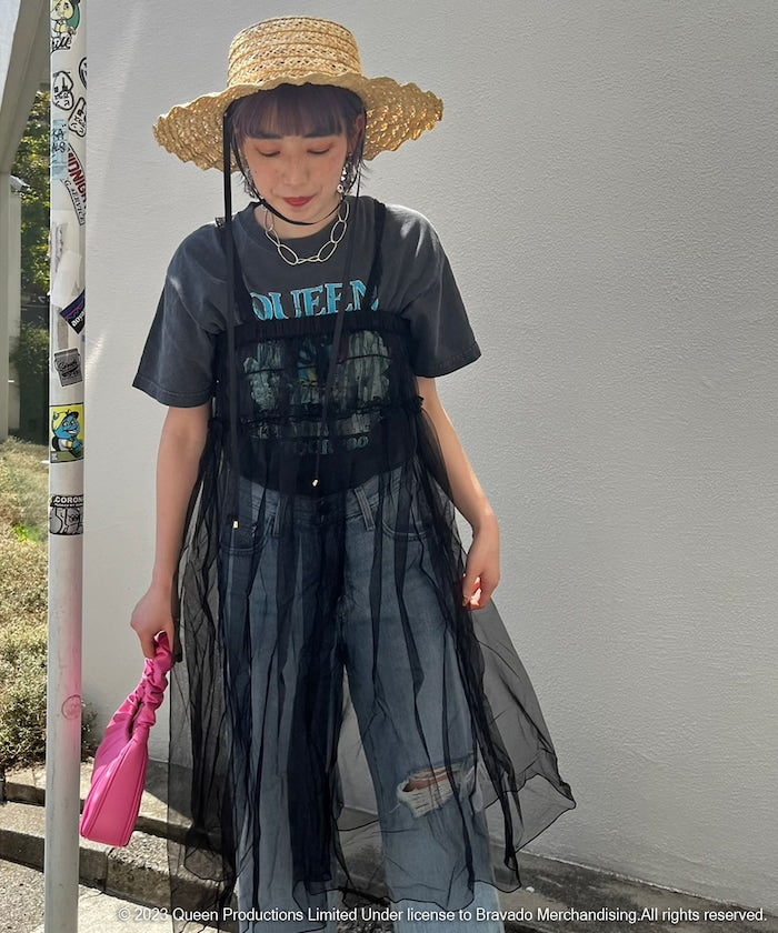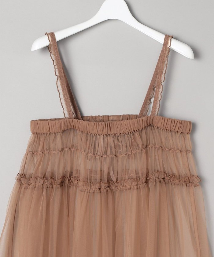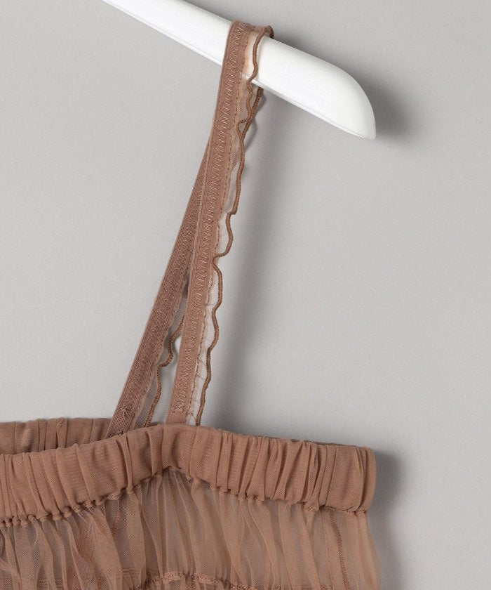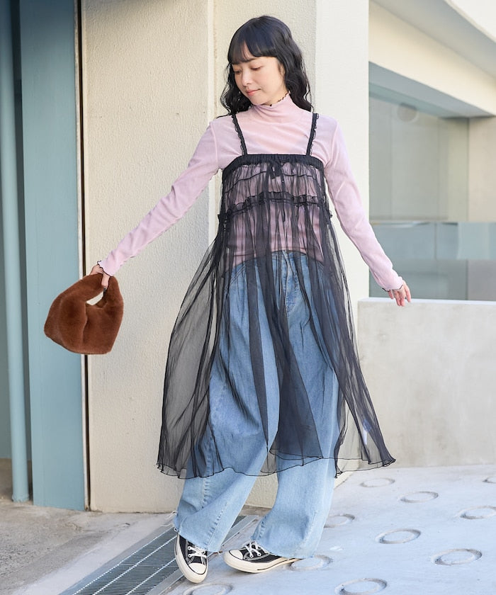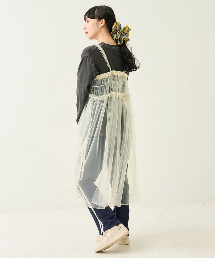 透明薄紗材質的吊帶連衣裙,非常可愛。