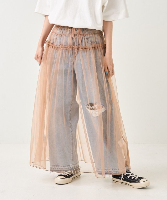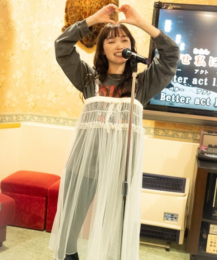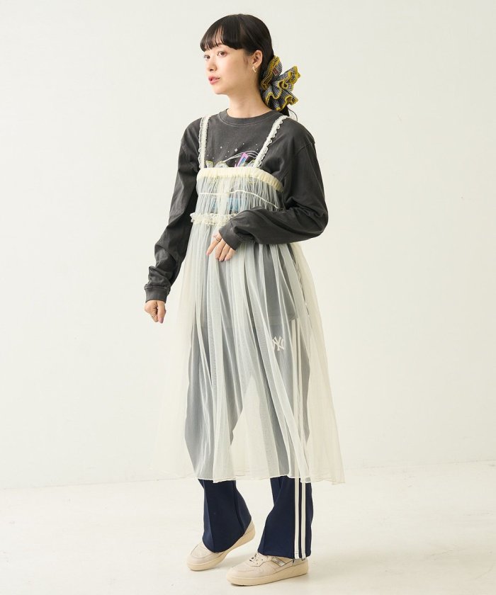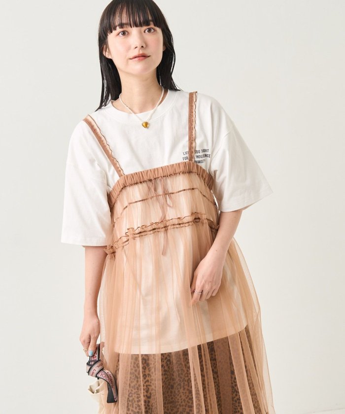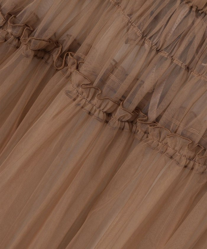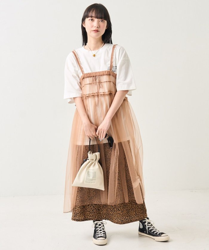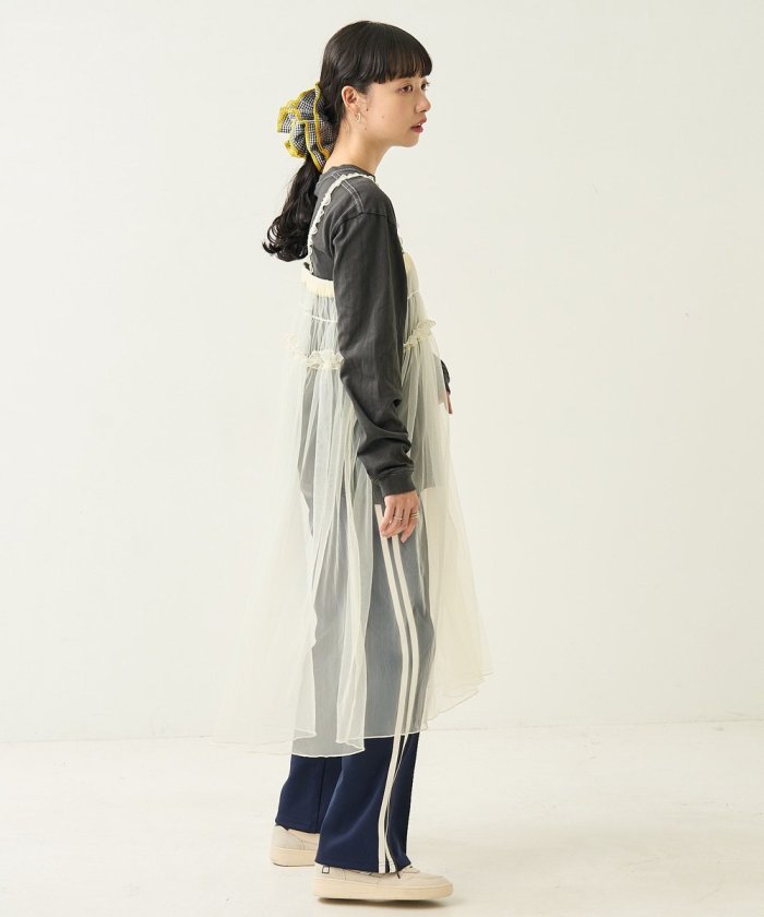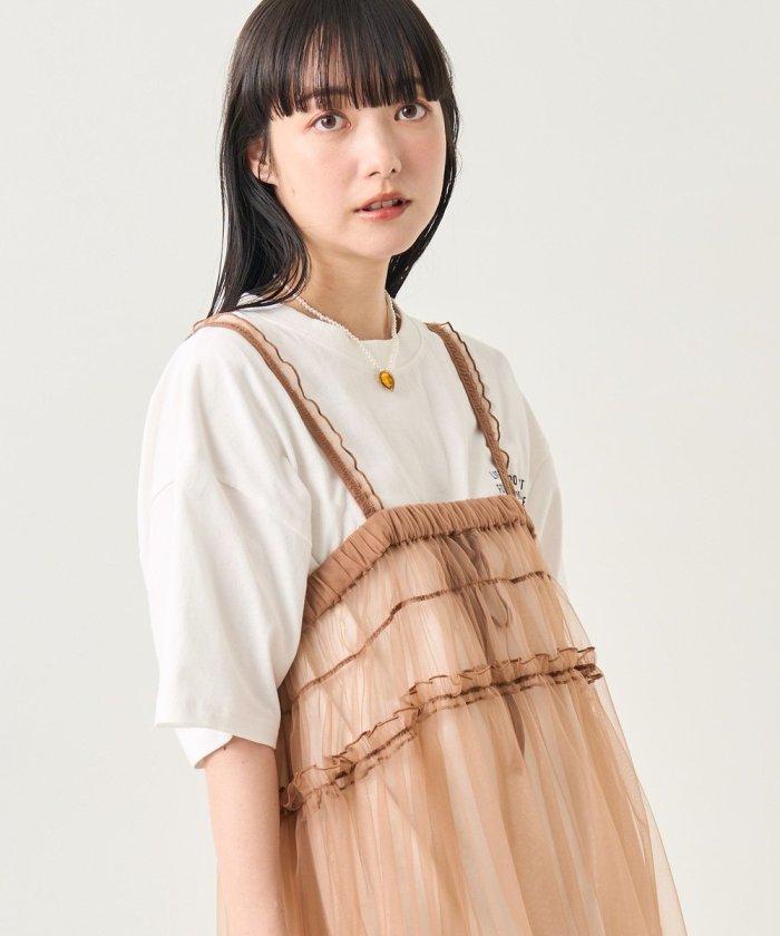 透明薄紗材質的吊帶連衣裙,非常可愛。