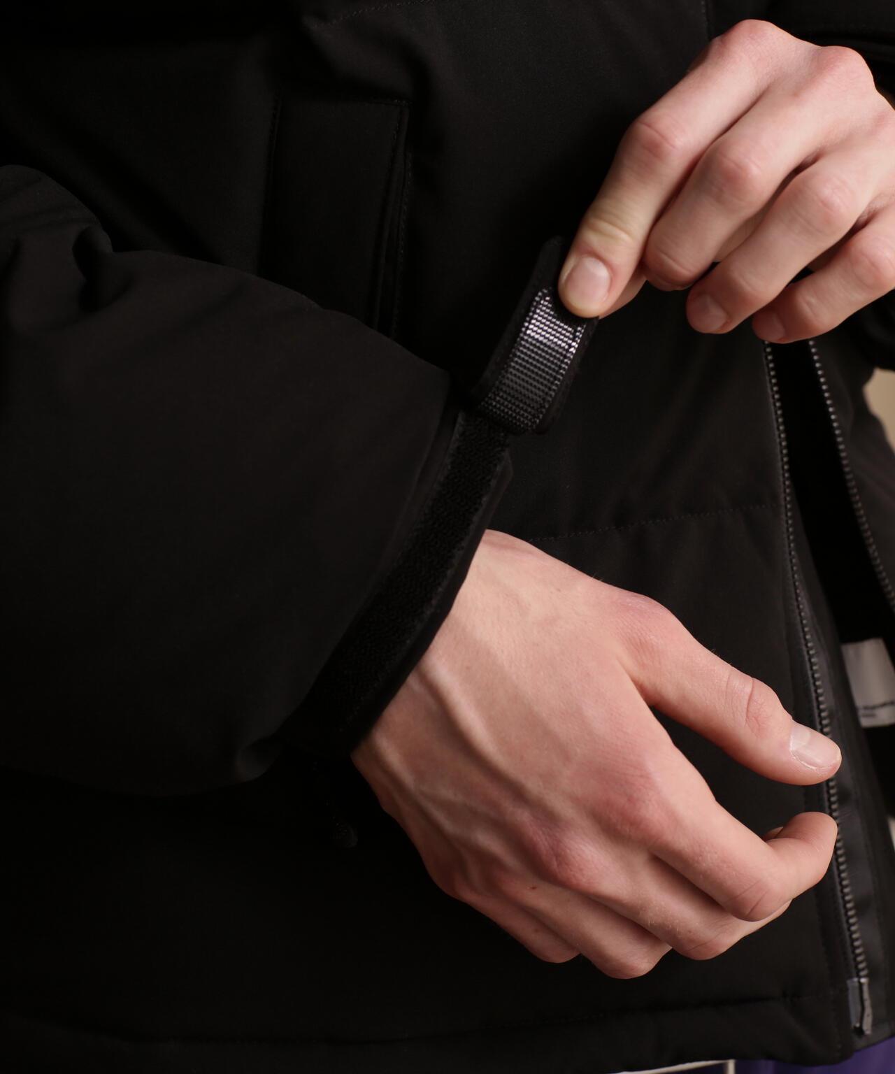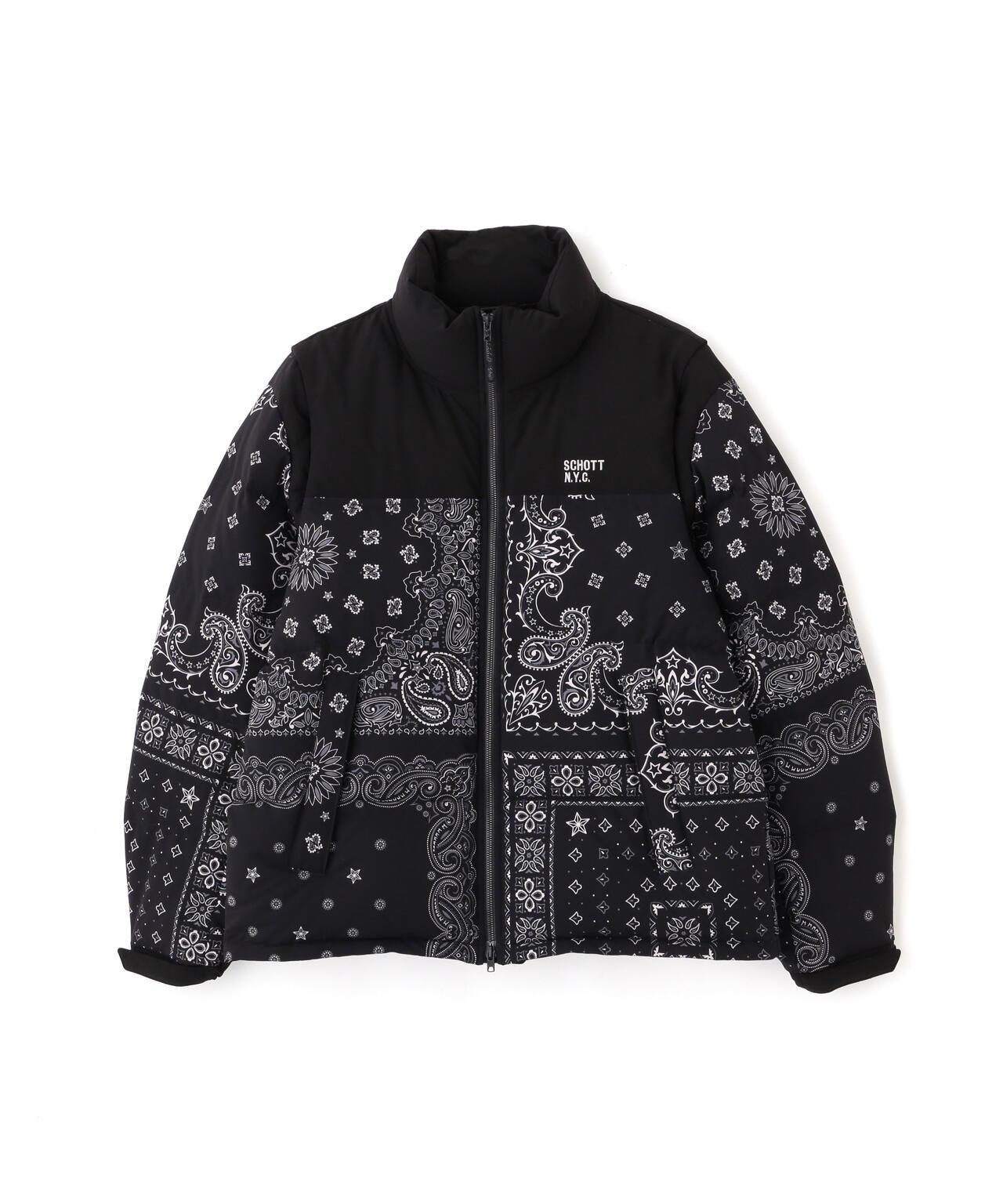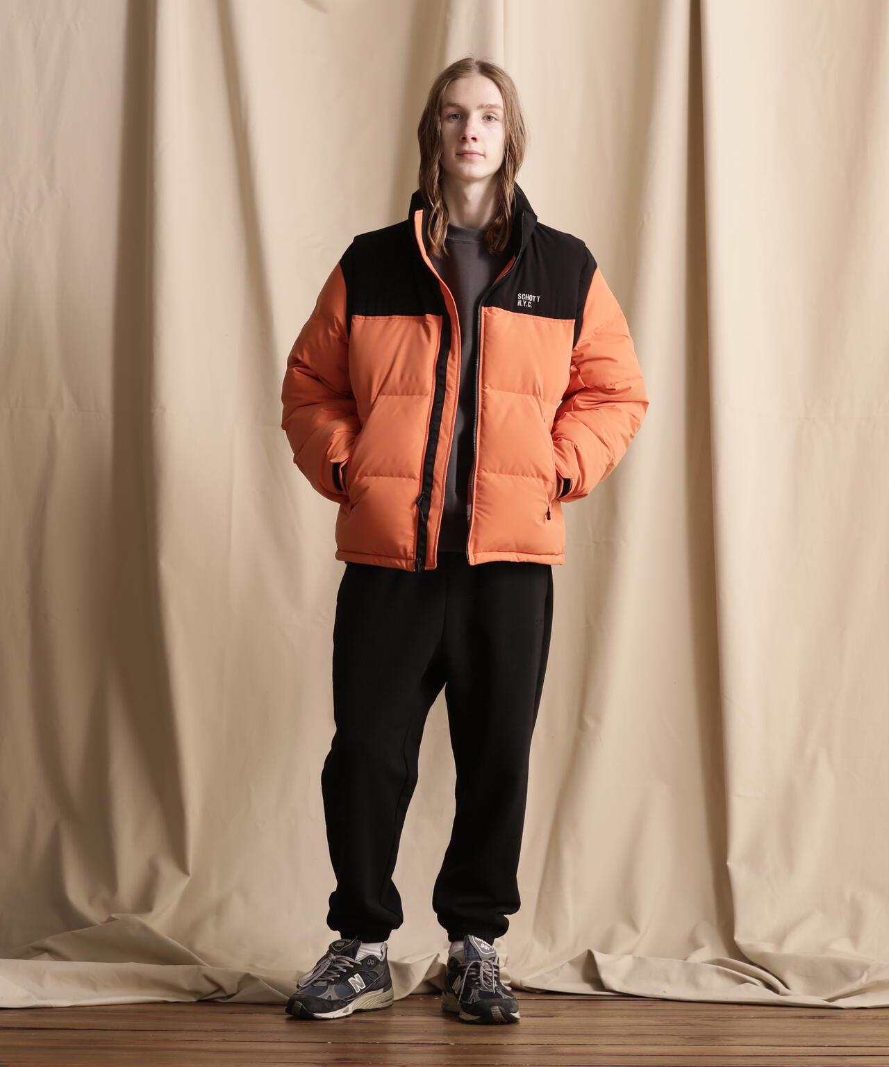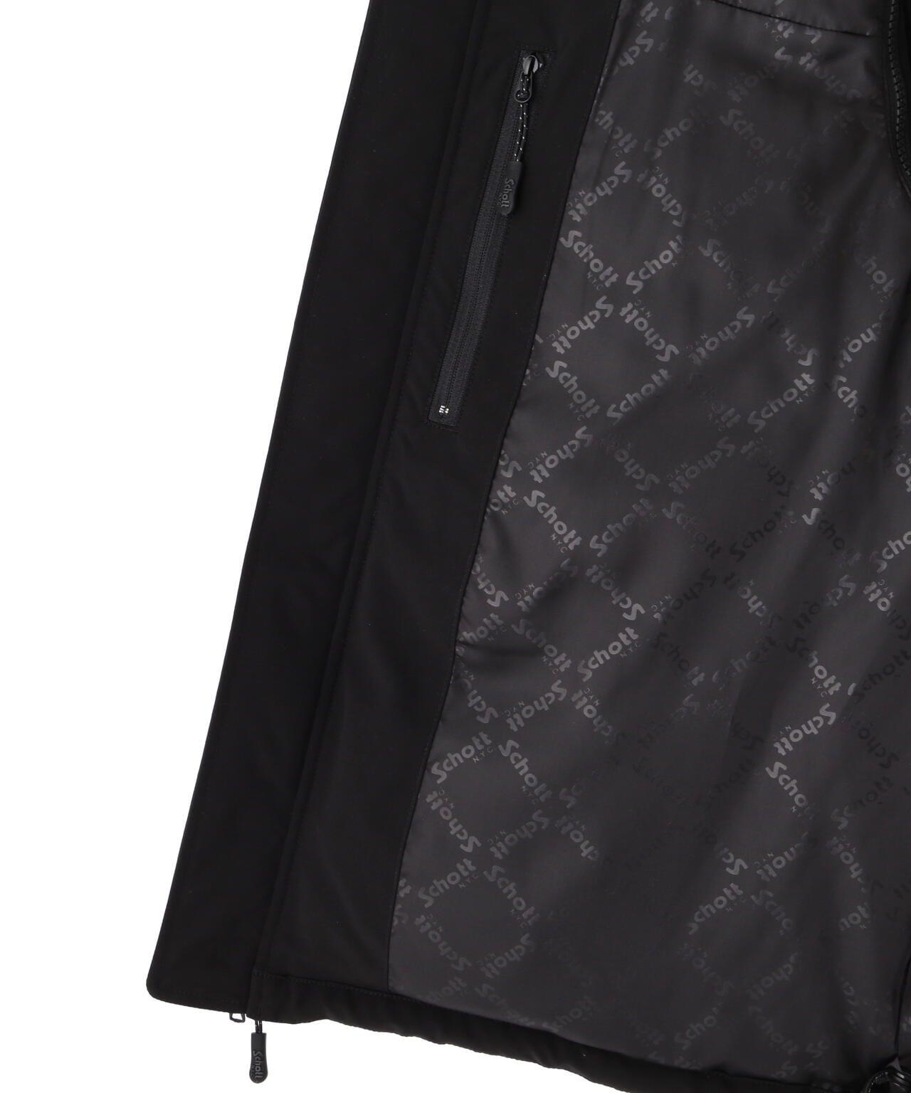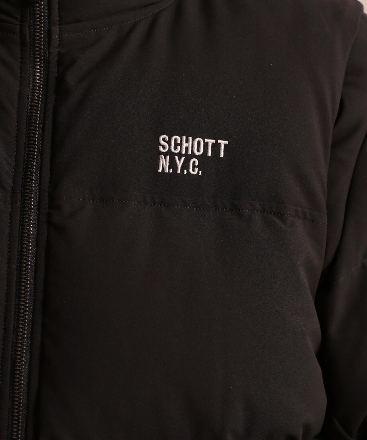 站立式雙色羽絨服由彈力 100%滌綸製成。80% 的羽絨和 20% 的羽毛包裹確保了高保暖性。袖子可拆卸,有兩種穿法。肩部採用特殊花紋,使肩部線條向內收攏,同時還實現了將其作為馬甲穿著的尺寸設計,而將袖子拆下作為馬甲穿著時會有很多不便之處。肖特(Schott)可以說是騎手夾克的代名詞,其歷史始於 1913 年,由歐文-肖特(Irving Schott)和傑克-肖特(Jack Schott)兄弟在紐約創立。起初,他們只是一家生產雨衣的工廠,1928 年,他們成為世界上👍家將前拉鍊應用於騎行夾克的公司。
