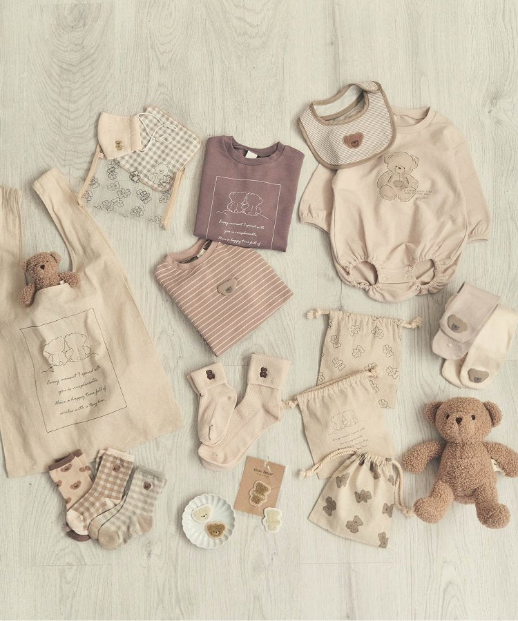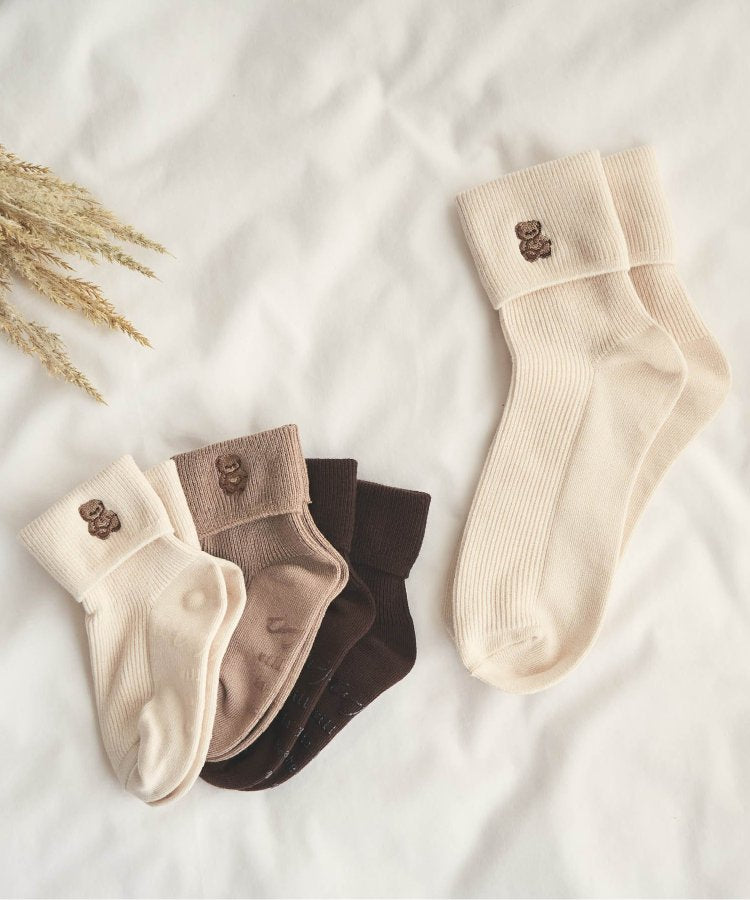 摺疊部分繡有小熊圖案的襪子。摺疊設計略顯優雅,而小熊則是微妙的點睛之筆。