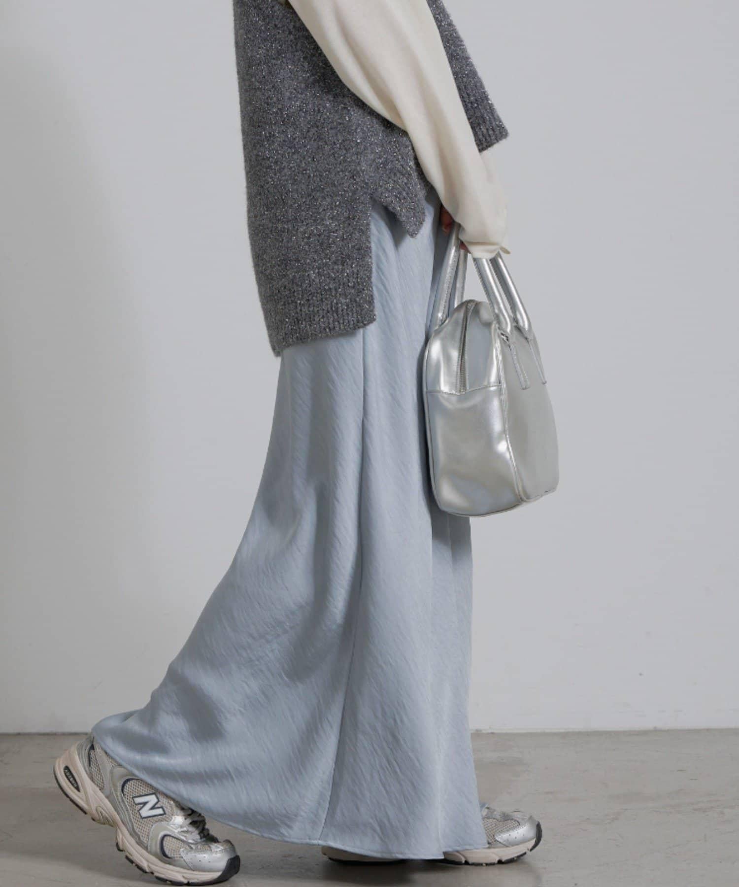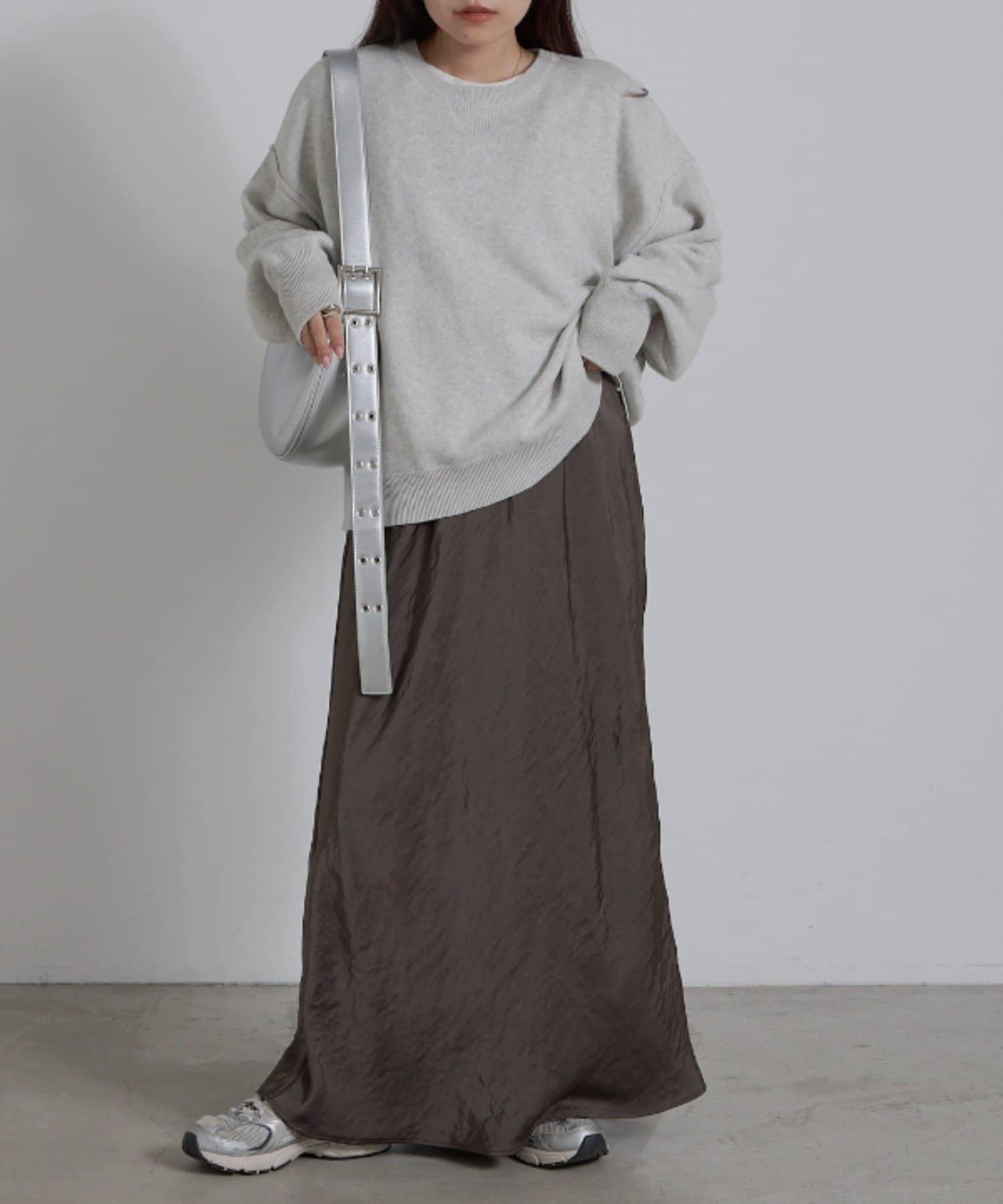 也可以搭配有體積感的針織衫,打造平衡的造型、