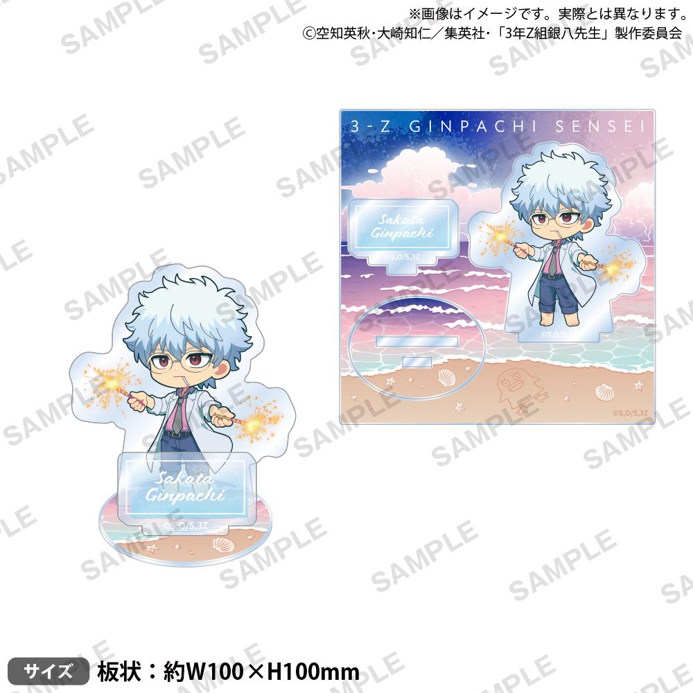 這是一個透視亞克力支架,上面有一幅新繪製的插圖,畫的是電視動畫片《3 年 Z 級銀八老師》中銀八和他的朋友們在海邊欣賞煙花的可愛場景!